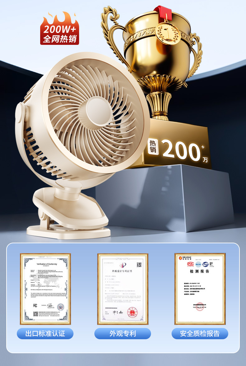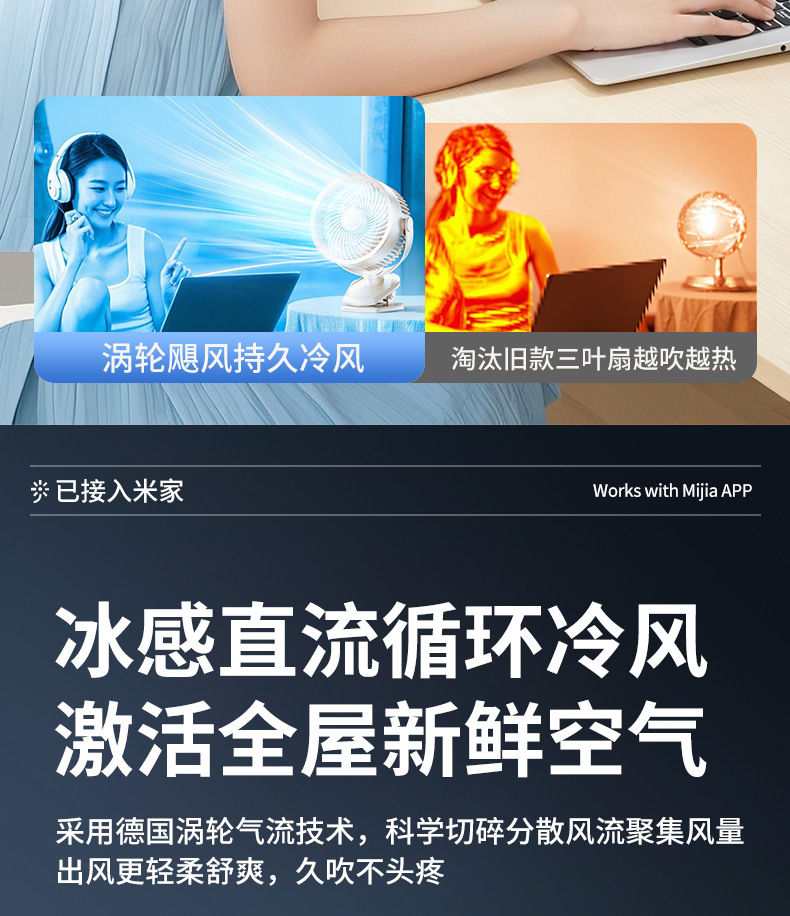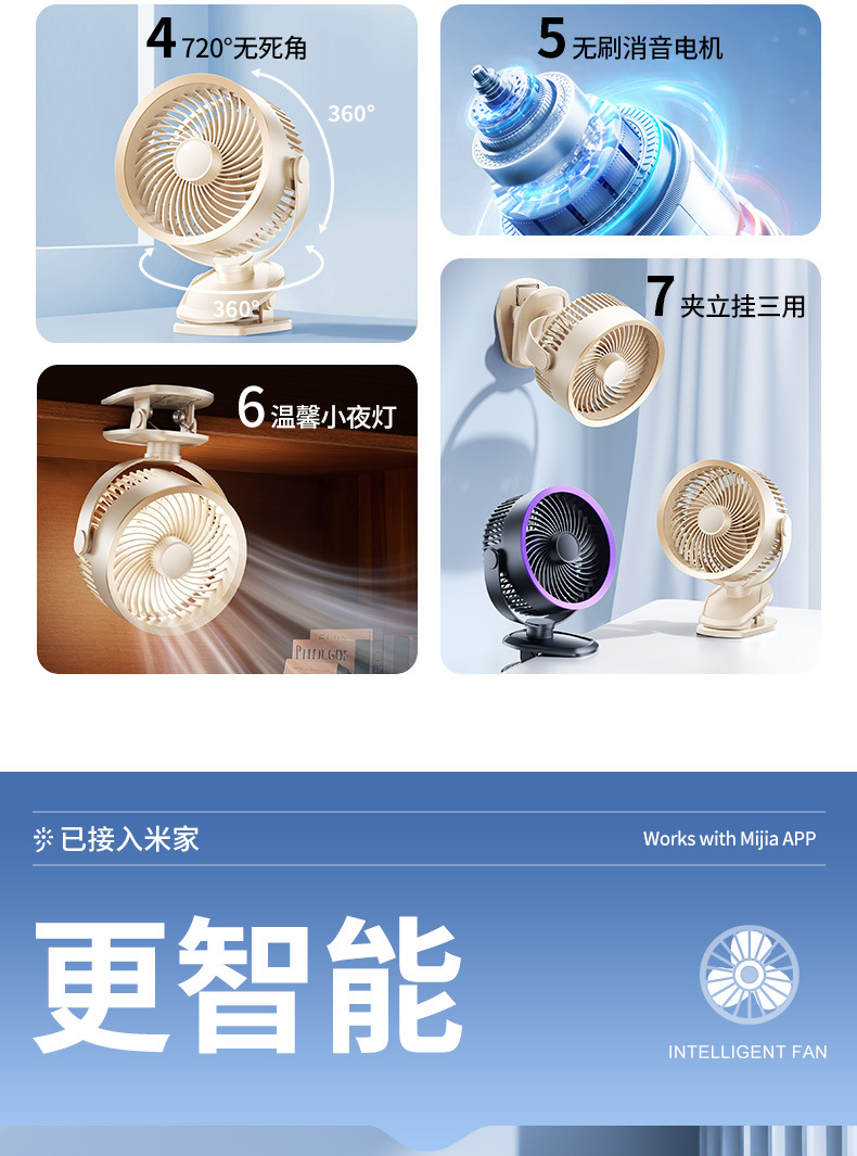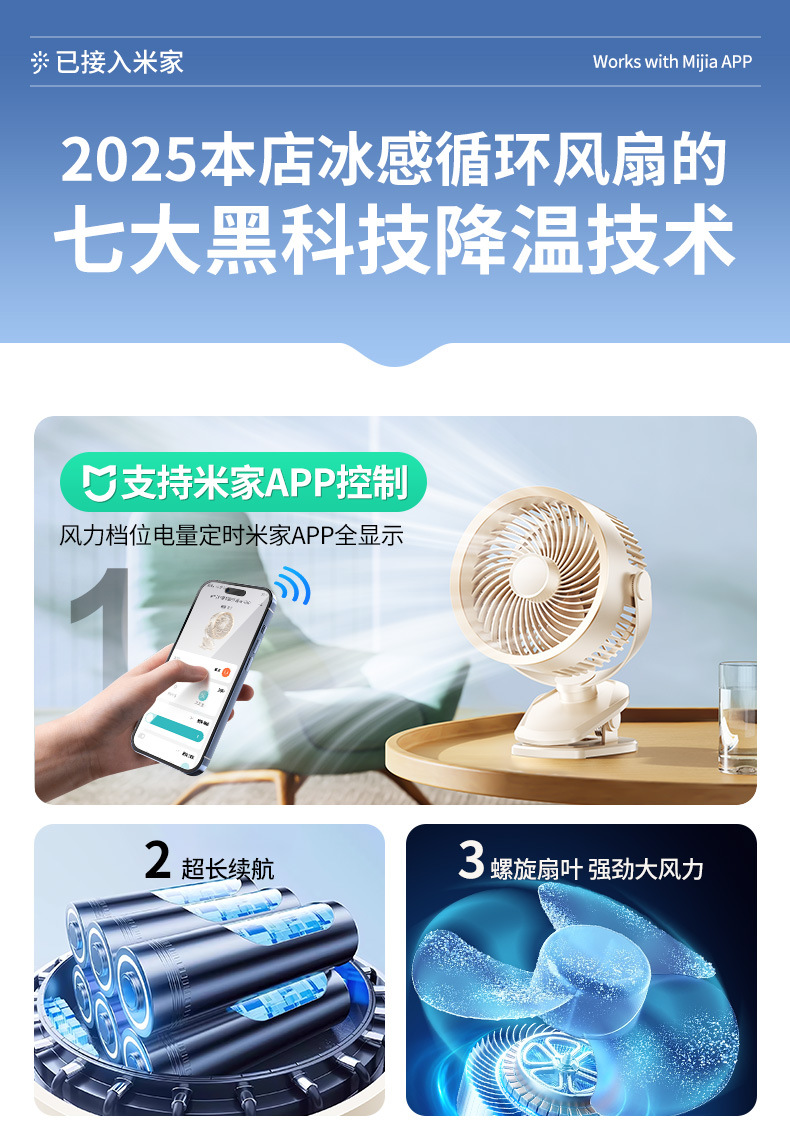 【冰感循环❗️夹立挂三用】USB桌面小风扇迷你办公室风扇台式学生USB大风力静音夹子风扇。ya