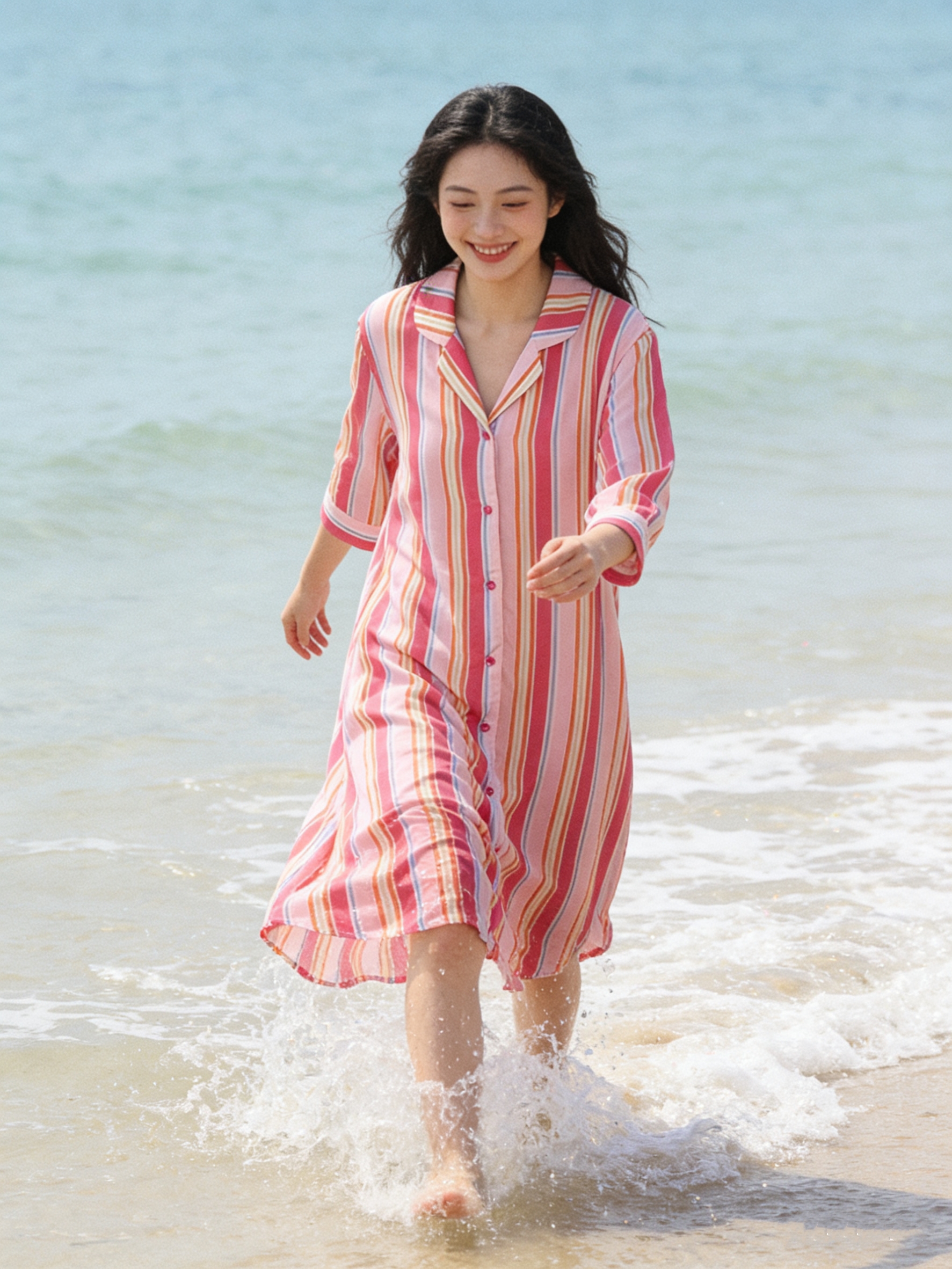 【粘纤绵绸】SCHIESSER德国舒雅女士七分袖100%粘纤梭织连衣裙31/24784D