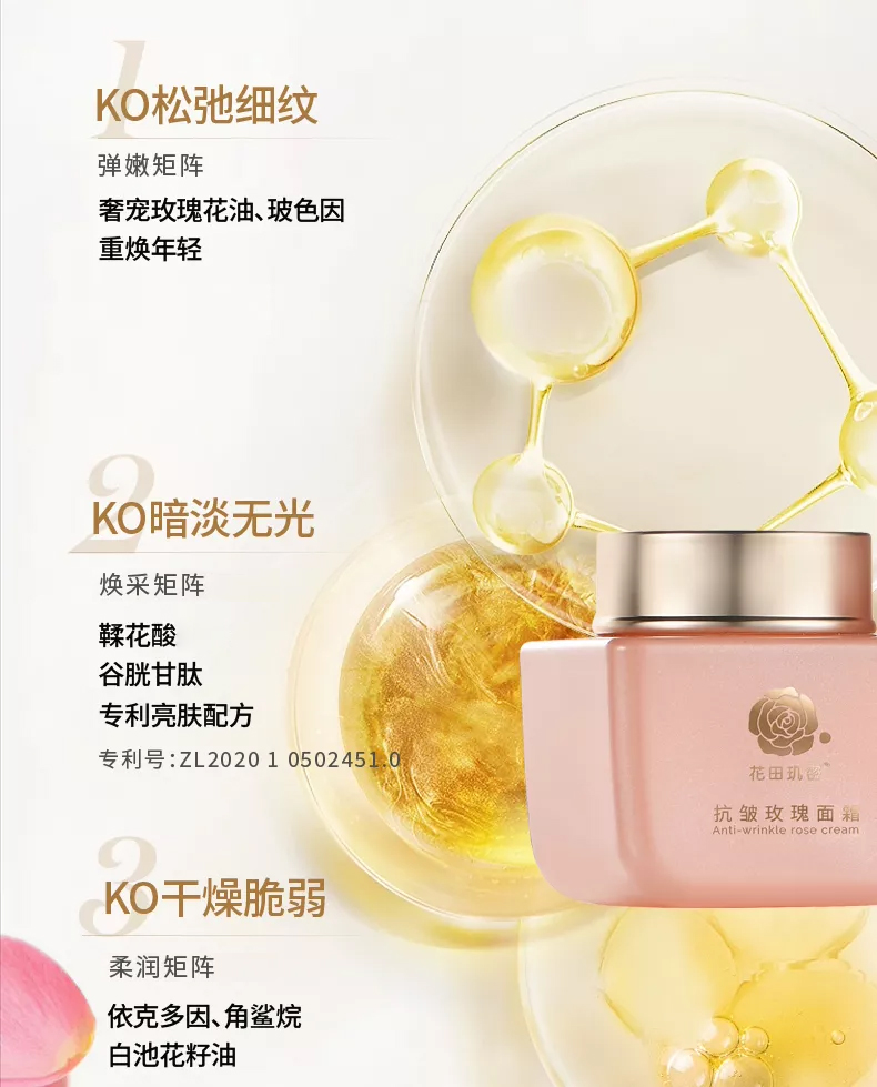 【3.8女神节特惠】花田玑密·抗皱玫瑰面霜50g*2瓶