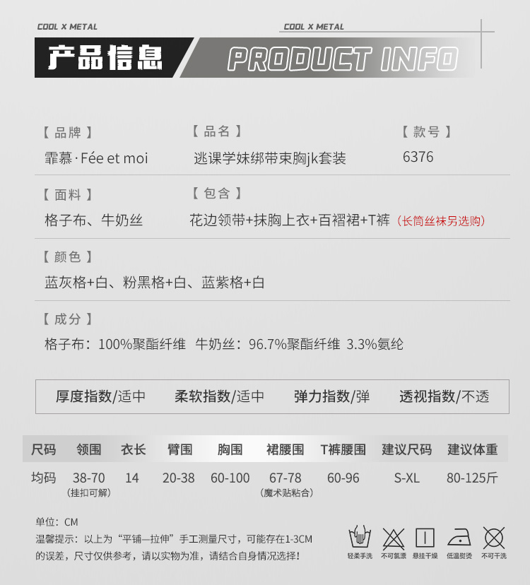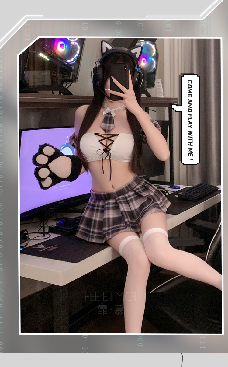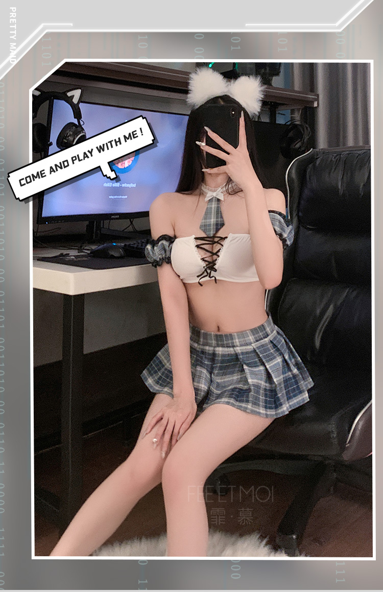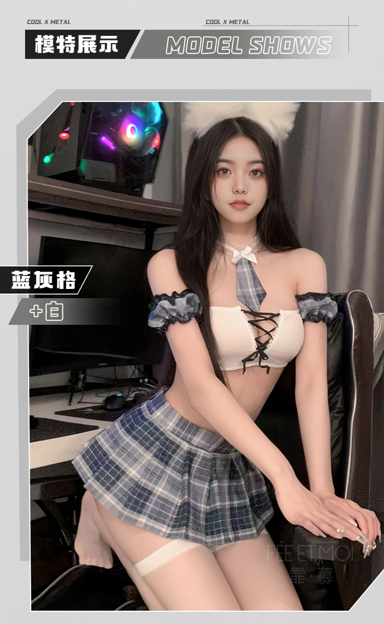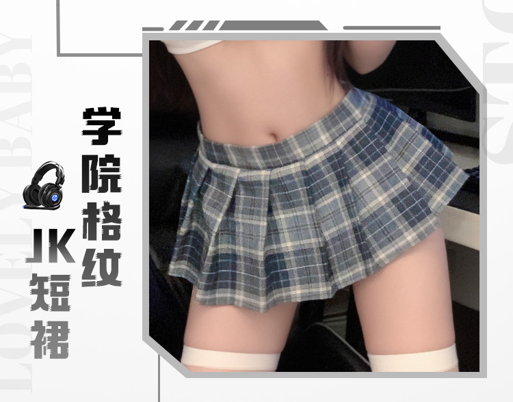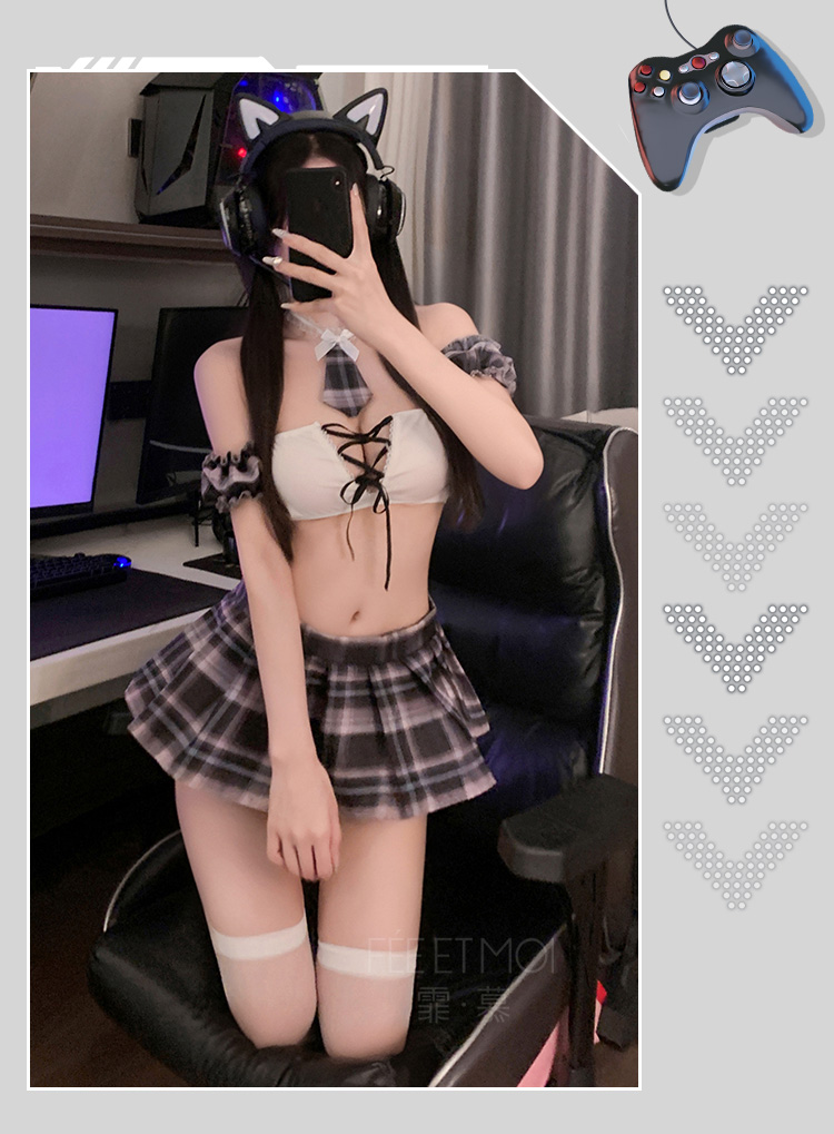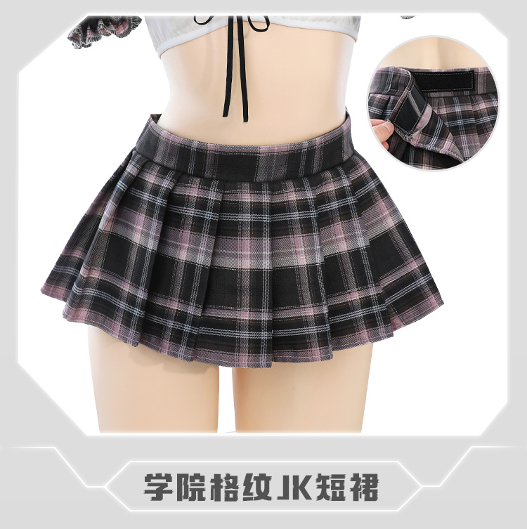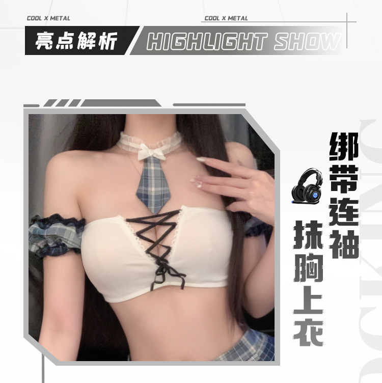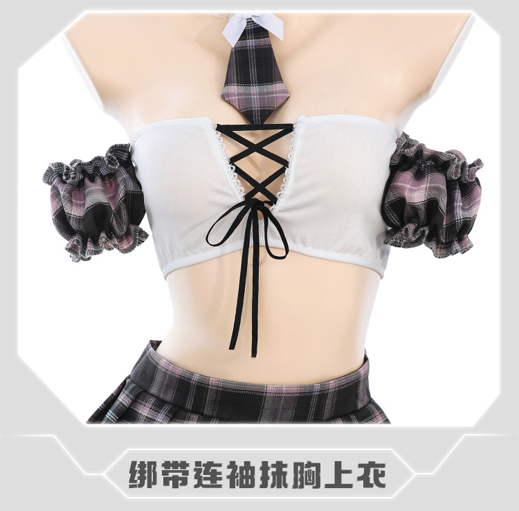 霏慕 逃课学妹绑带束胸JK套装学院女友抹胸上衣短裙性感情趣内衣夫妻刺激制服性感睡衣6376 均码