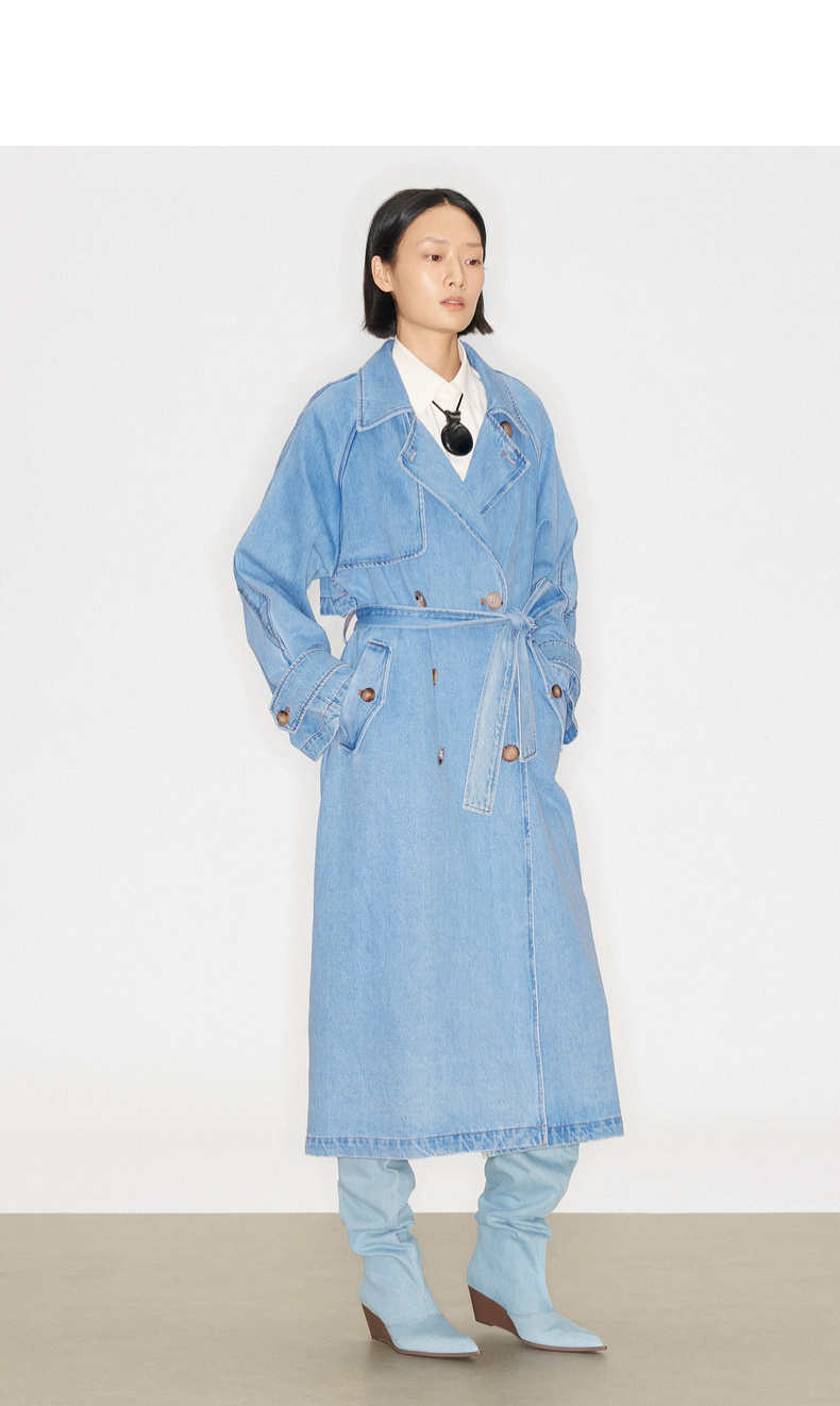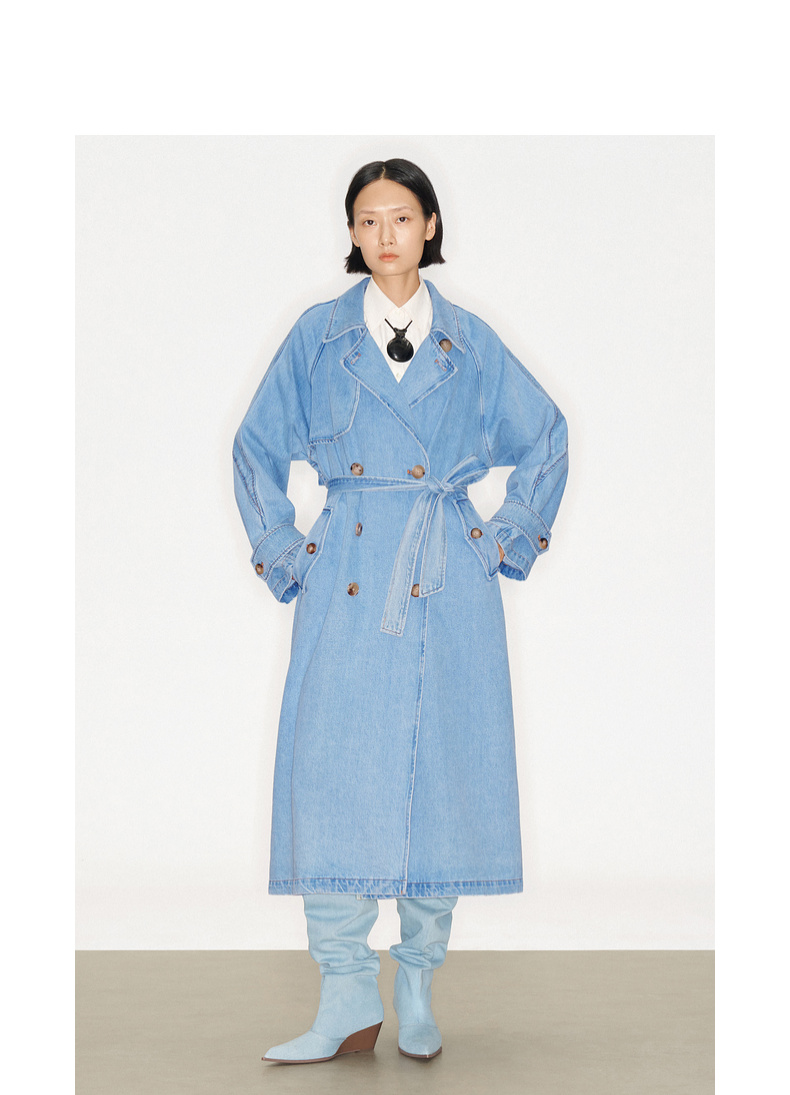 lost in echo2024秋季新款高级休闲双排牛角扣牛仔长款风衣外套女
