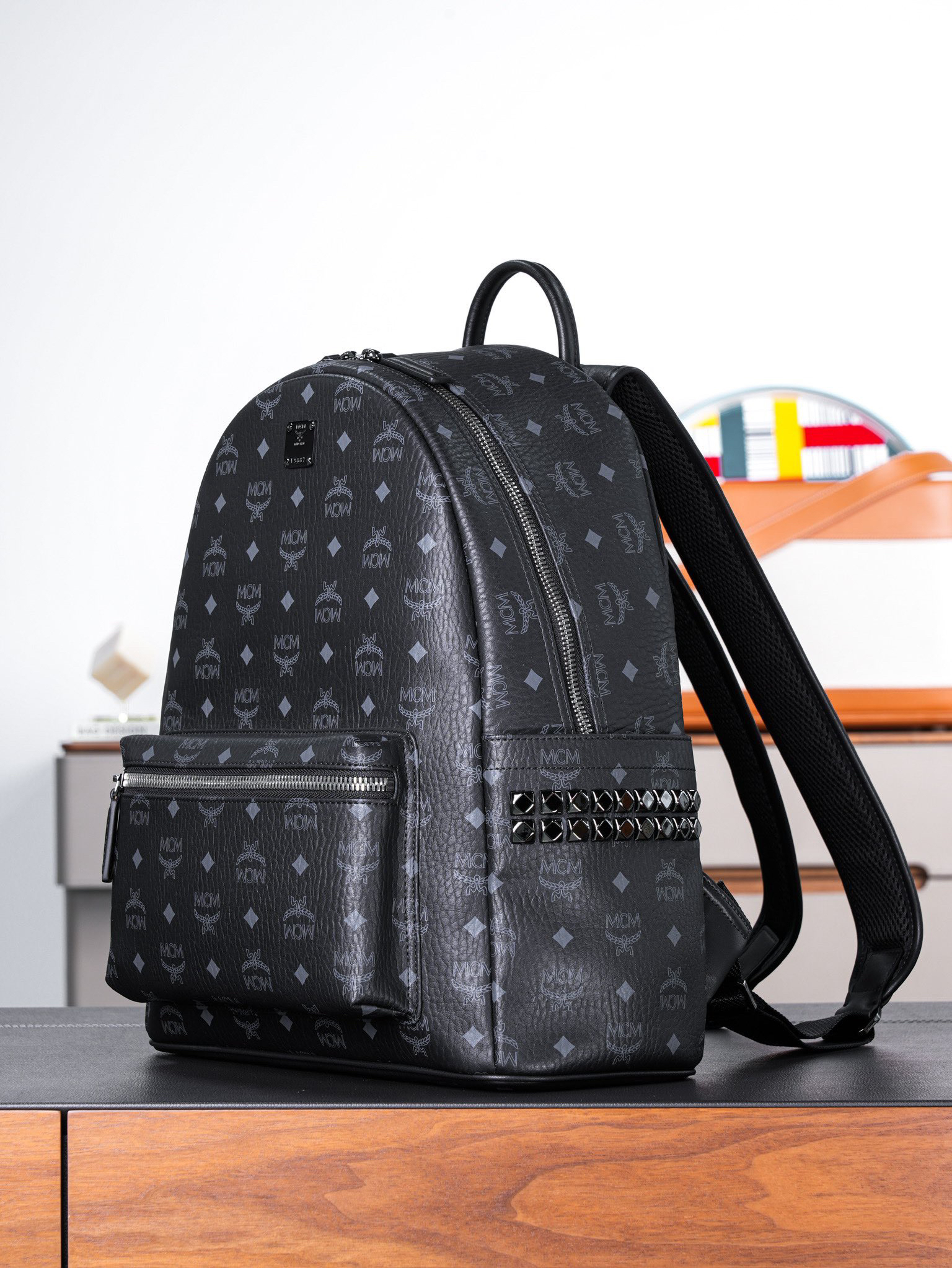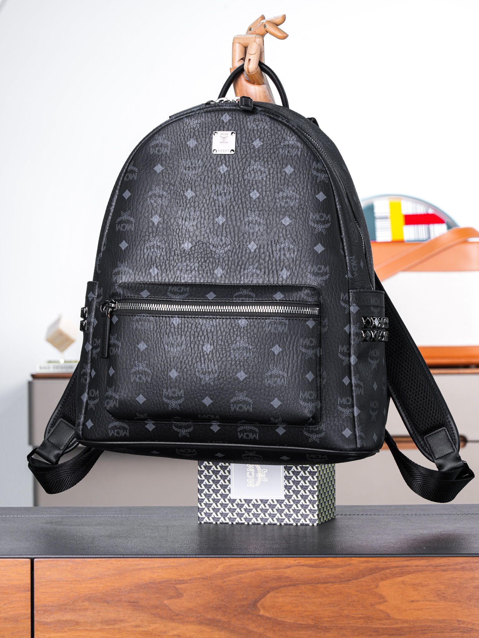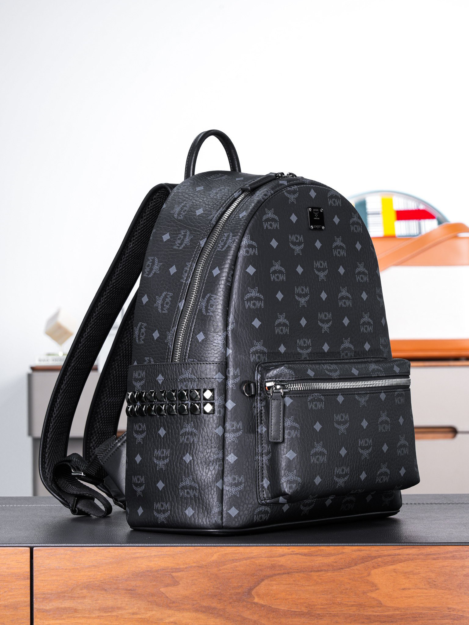 秋冬特惠💰980 原单MCM 黑色中号 铆钉双肩背包 男女同款包 背包里的黑酷天花板MMK6SVE37CO001 这款双肩背包结构规整