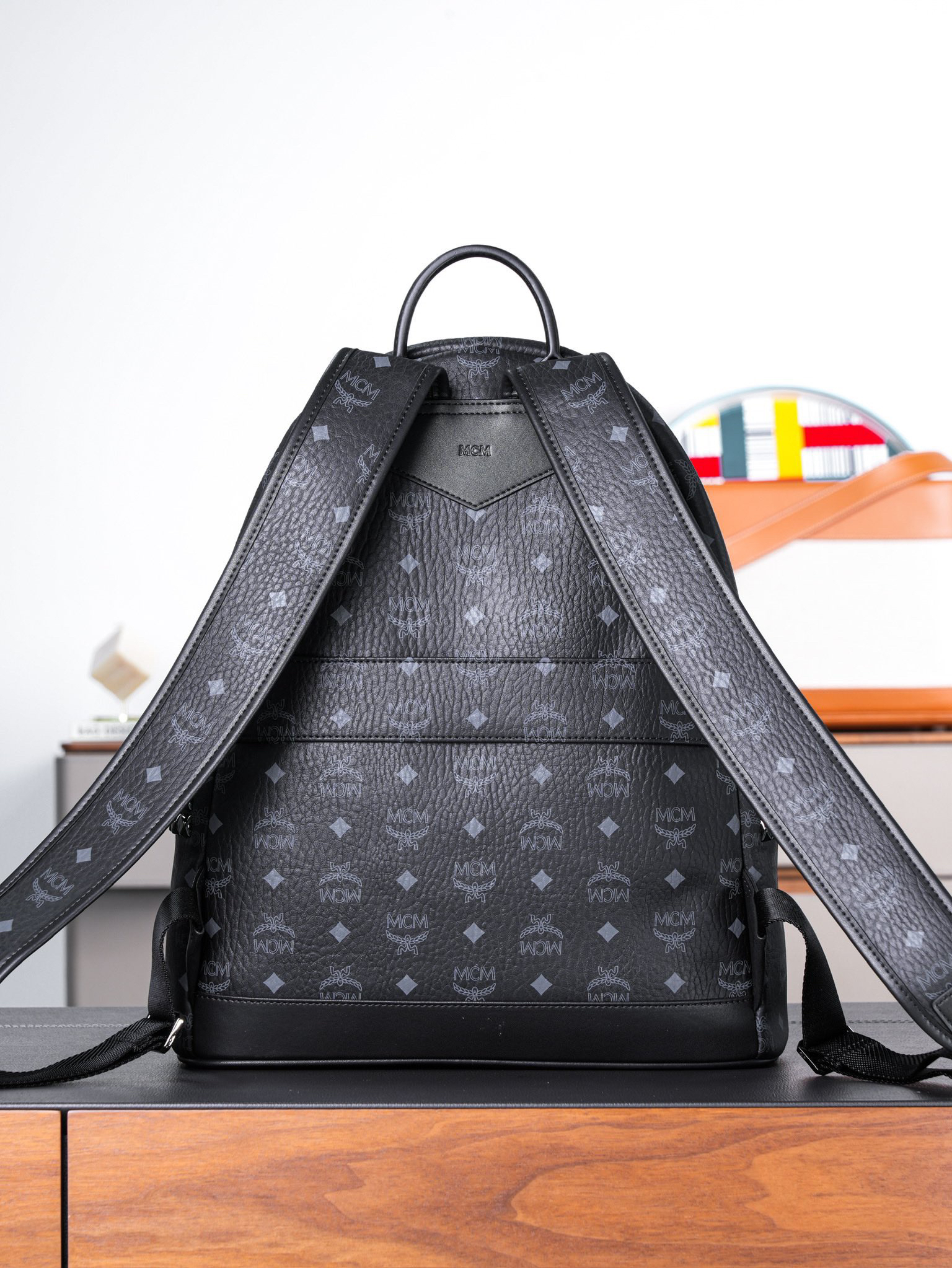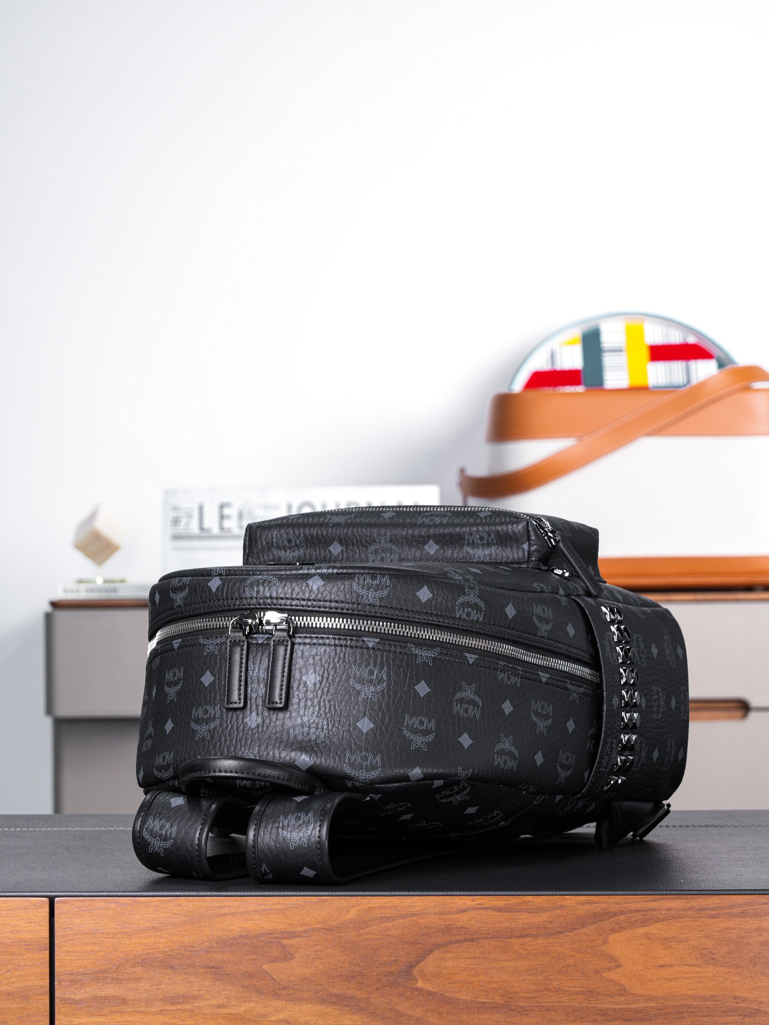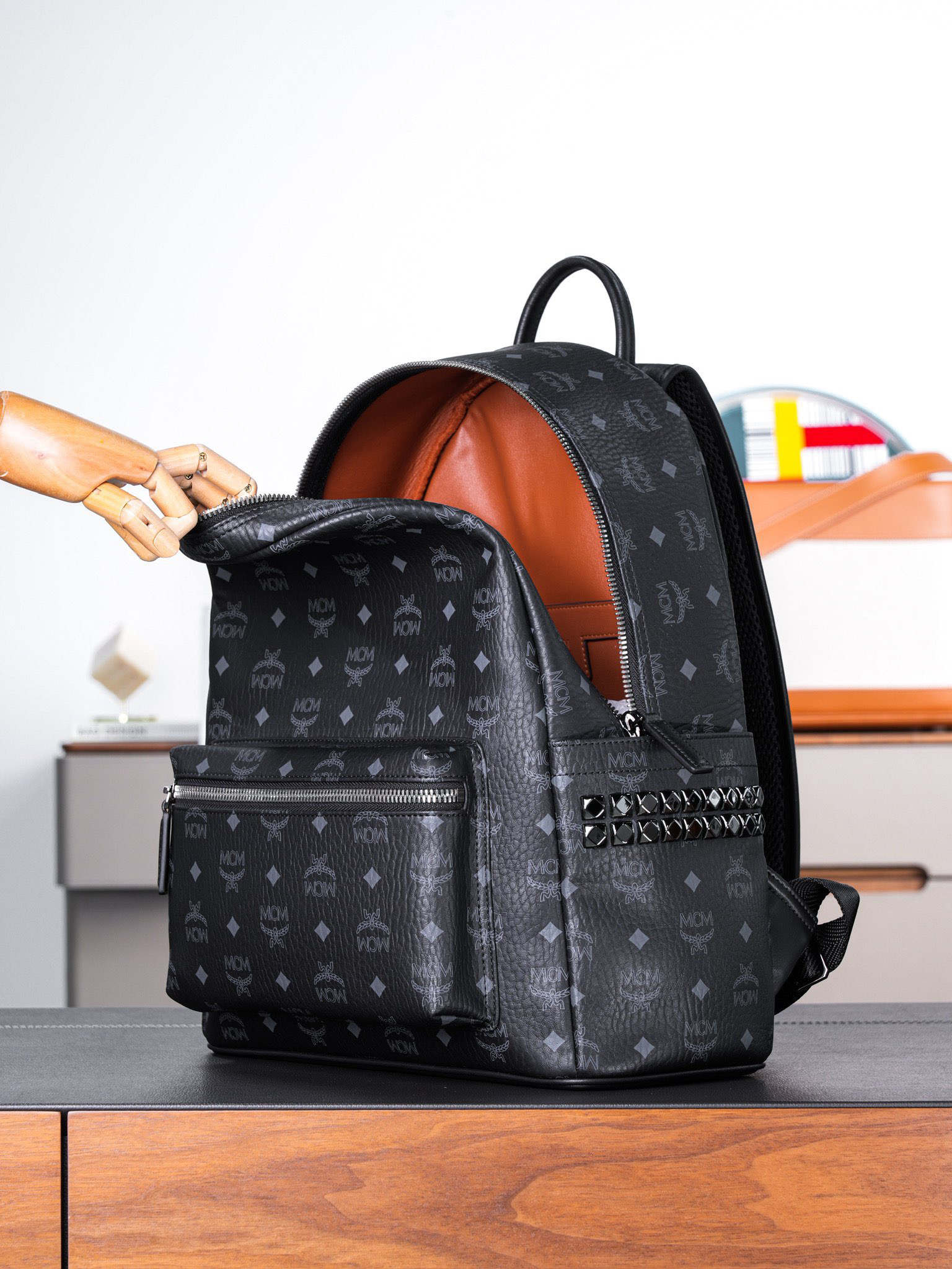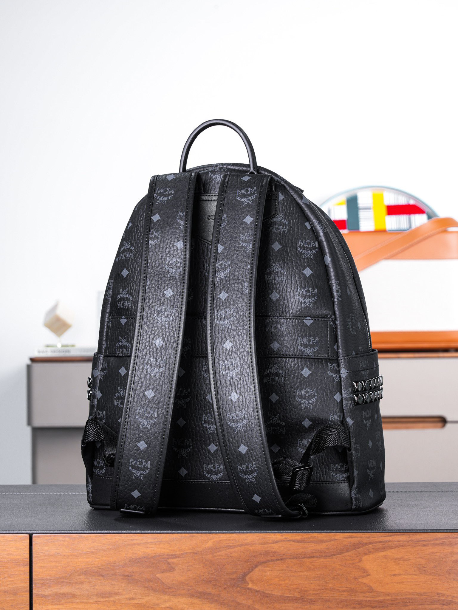 秋冬特惠💰980 原单MCM 黑色中号 铆钉双肩背包 男女同款包 背包里的黑酷天花板MMK6SVE37CO001 这款双肩背包结构规整