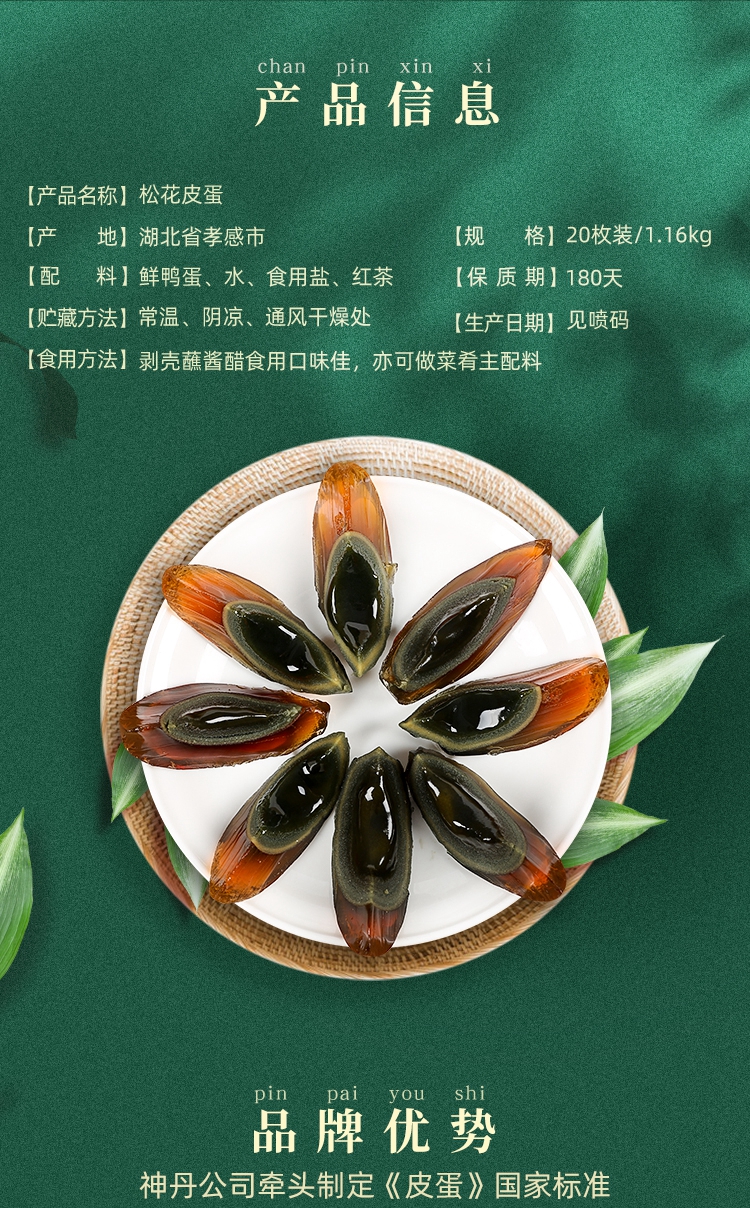 湖北神丹健康食品有限公司,中国实力雄厚的蛋产品加工企业,年生产、销售各类蛋品数亿枚,是中国目前品种全、销售广的禽蛋研发加工基地。神丹公司以“服务农民,健康人民”为宗旨,以推动中国健康食品发展为己任。
