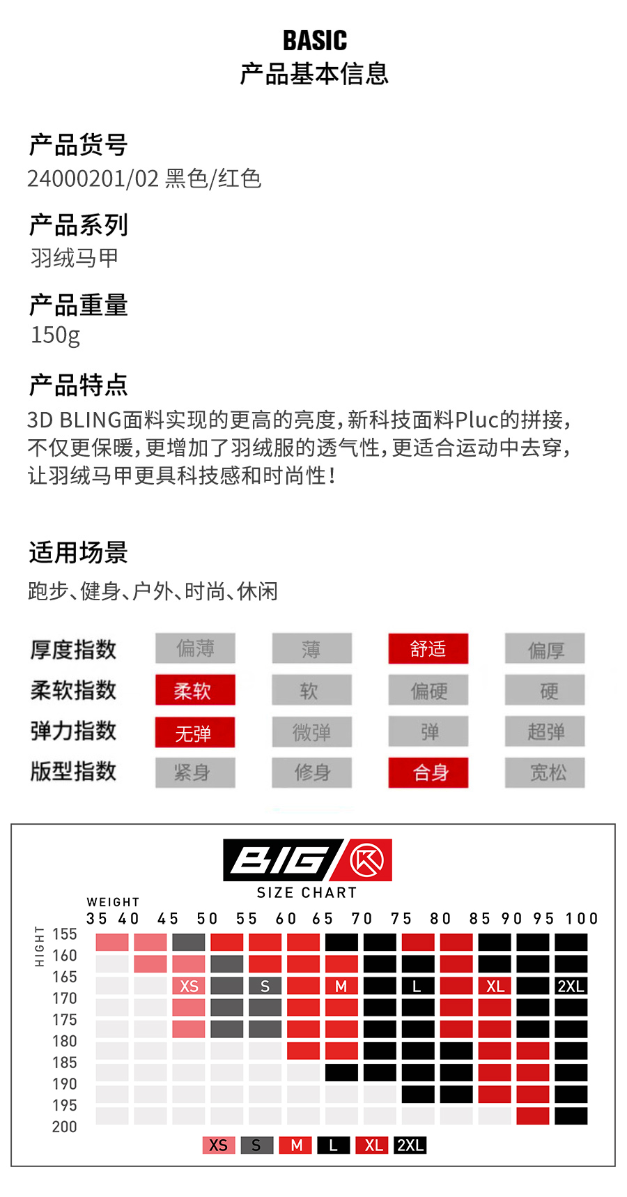 BigK 大K TORERA轻薄羽绒保暖马甲 潮搭休闲 城市训练