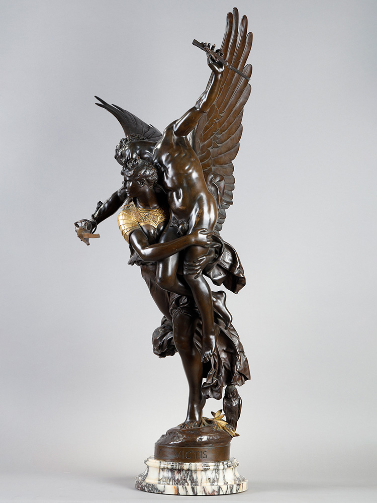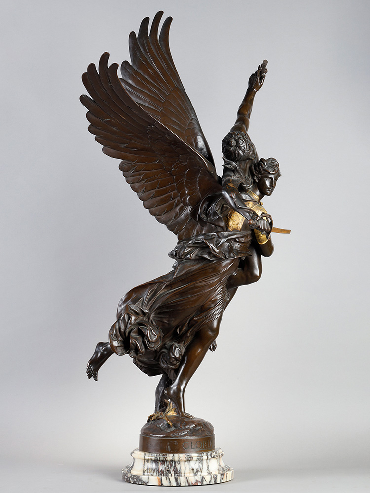 19世纪法国出品「GLORIA VICTIS 被征服者的荣耀」主题大理石底座铜鎏金装饰青铜雕像