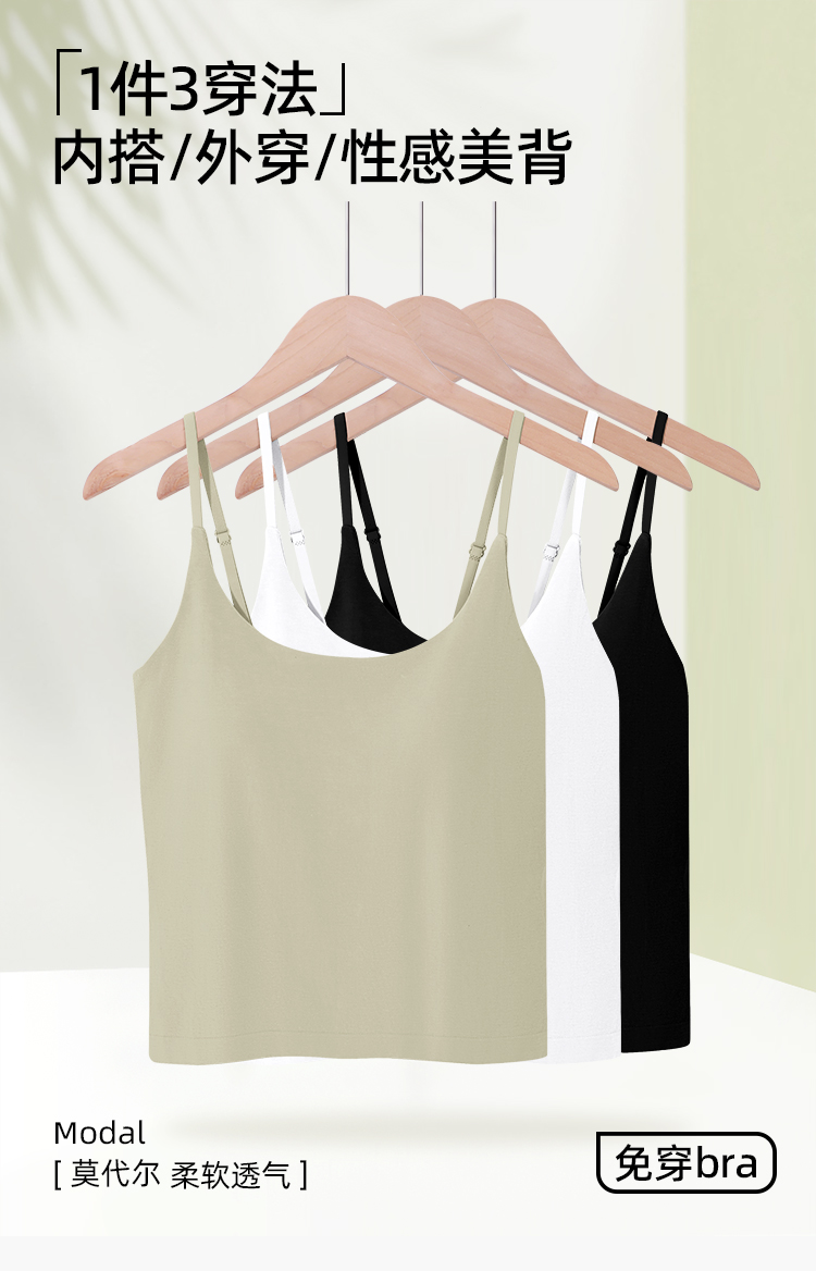 【一衣三穿】熳洁儿 美背 带胸垫背心可调节肩带打底吊带背心24269103