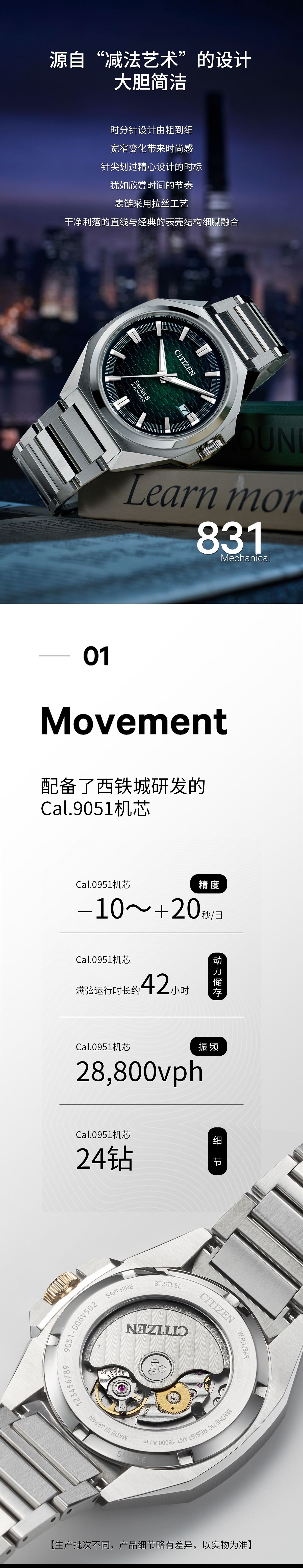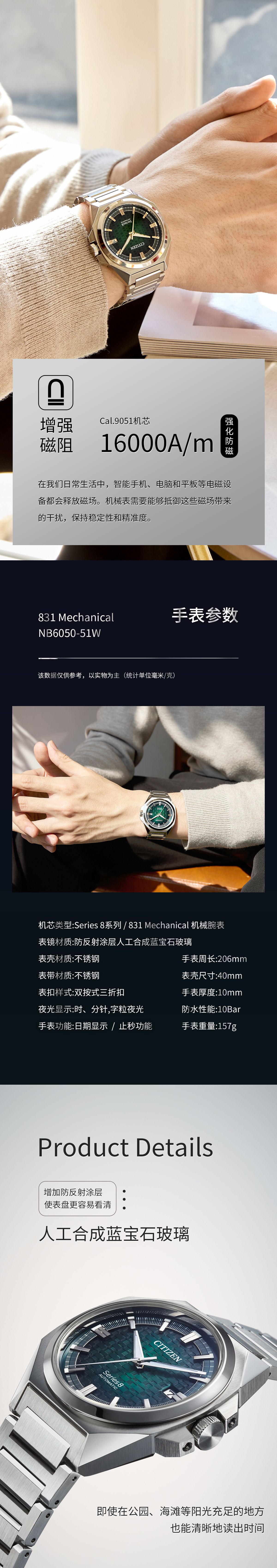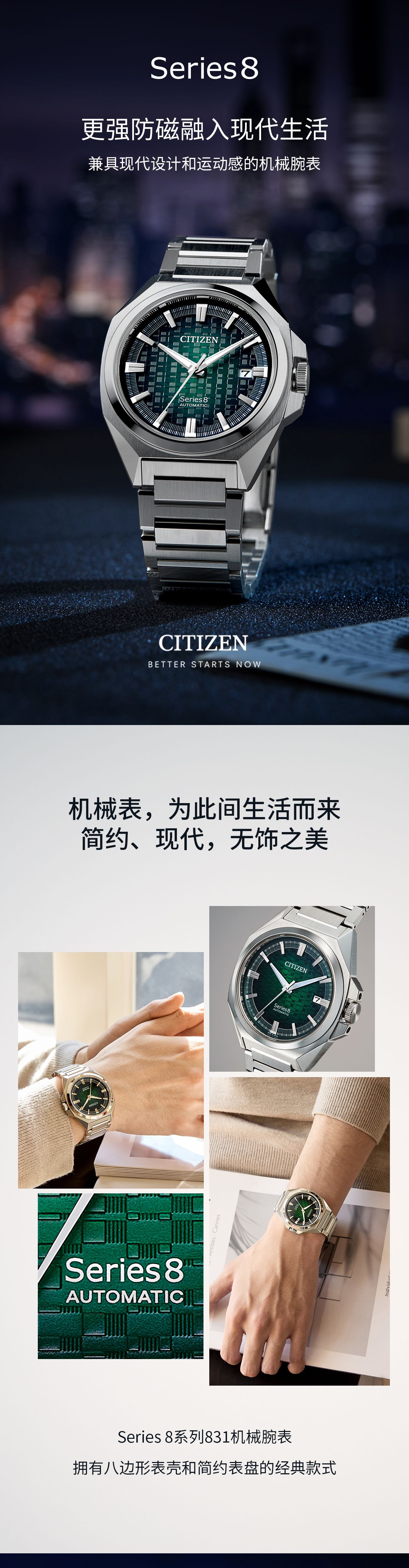 西铁城日本正品全新Series8系列休闲日历机械表NB6050-51W