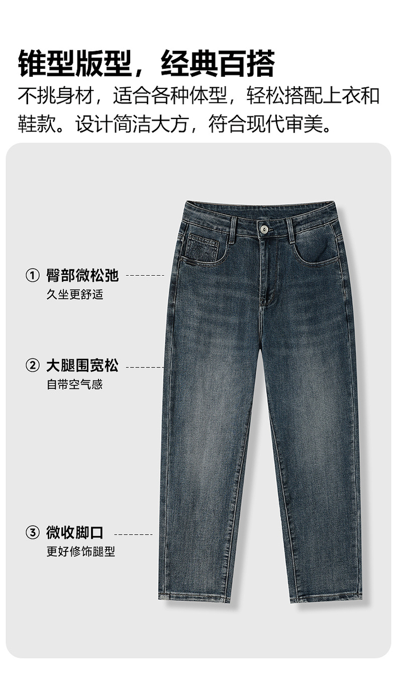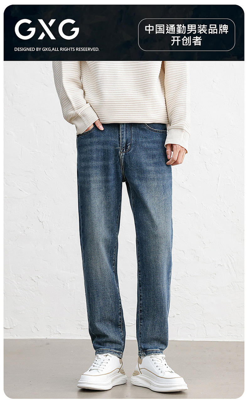 GXG男装25秋季时尚百搭日常通勤复古水洗弹力舒适男士锥形牛仔裤K&C