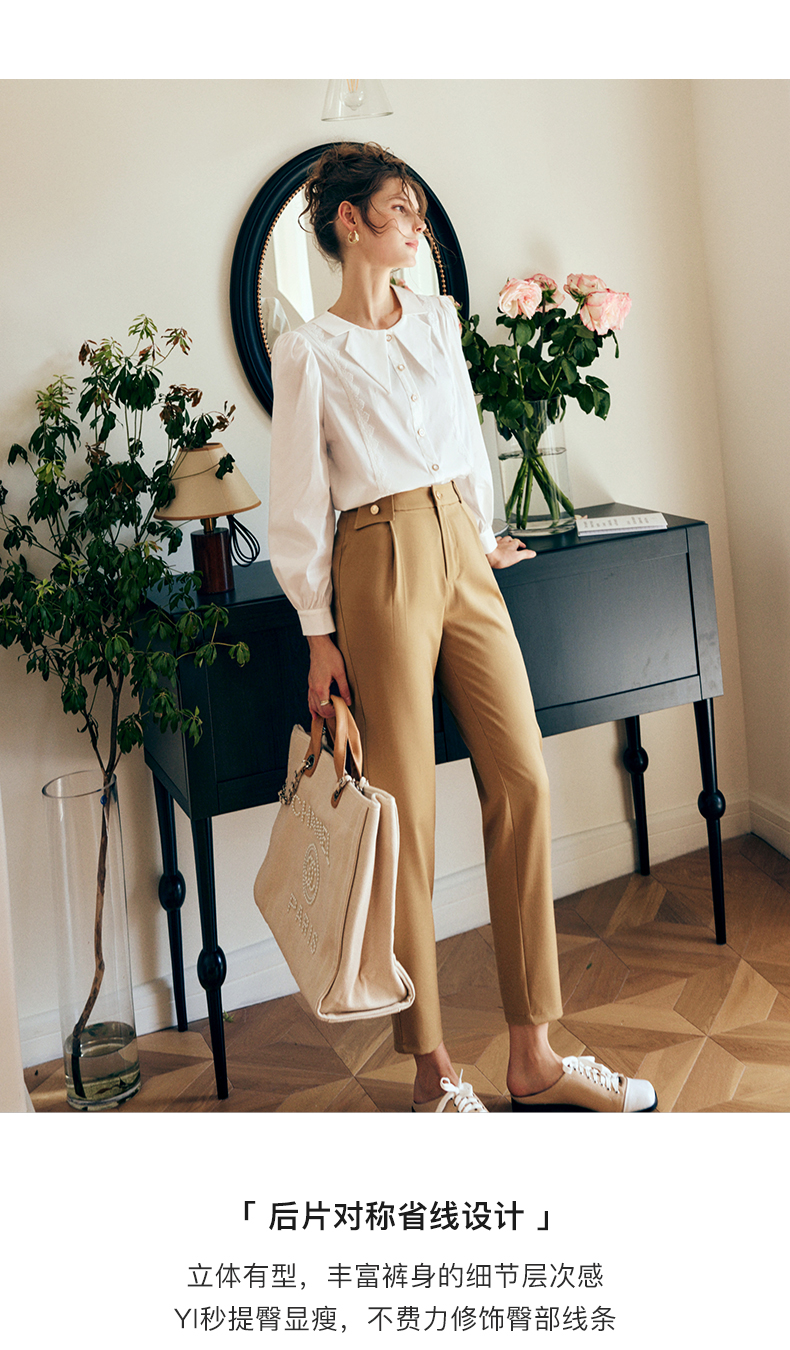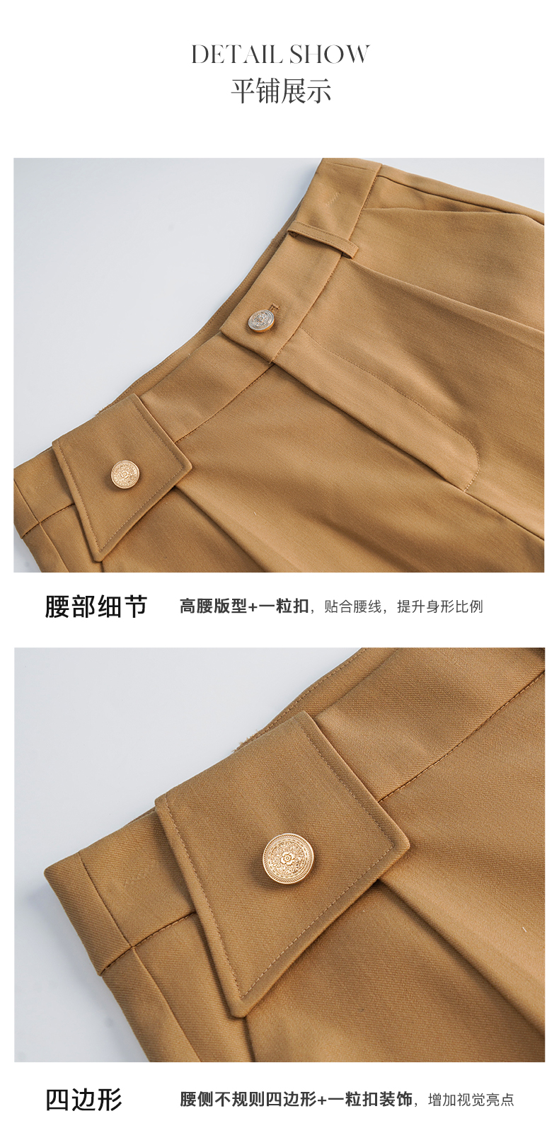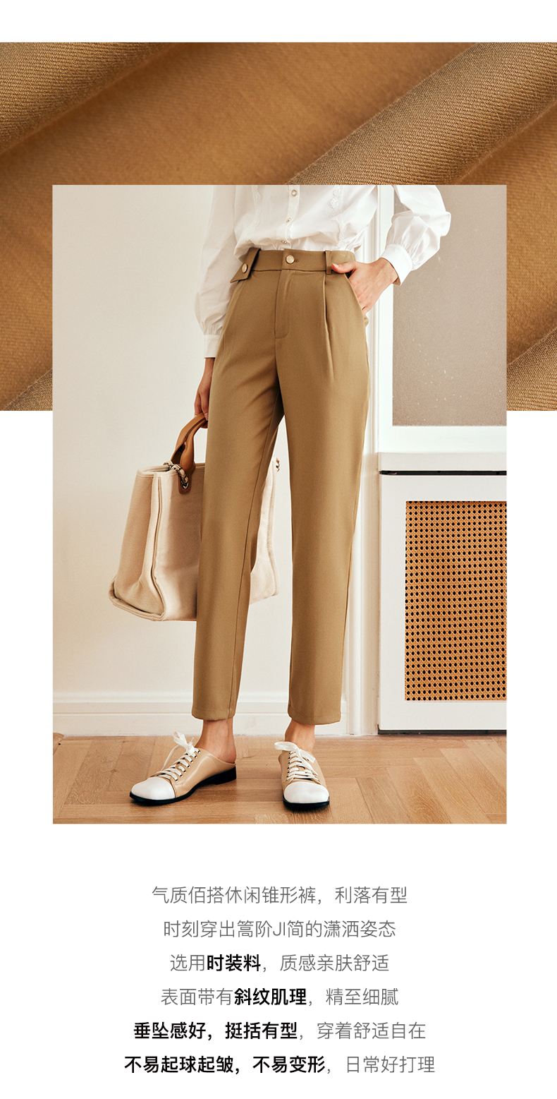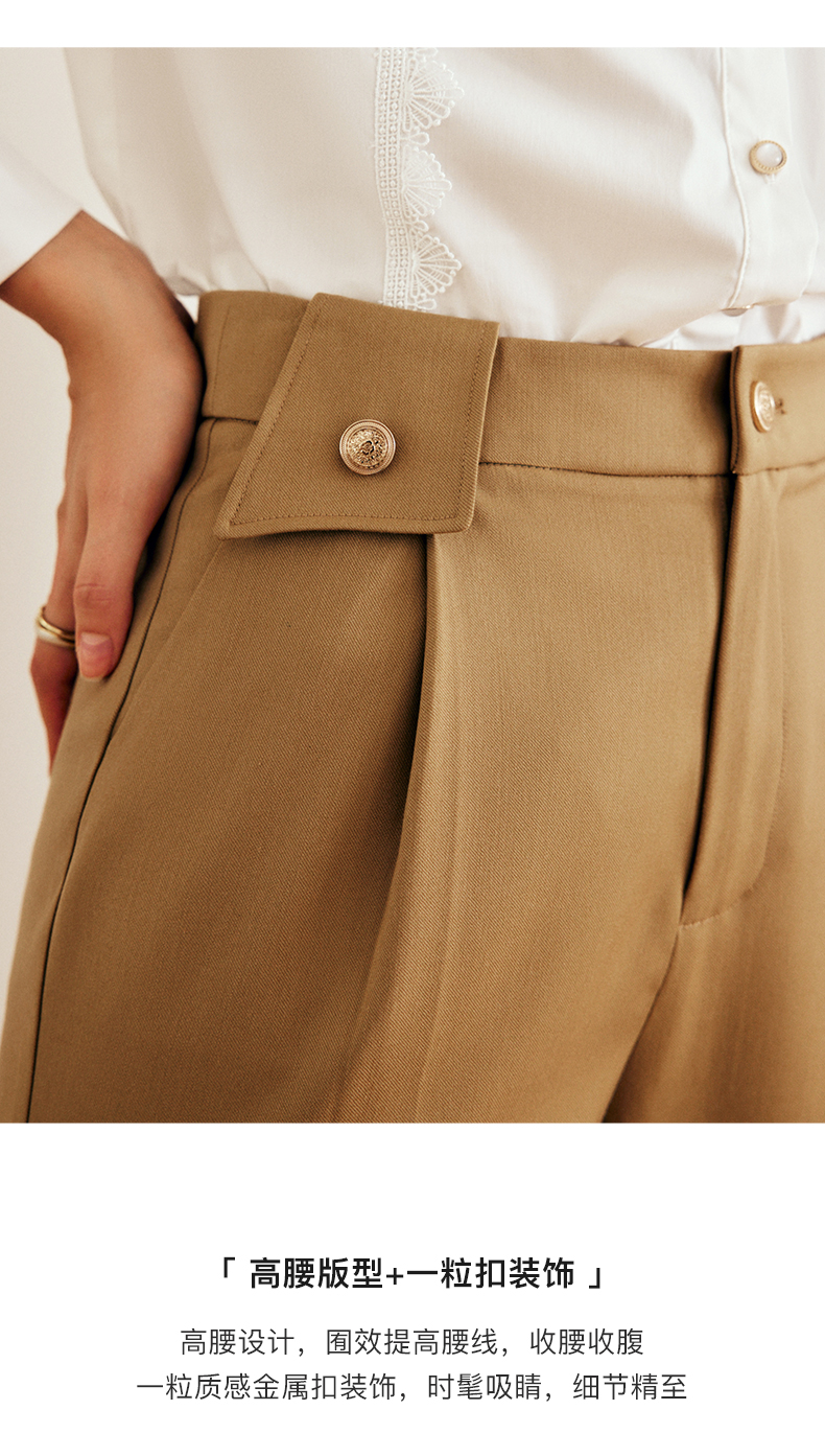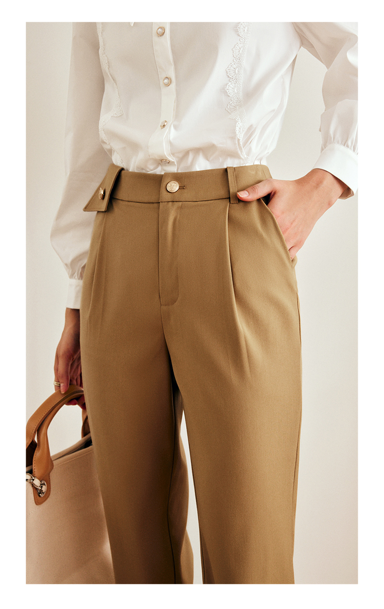OLrain法式卡其色休闲裤女早秋2022新款时尚设计感高腰显瘦锥形裤