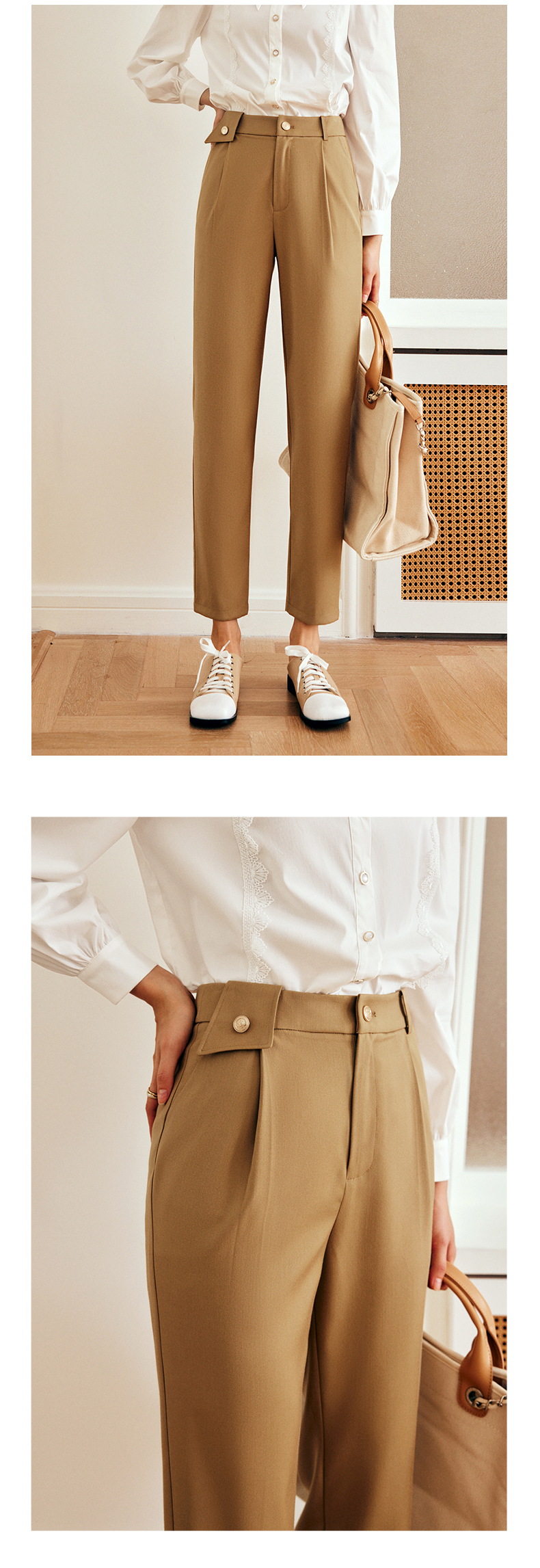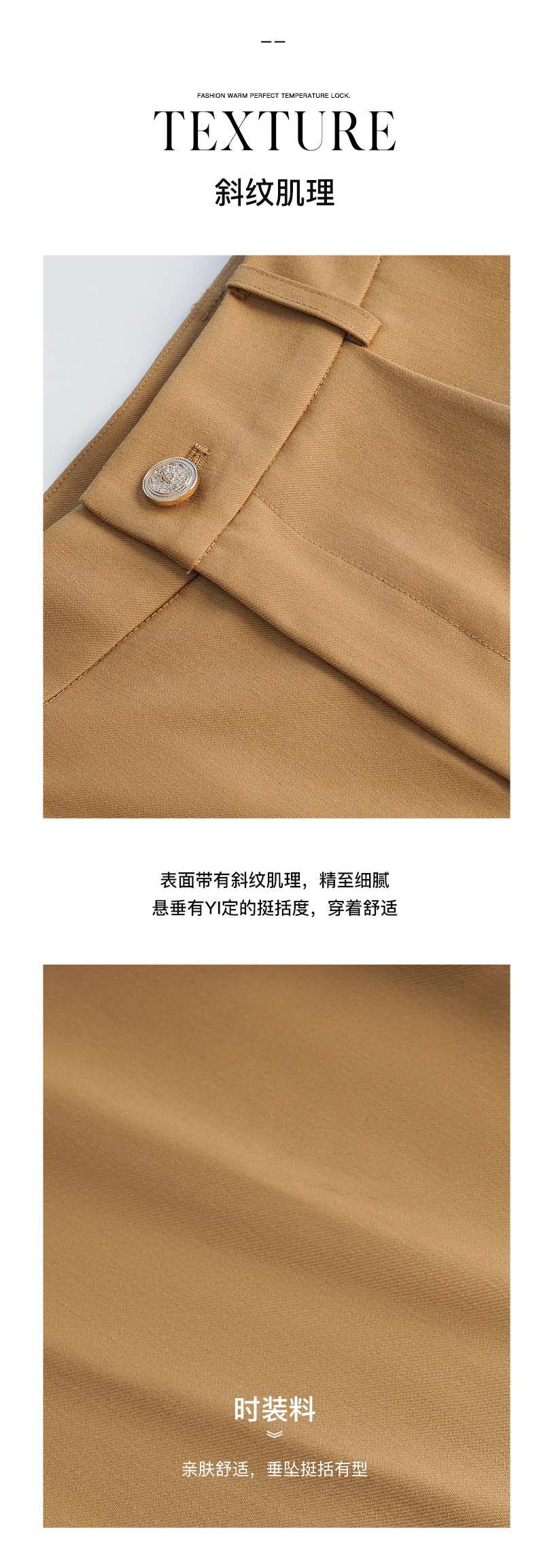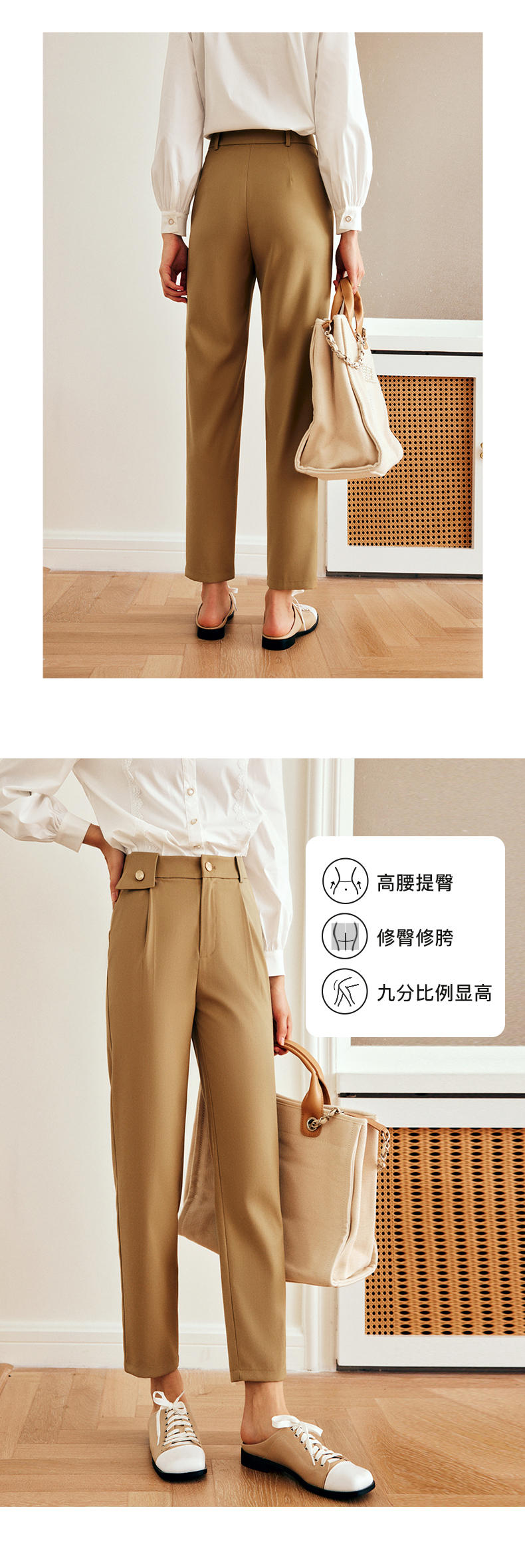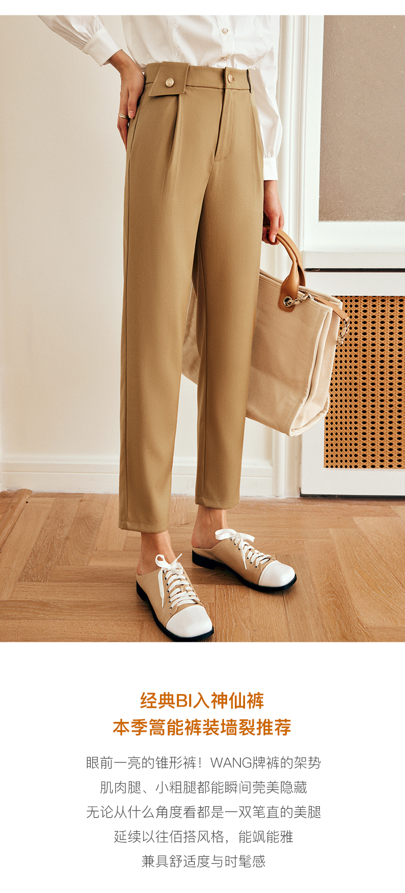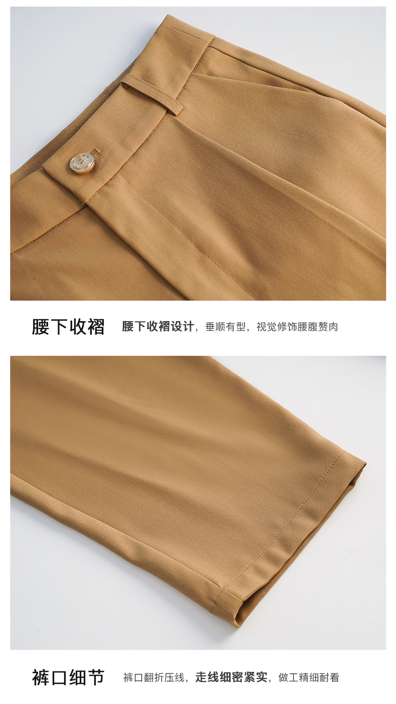 OLrain法式卡其色休闲裤女早秋2022新款时尚设计感高腰显瘦锥形裤