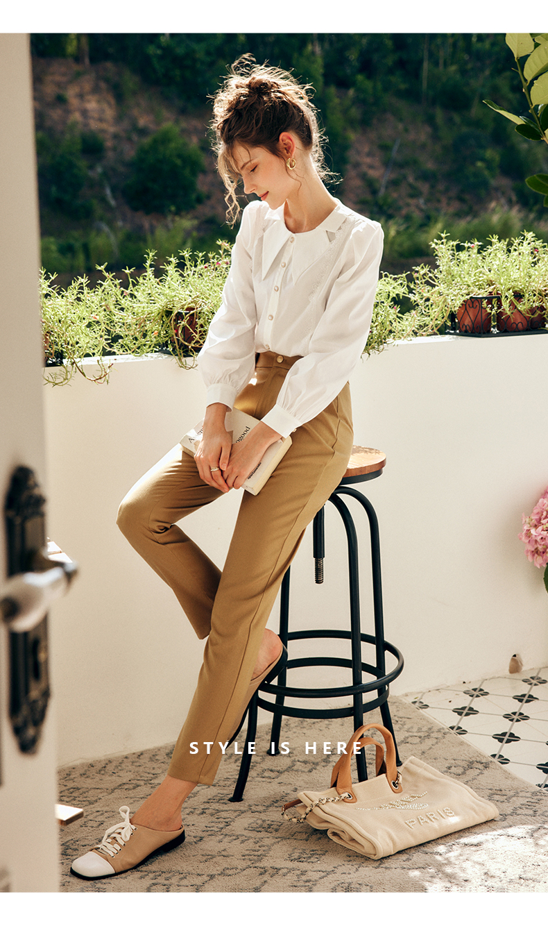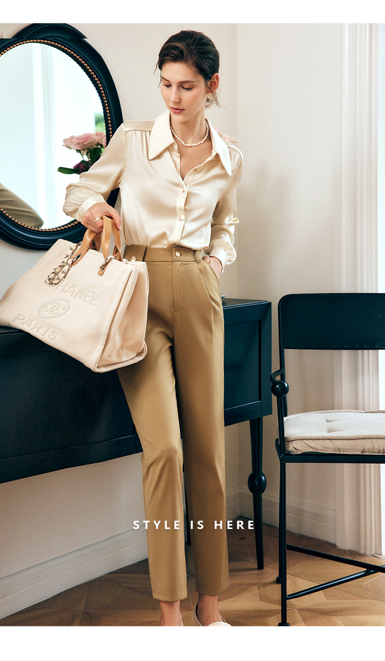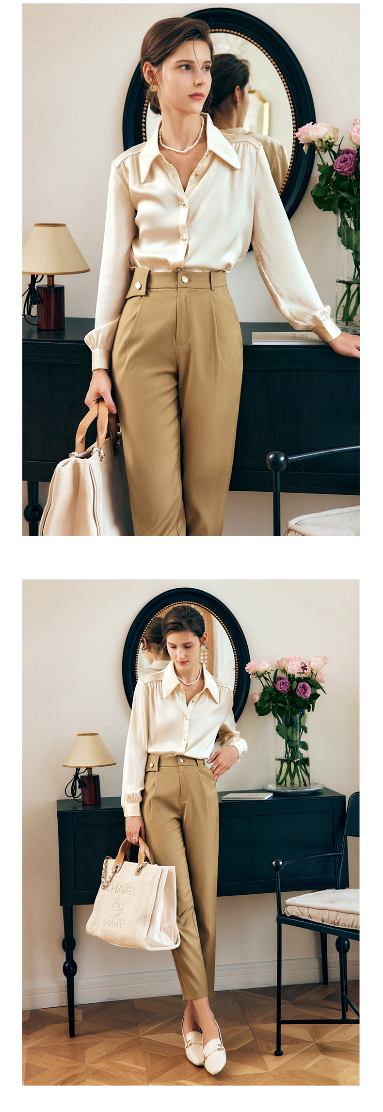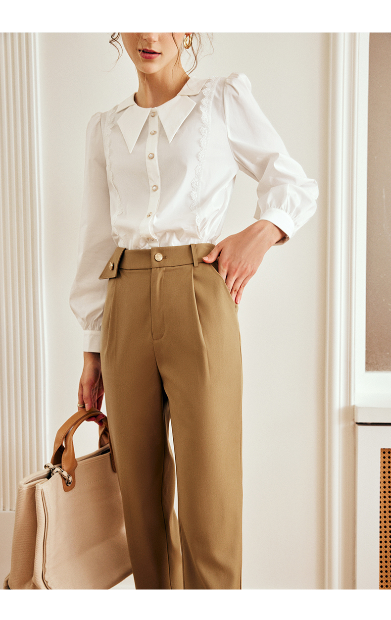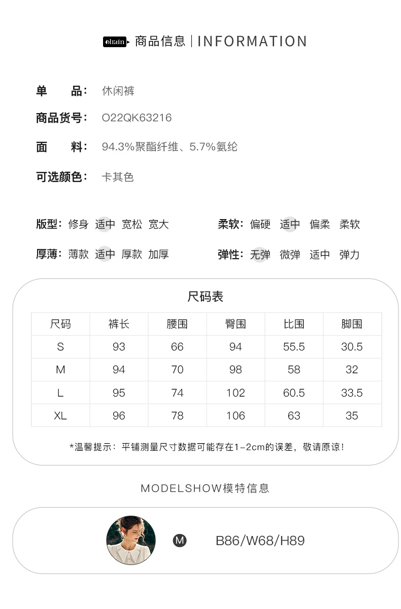 OLrain法式卡其色休闲裤女早秋2022新款时尚设计感高腰显瘦锥形裤