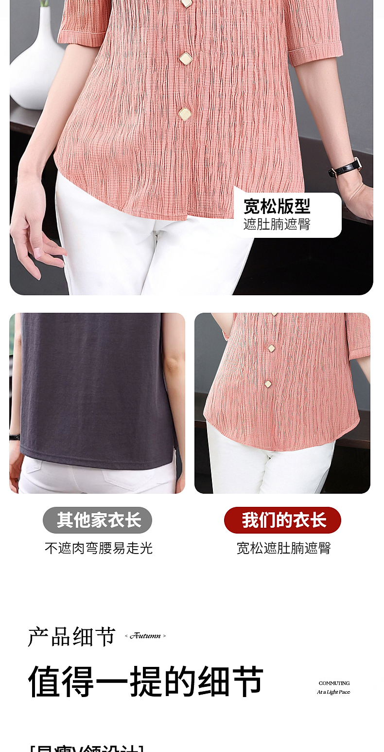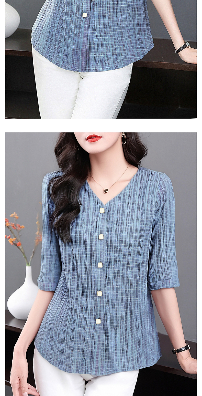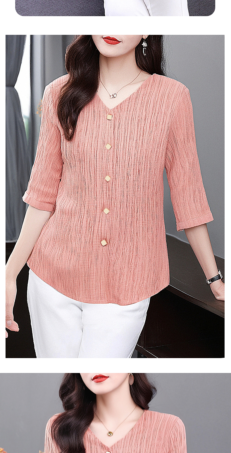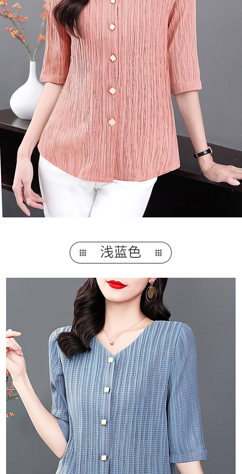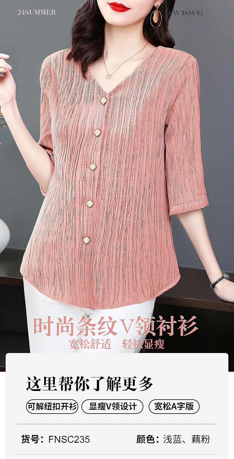 大码七分袖衬衣女夏季2025新款小衫妈妈女士衬衫V领中袖上衣秋装