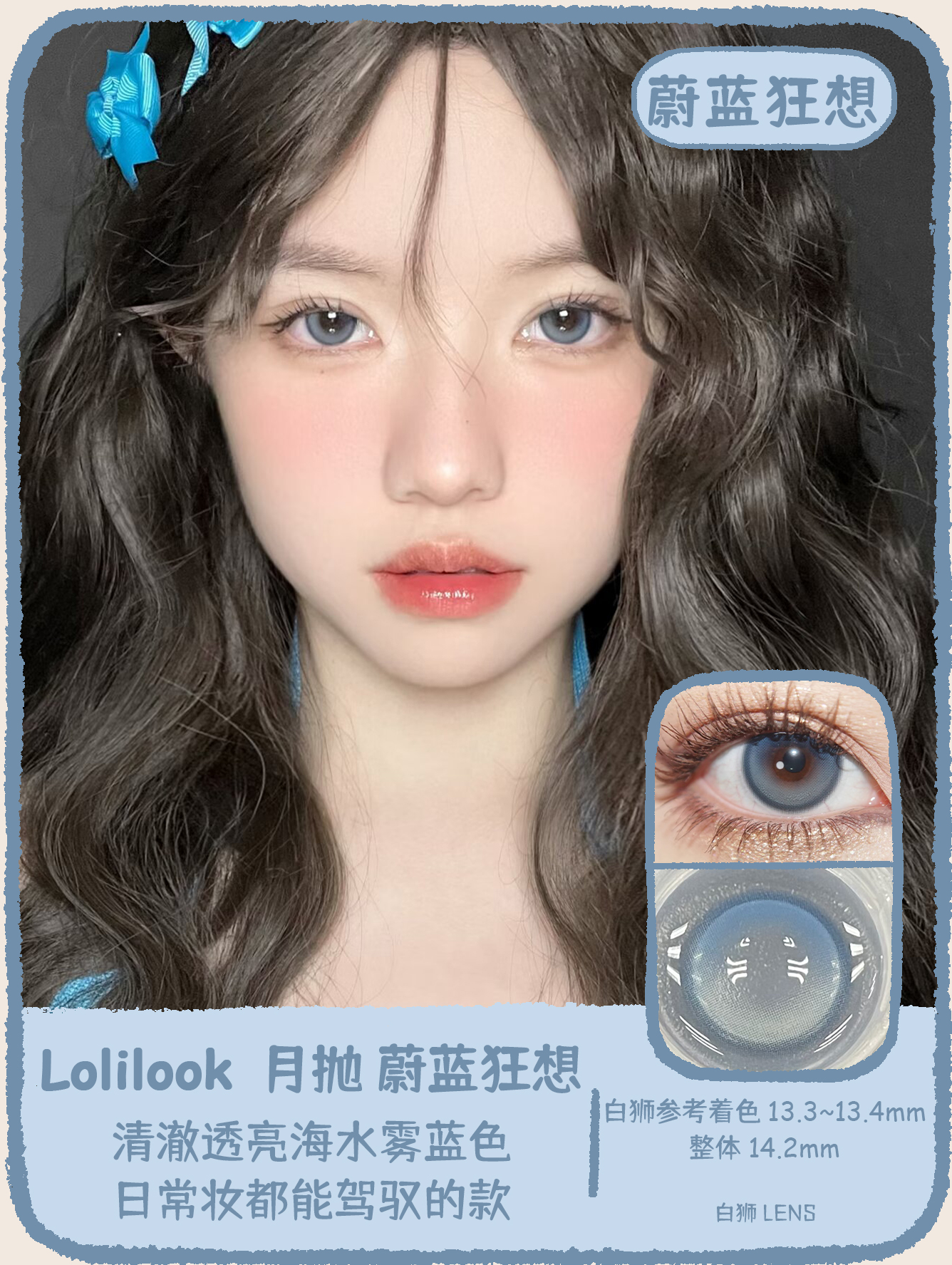 Lolilook旗下 · 荒野之舞&蔚蓝狂想&在逃绿洲| 14.2mm白狮参考着色中等直径|月抛