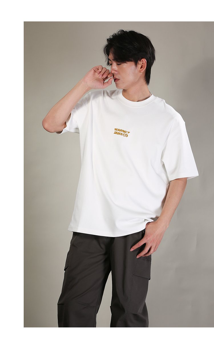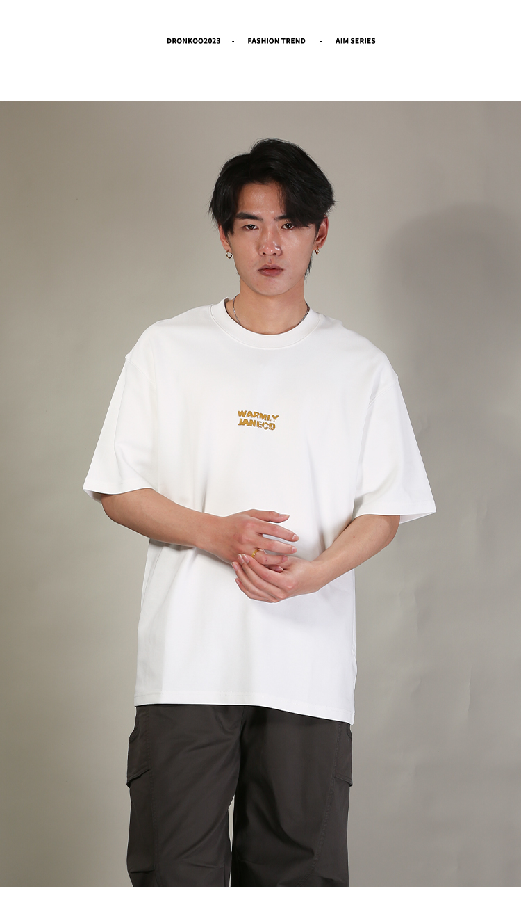 DRONKOO 2026 圆领前后双排撞色同色字母微阔短袖T恤