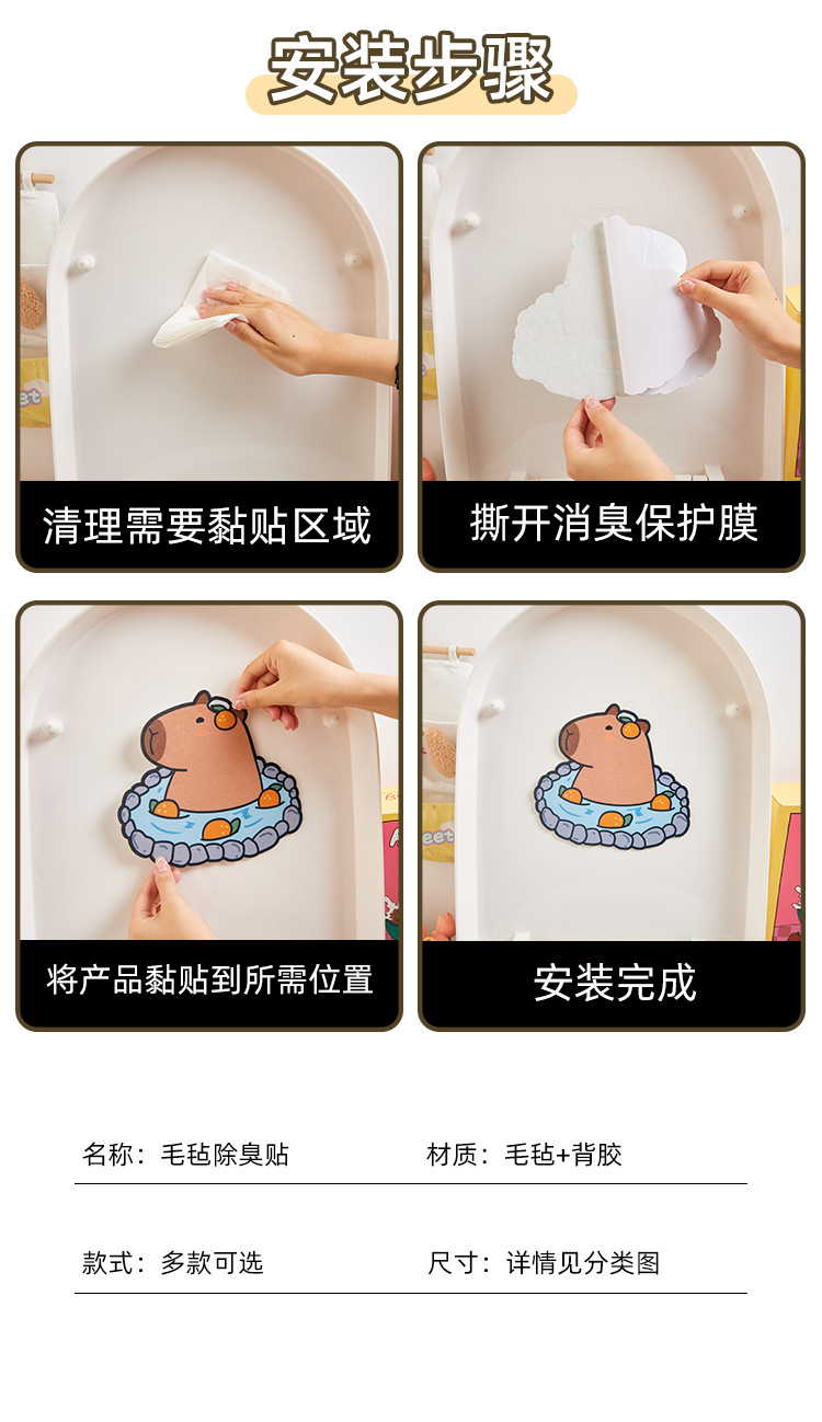 「四款香型!可爱香香贴」自粘式马桶除臭贴 去异味留香贴厕所卫生间家居饰品卡通装饰贴纸防水消臭贴
