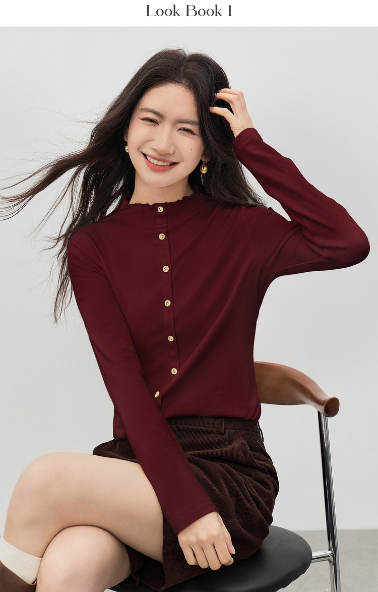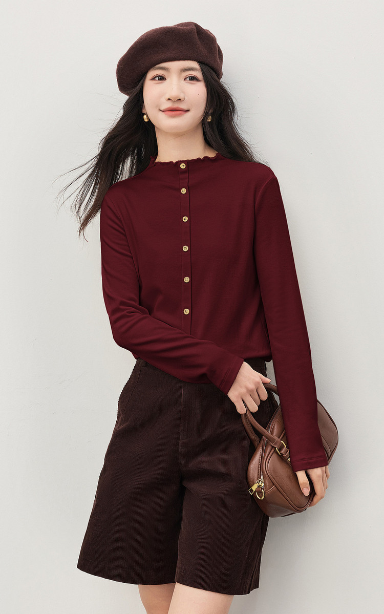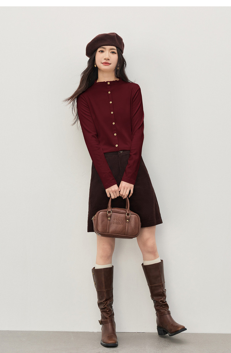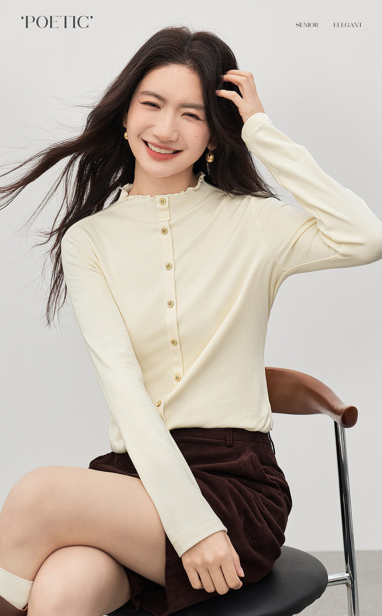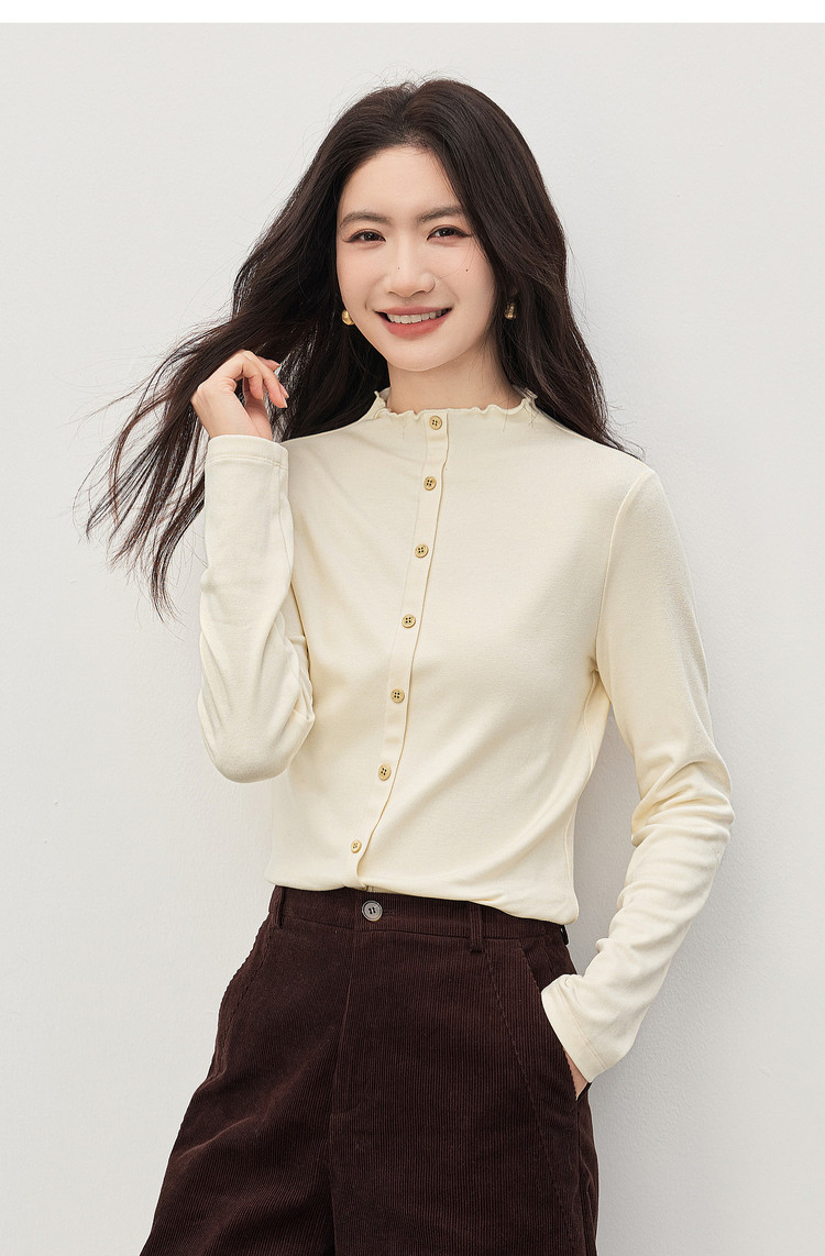 【1/21新品】熙世界云朵抓毛针织T恤打底衫女2025秋冬气质温柔内搭半高领上衣