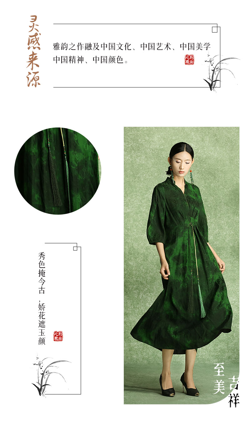 吉祥衣家溯游桑蚕丝提花新中式真丝国潮风高端女装连衣裙