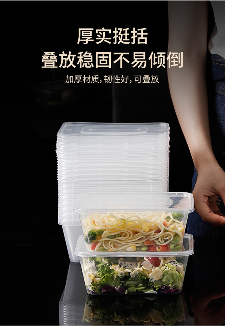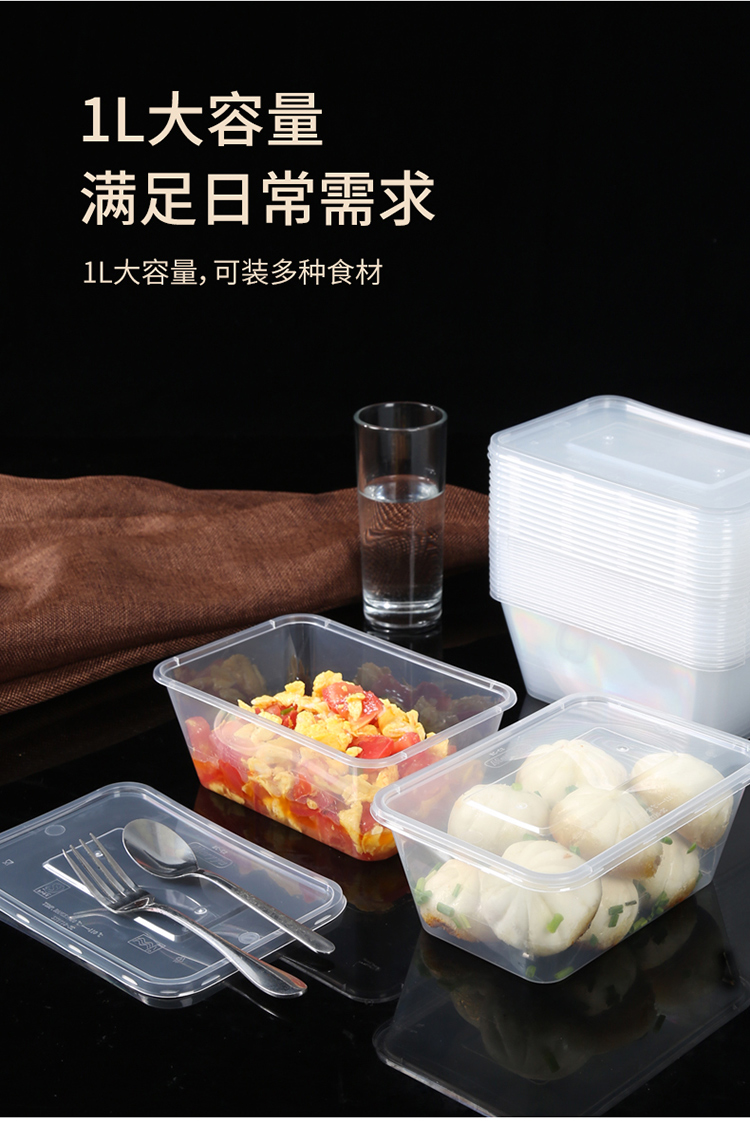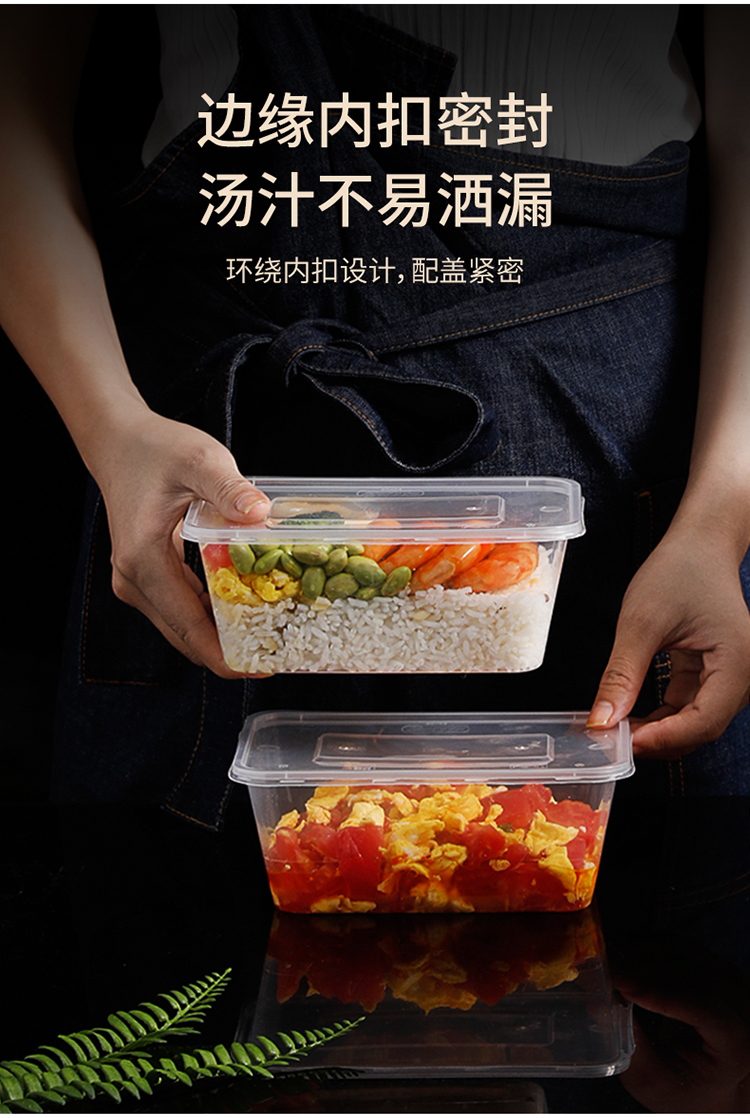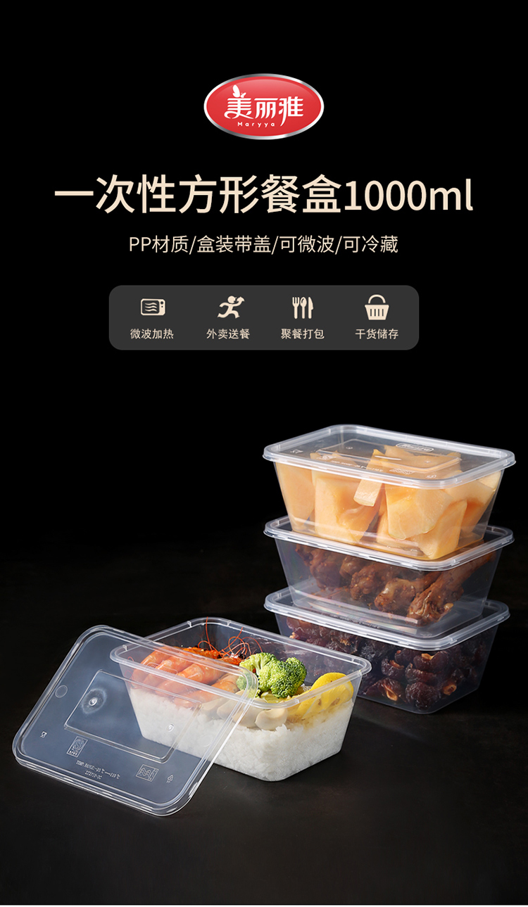 美丽雅方形加厚餐盒带盖SGS认证1000ml 20套/袋