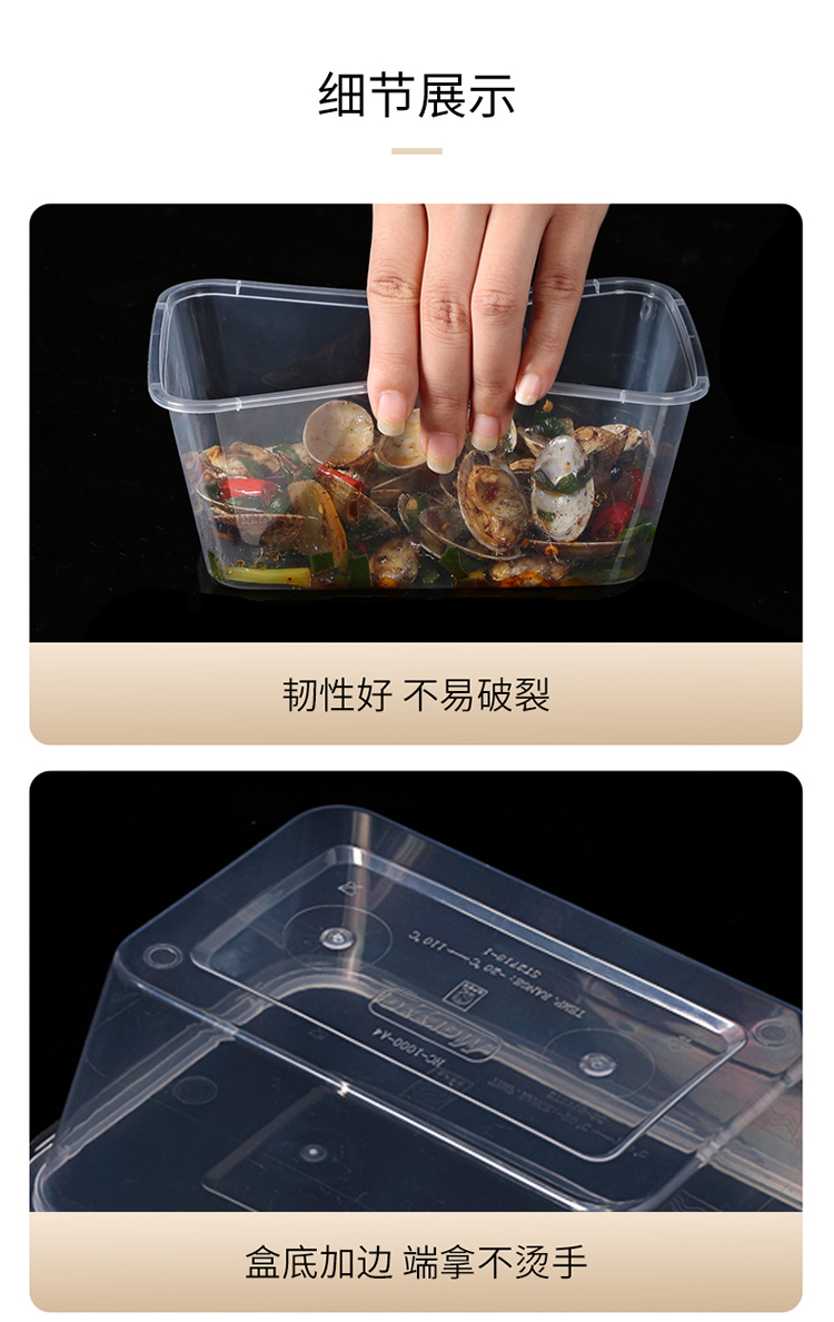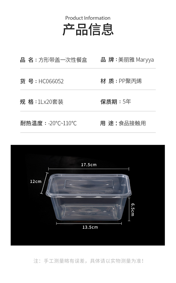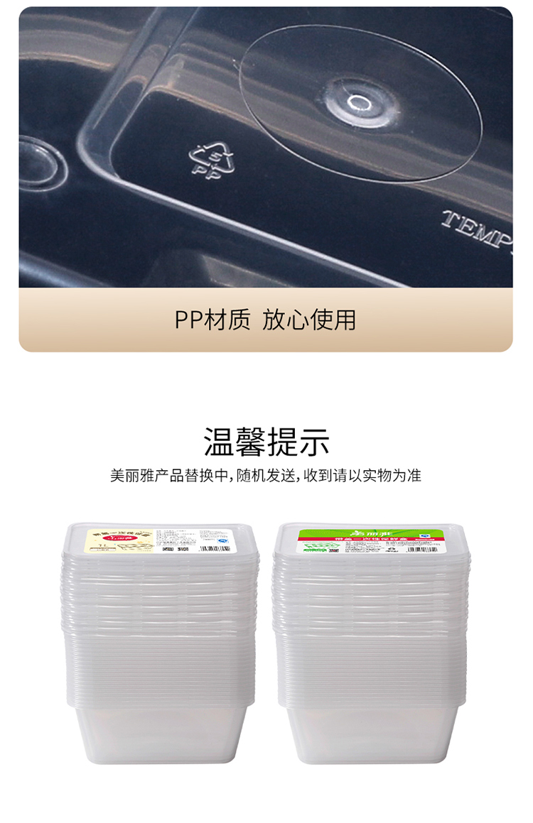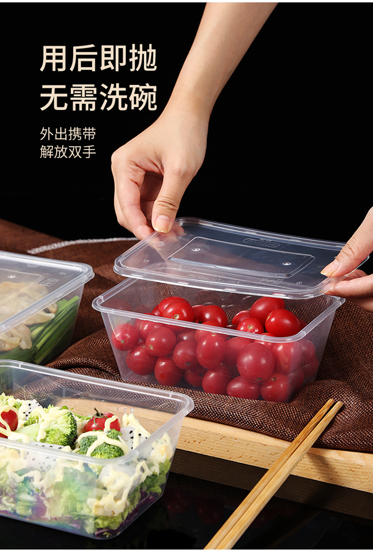美丽雅方形加厚餐盒带盖SGS认证1000ml 20套/袋