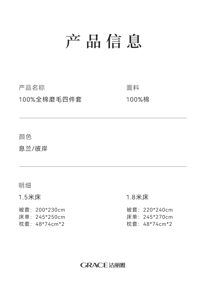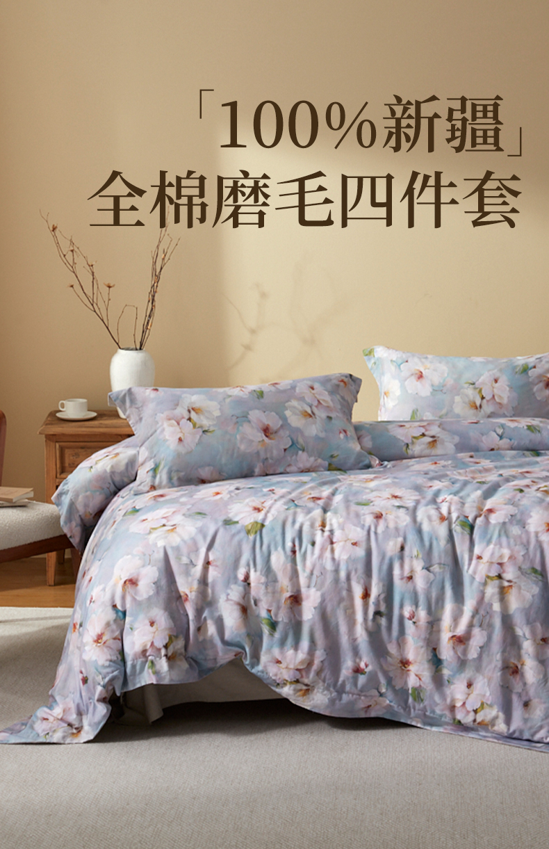 洁丽雅全棉磨毛磨毛套件柔软亲肤触感柔厚轻奢印花秋冬四件套