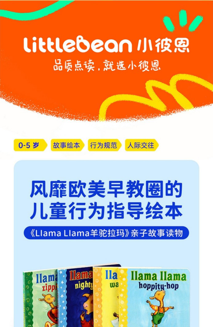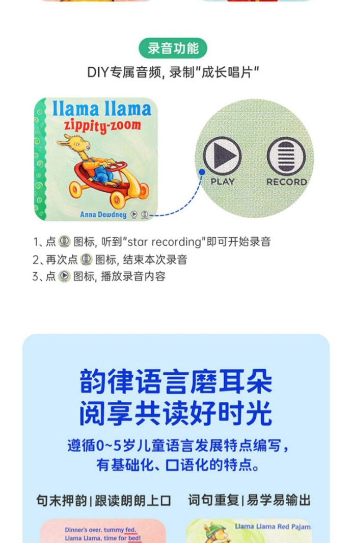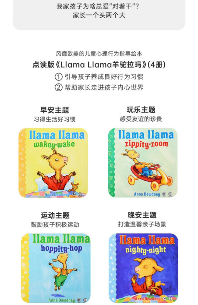 【英文原版】小彼恩点读书 羊驼拉玛 Llama Llama 4册 儿童心理行为指导 经典晚安读物 生活习惯养成毛毛虫点读笔配套书(不带笔)