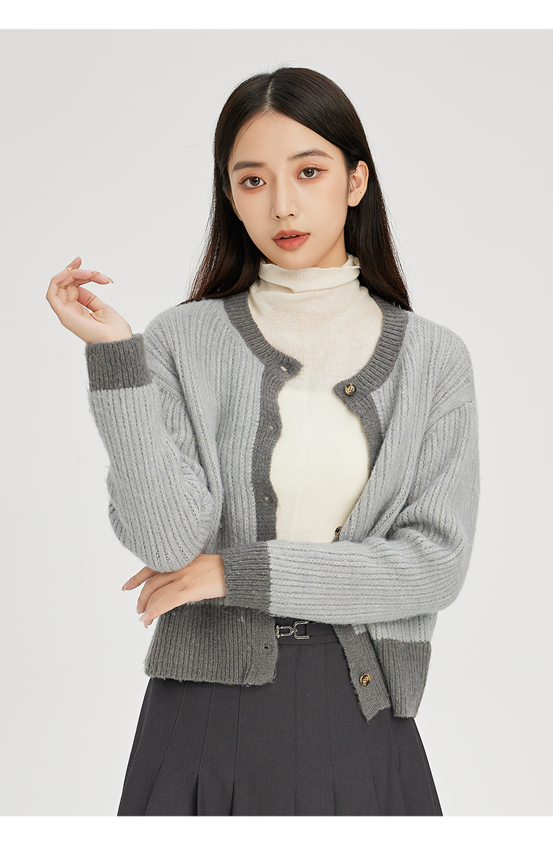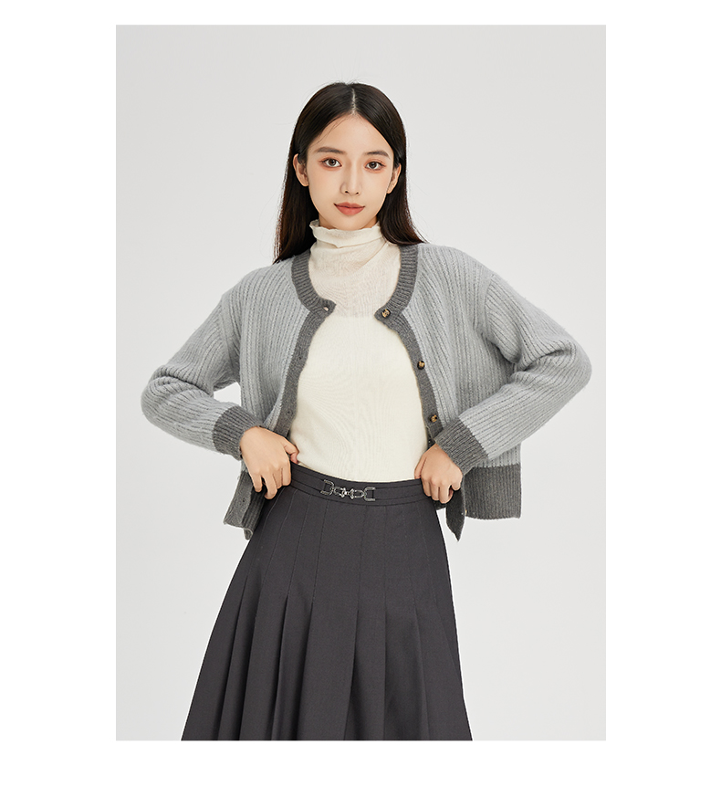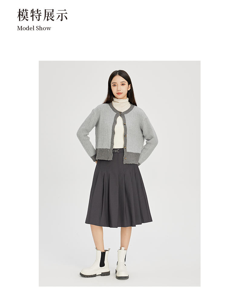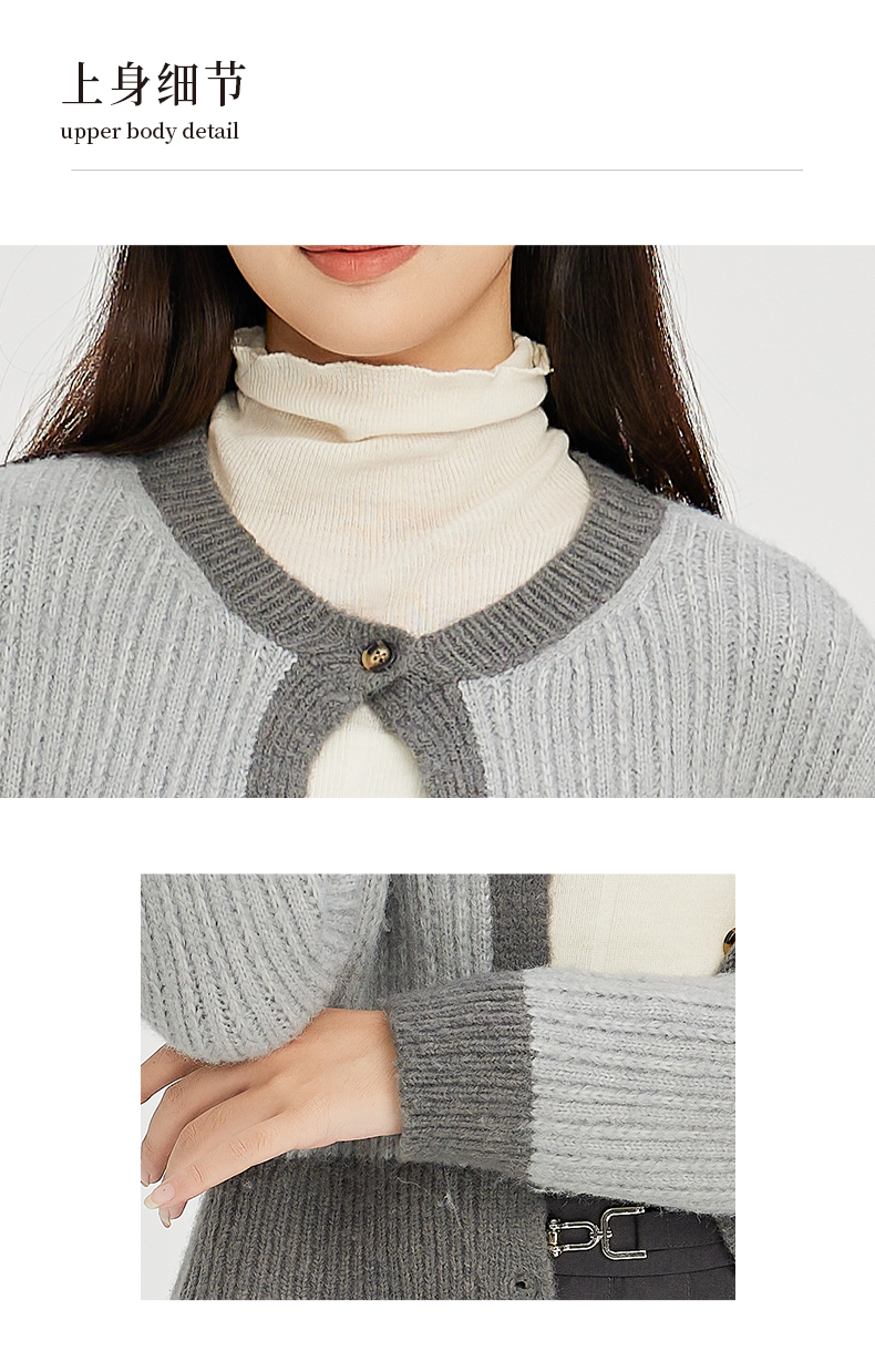 NUTS秋冬款灰色拼色百搭通勤直筒显瘦短款针织外套女241053247