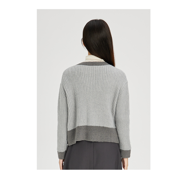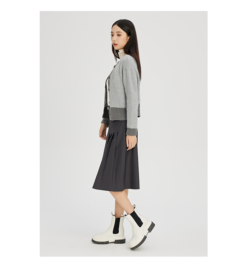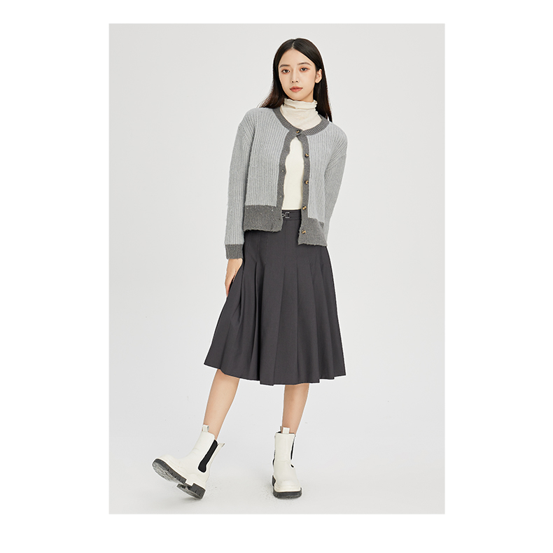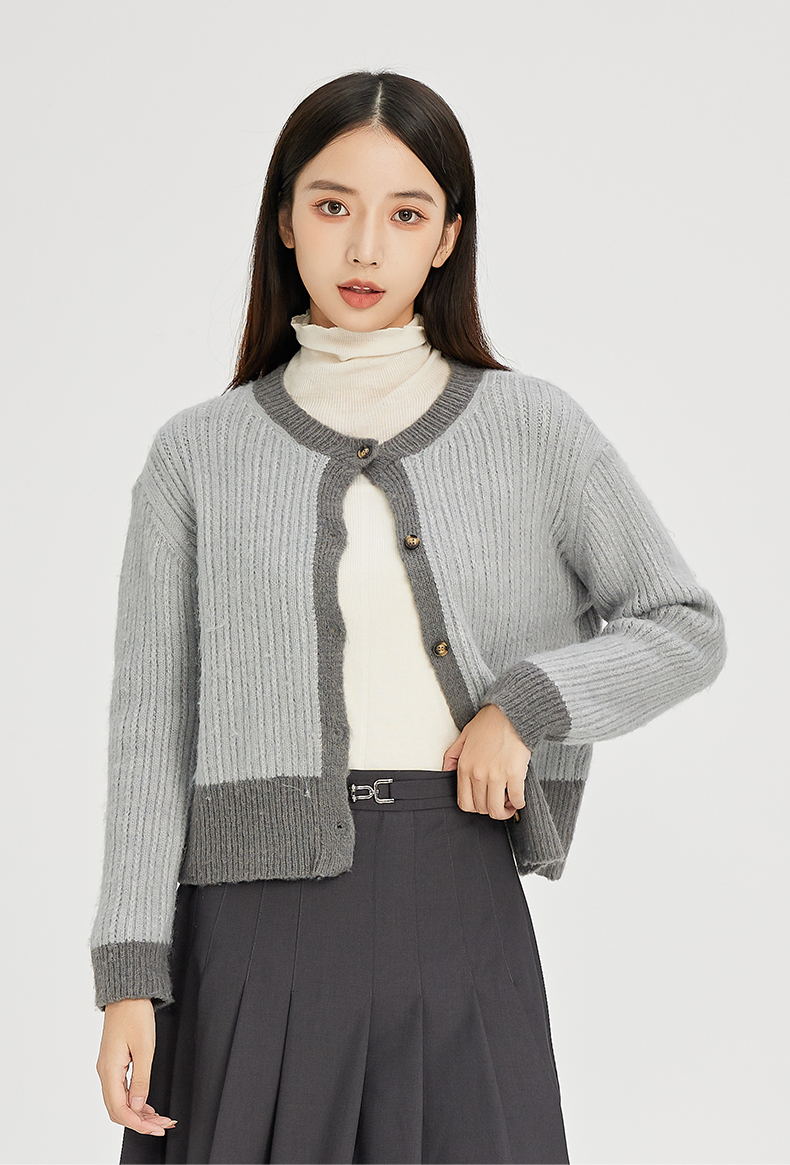 NUTS秋冬款灰色拼色百搭通勤直筒显瘦短款针织外套女241053247
