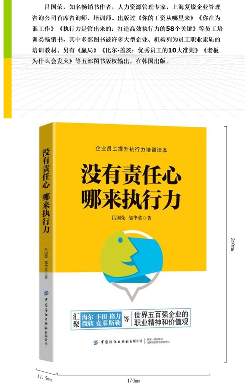 2020新书 没有责任心 哪来执行力 吕国荣 世界五百强企业的职业精神和价值观 企业员工提升执行力培训读本 企业领导员工职场宝典