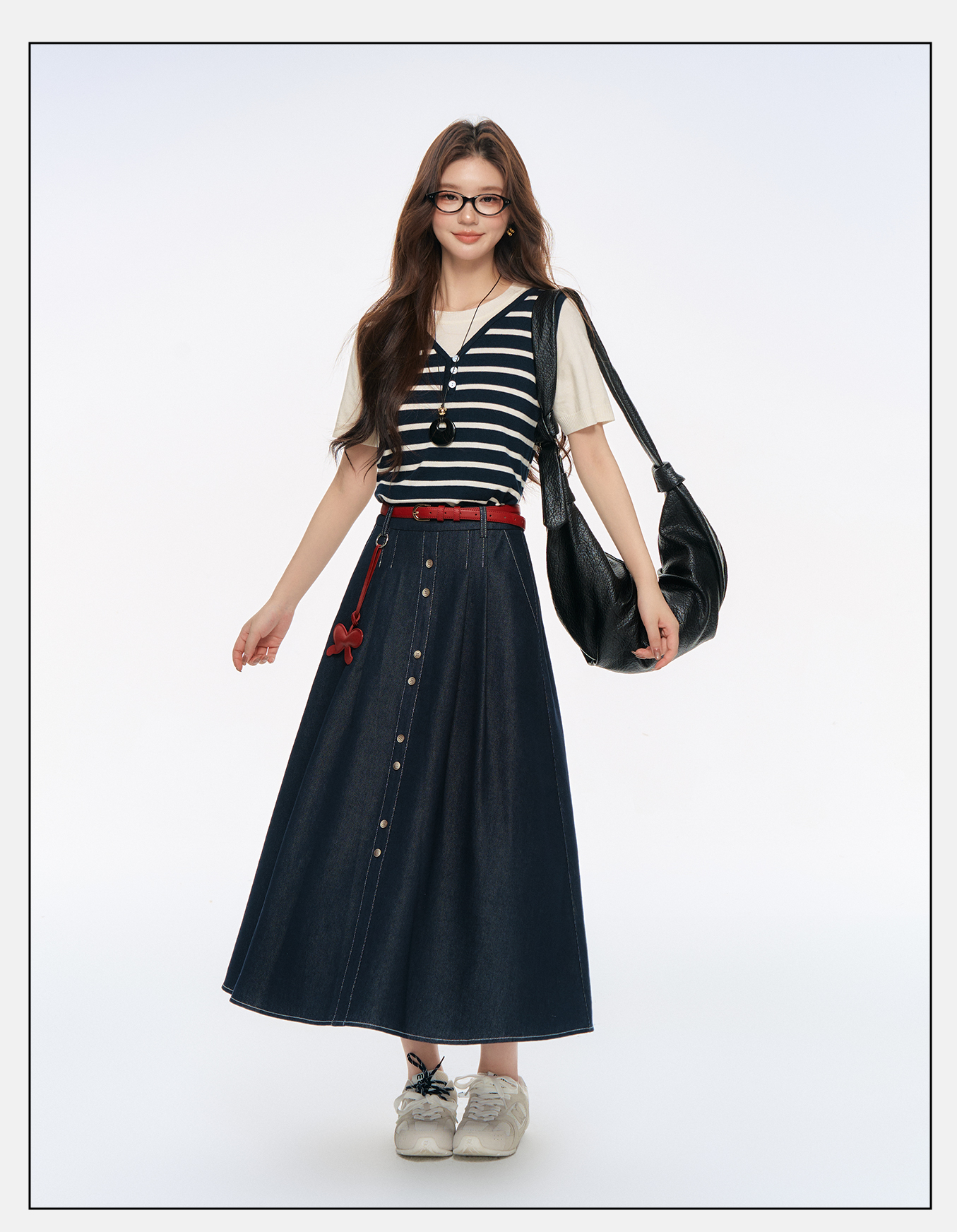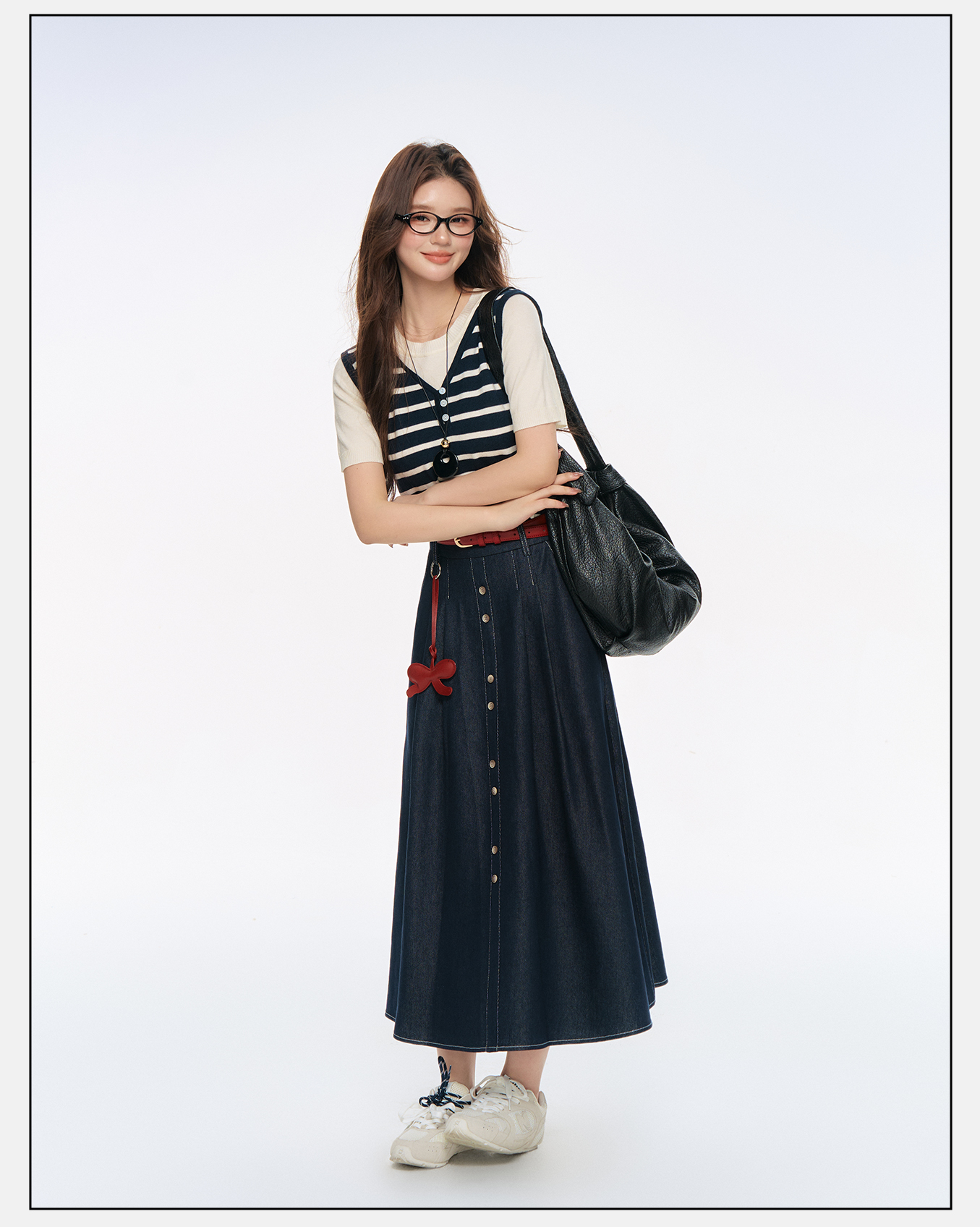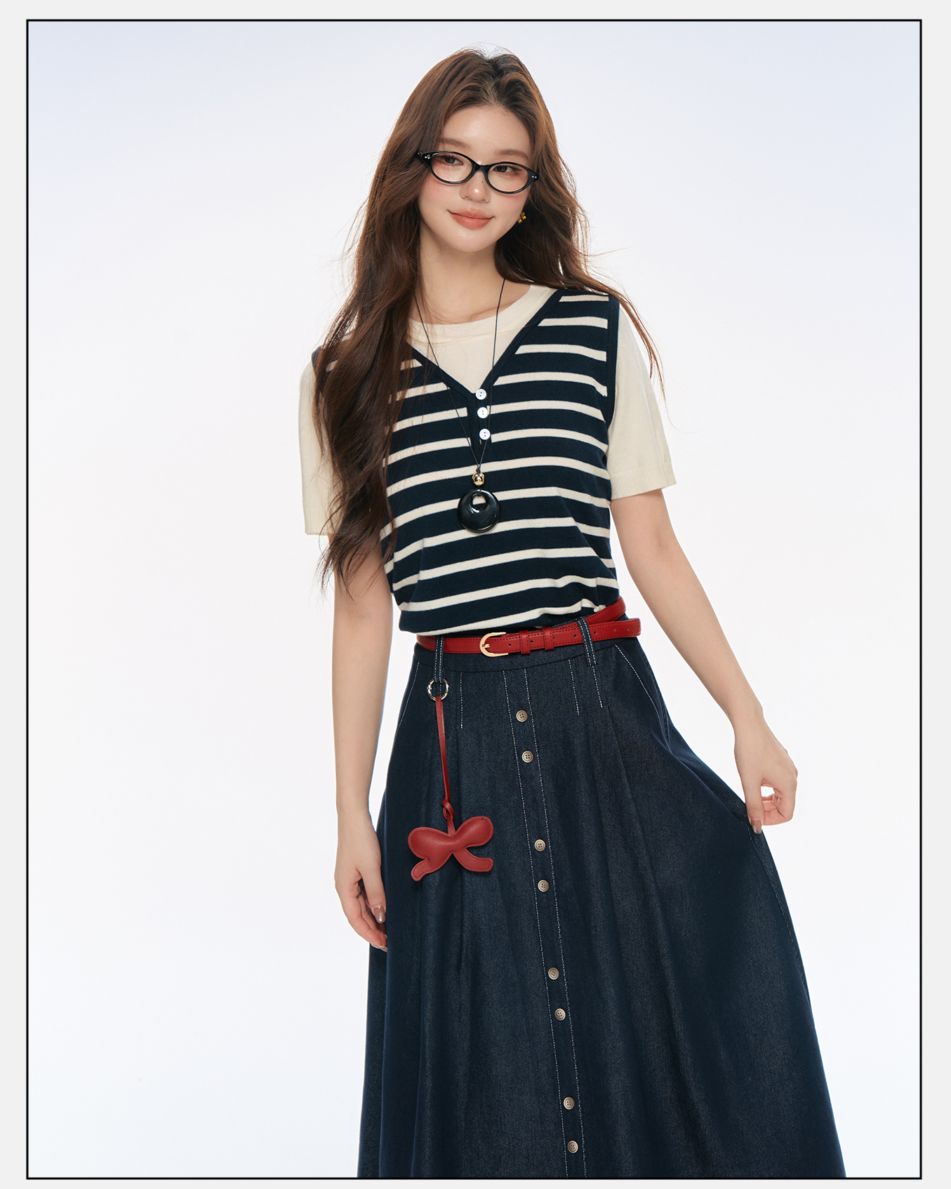 P&X设计师女装2025秋季新款拼接条纹学院风针织衫825331108蓝白条