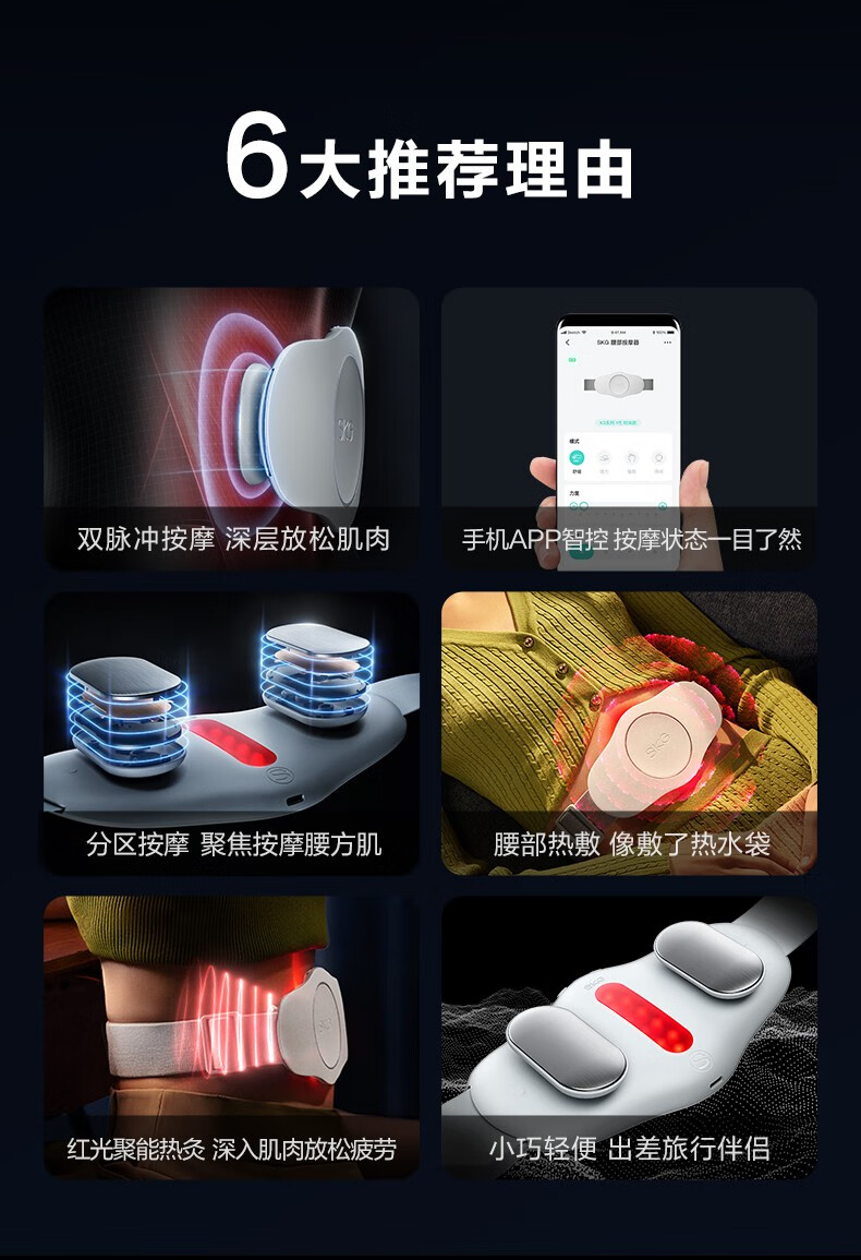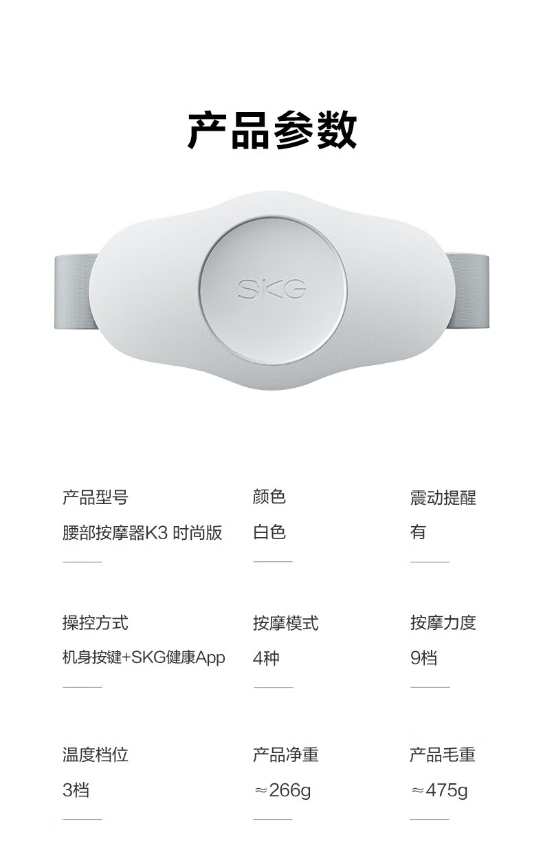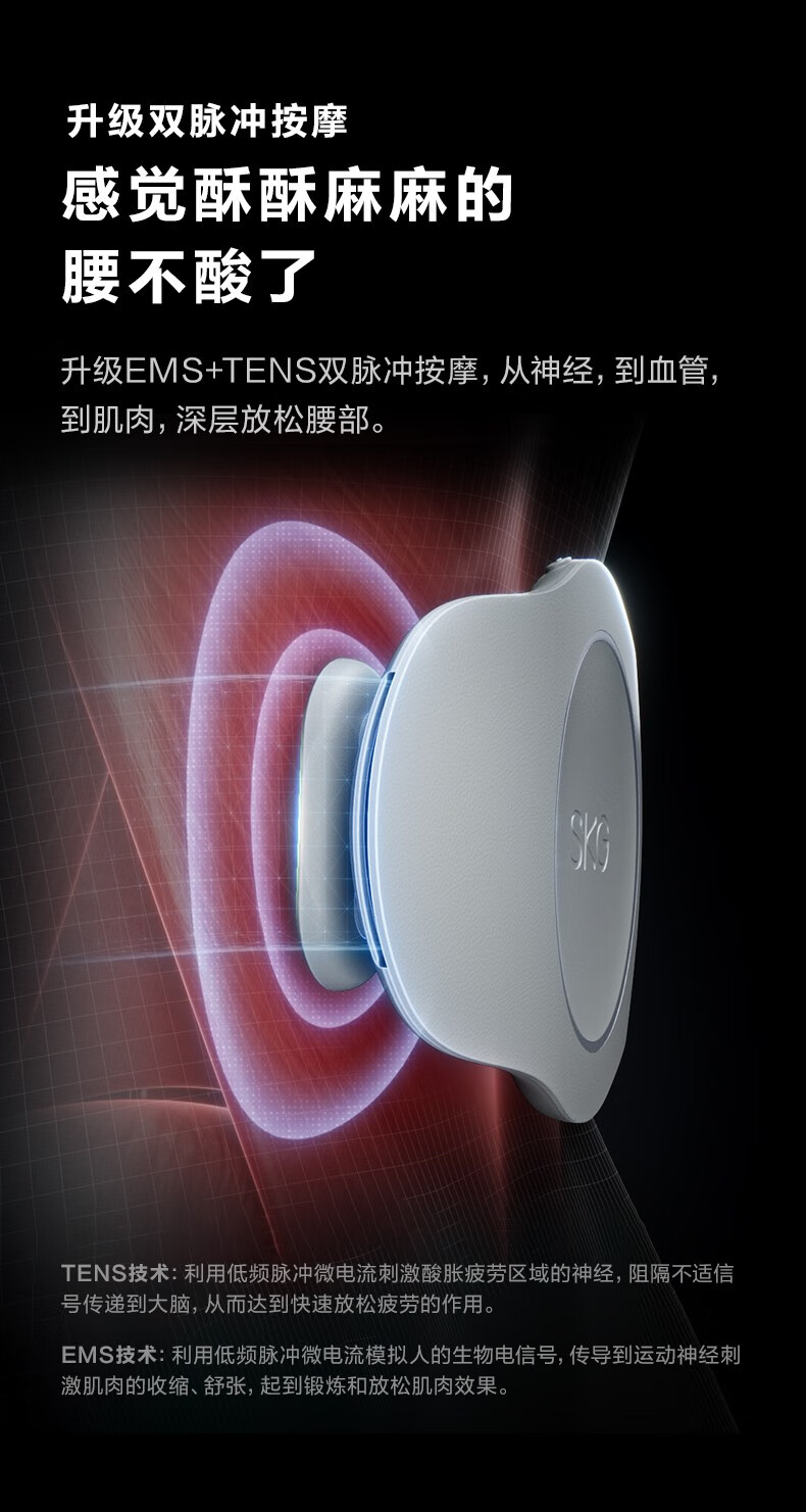 SKG 腰部按摩器 腰部腰椎按摩仪智能护腰腹部带热敷便携新年实用生日礼物送父母长辈爸妈男女生礼品 腰部按摩-K3时尚款(TZ)