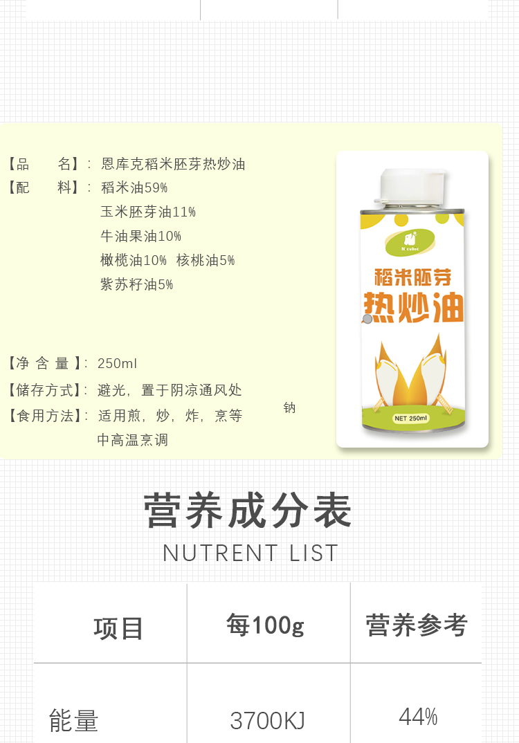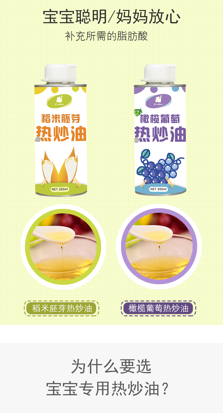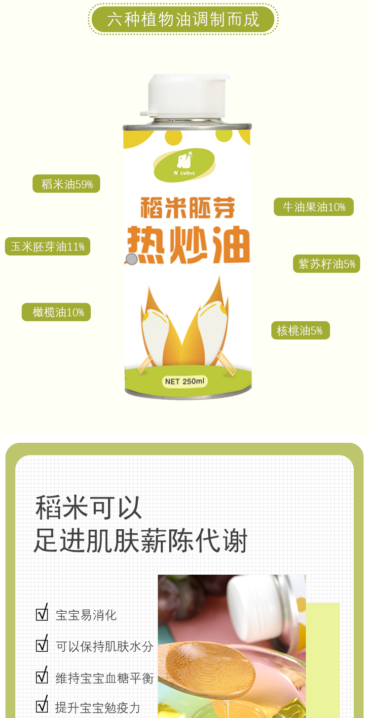 N-cubic恩库克宝宝辅食炒菜高温橄榄葡萄稻米胚芽热炒油250ml