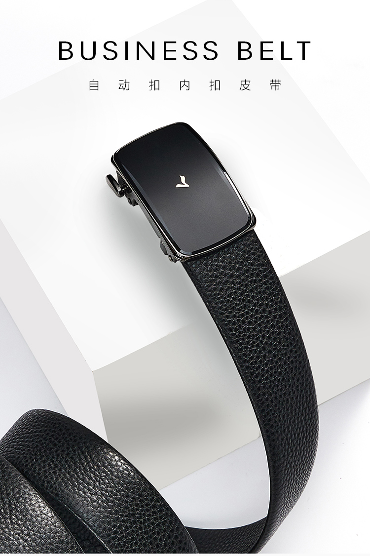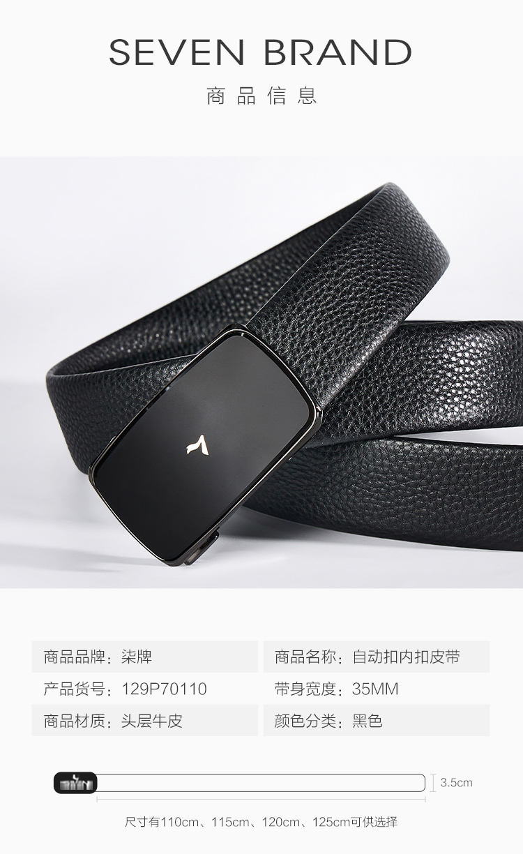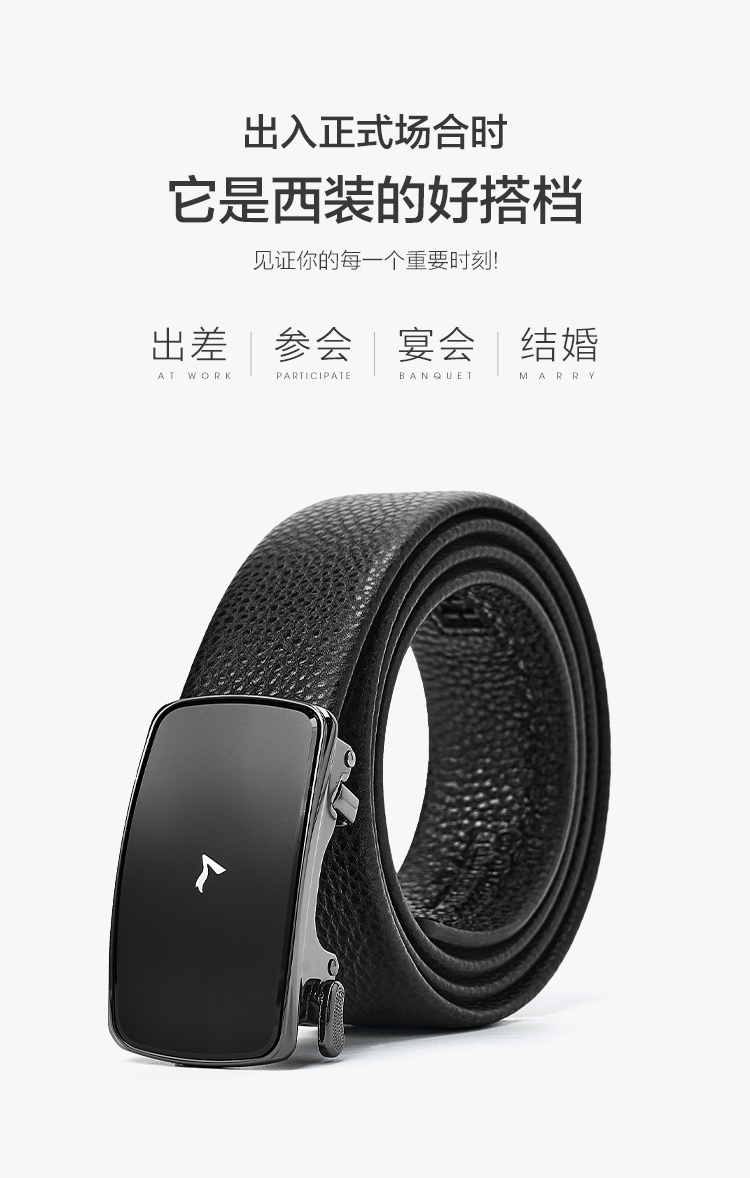 【婚礼季】柒牌皮带男款荔枝纹自动扣皮带2025年新款真皮商务正装男士裤腰带129P70110