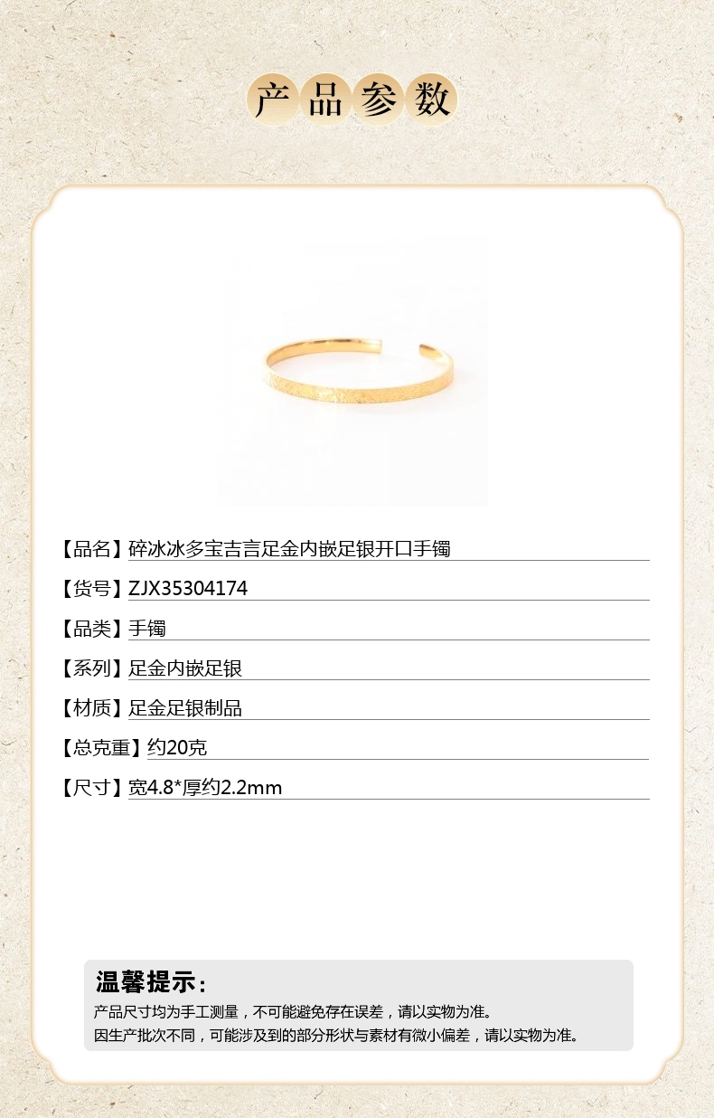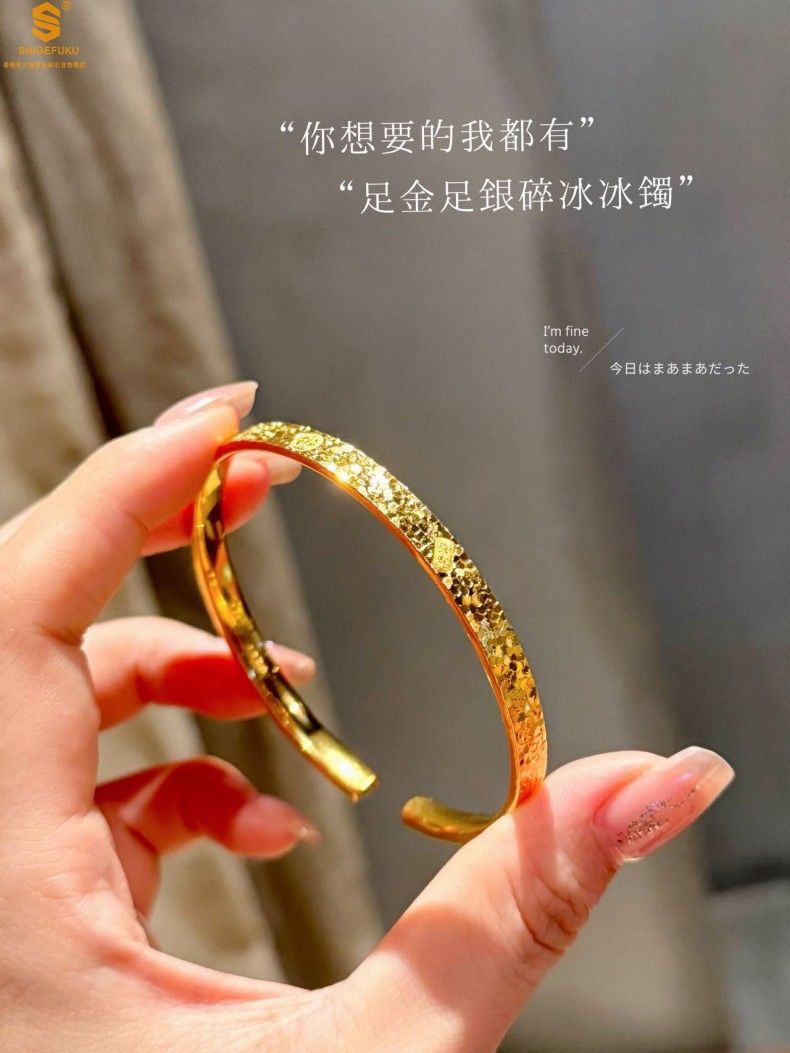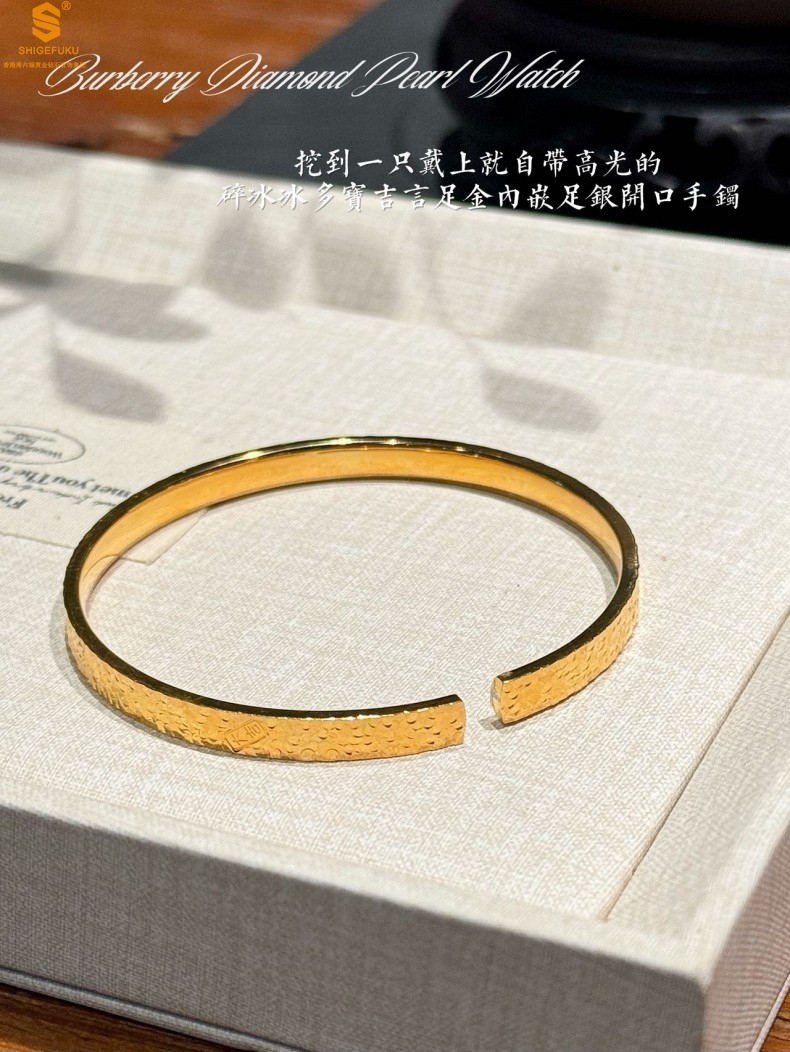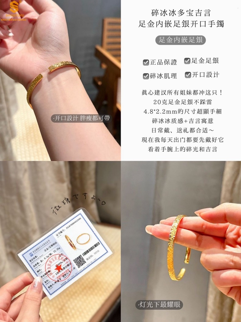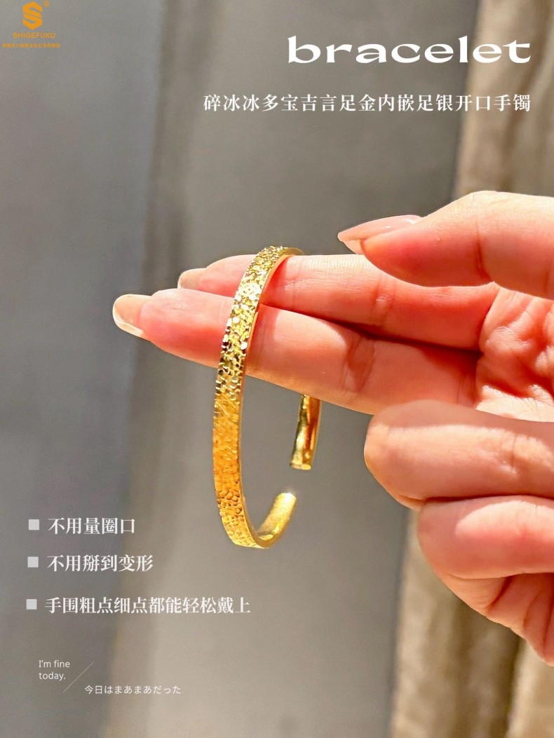 【品名】碎冰冰多宝吉言足金内嵌足银开口手镯