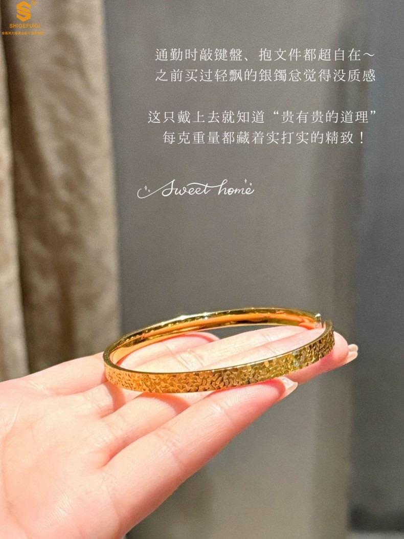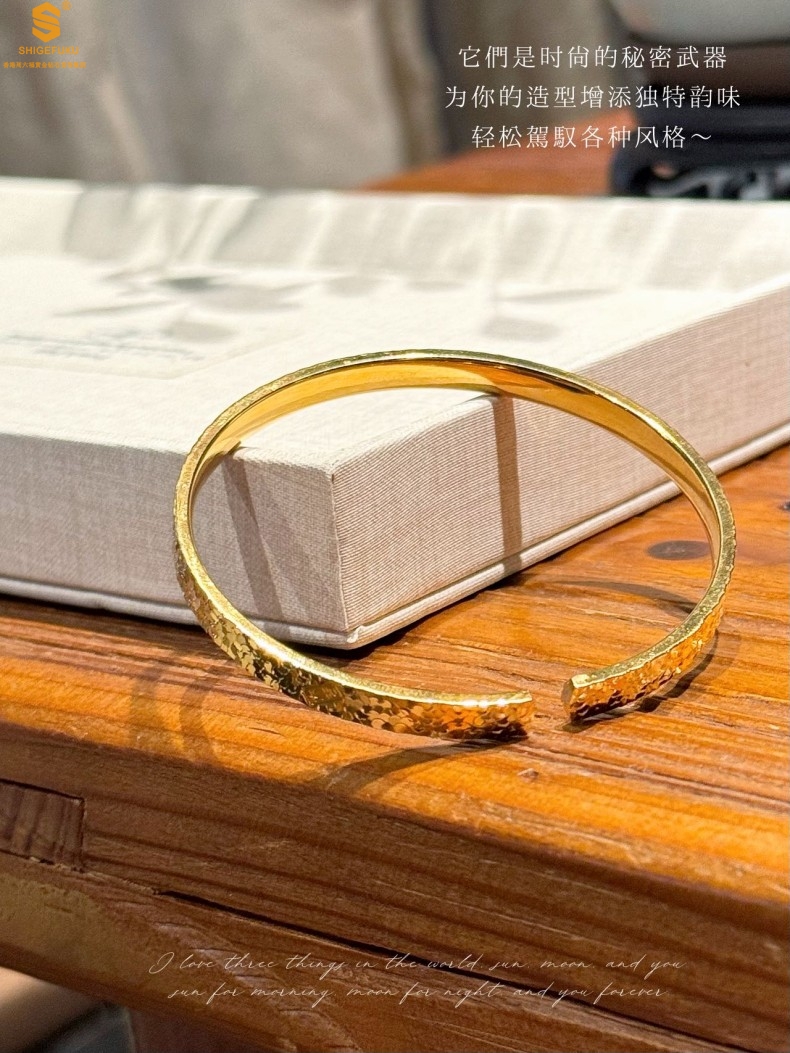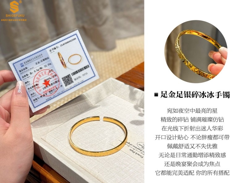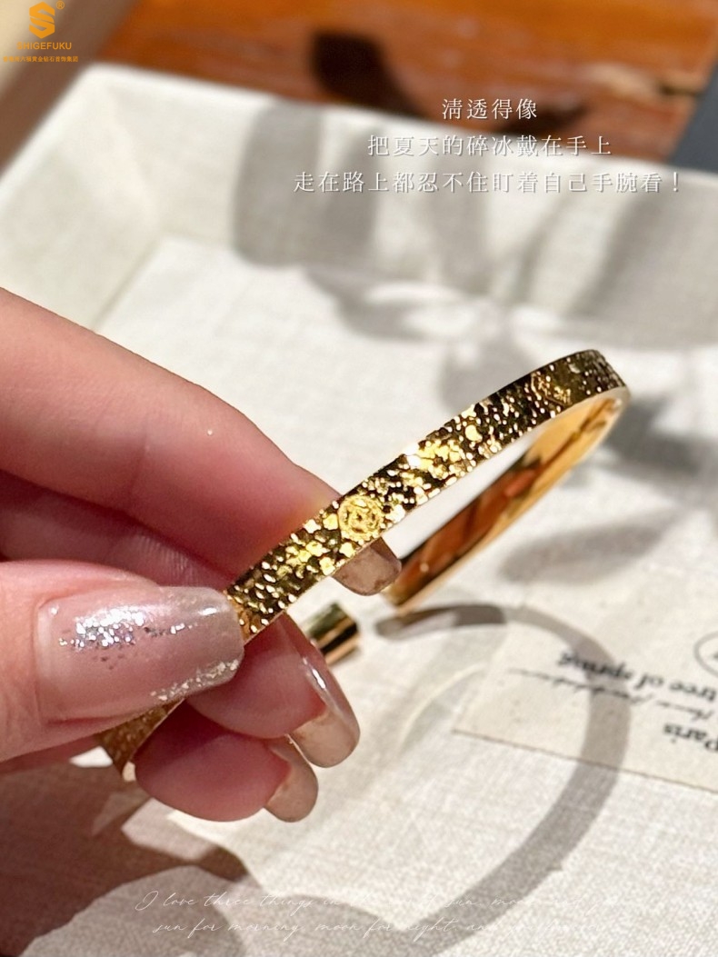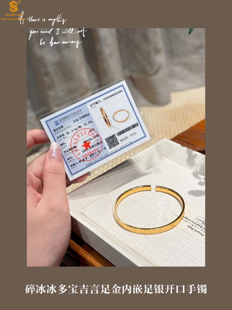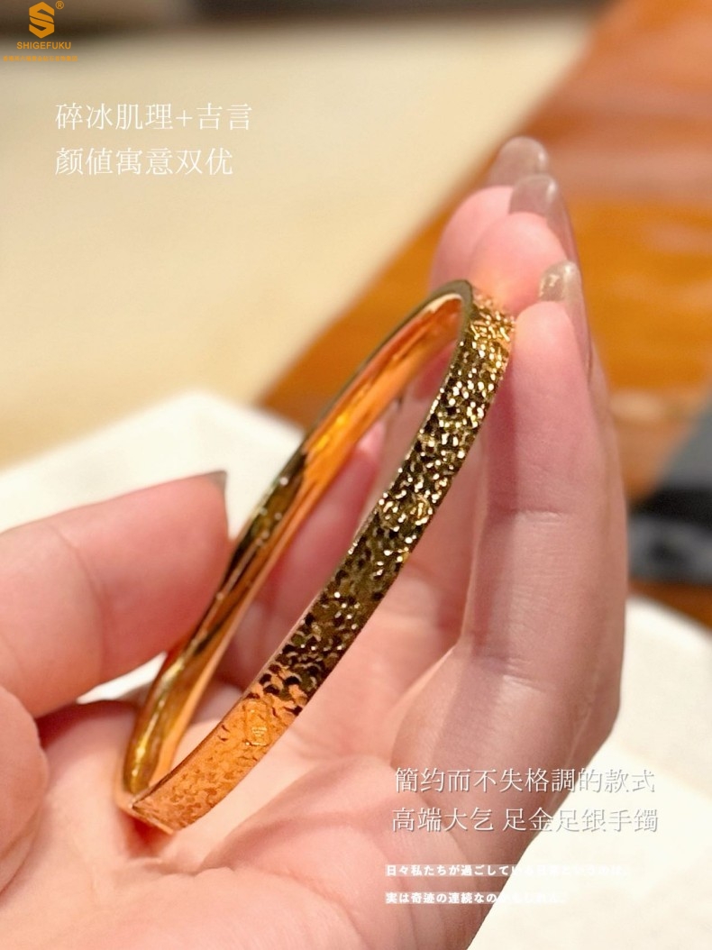 【品名】碎冰冰多宝吉言足金内嵌足银开口手镯