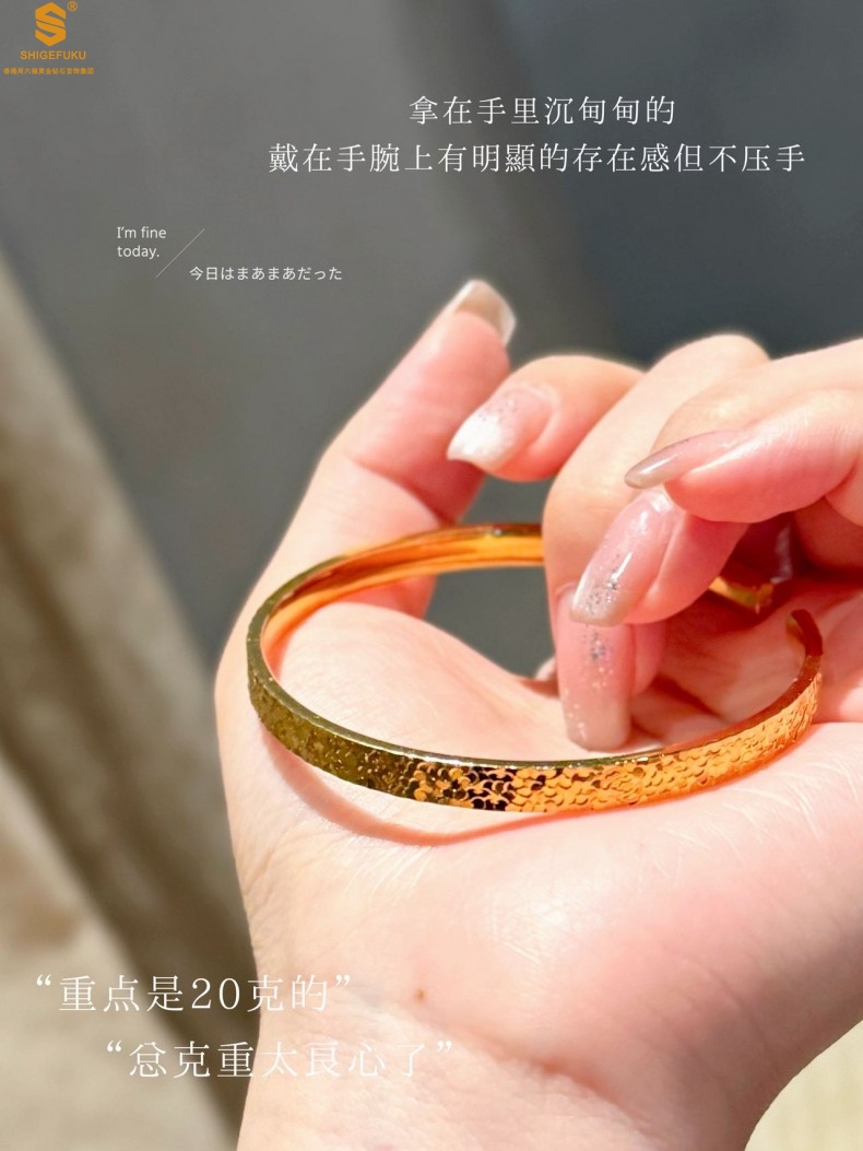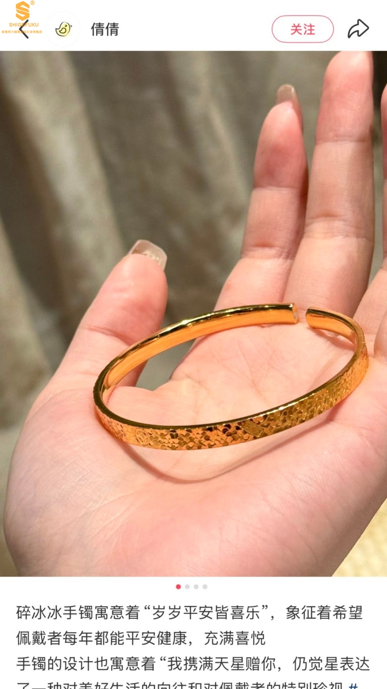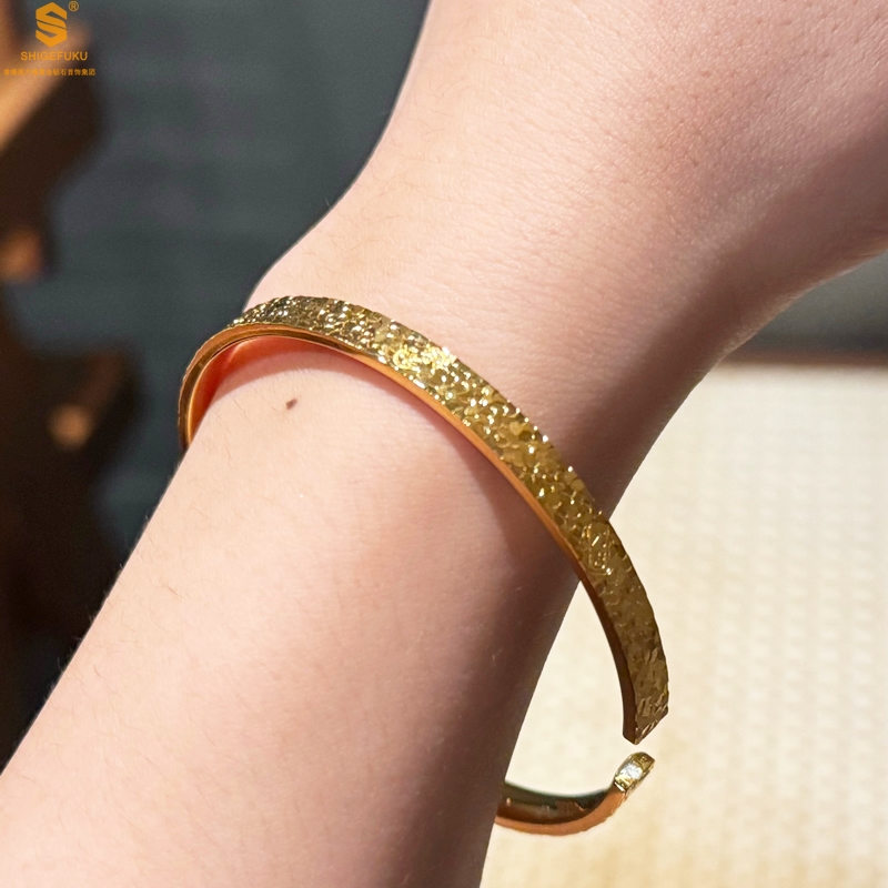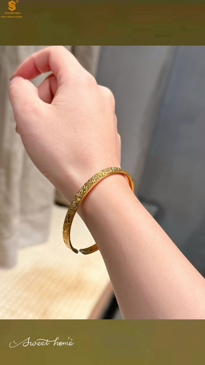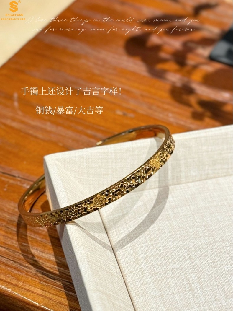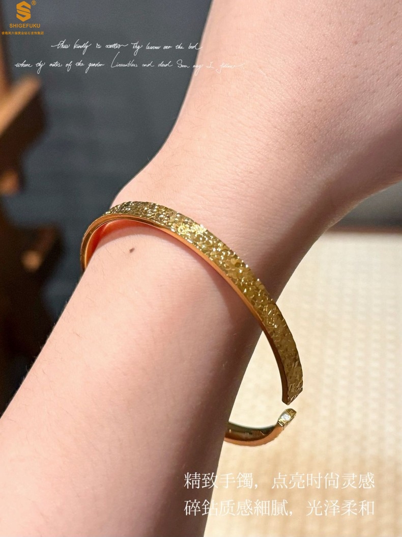 【品名】碎冰冰多宝吉言足金内嵌足银开口手镯