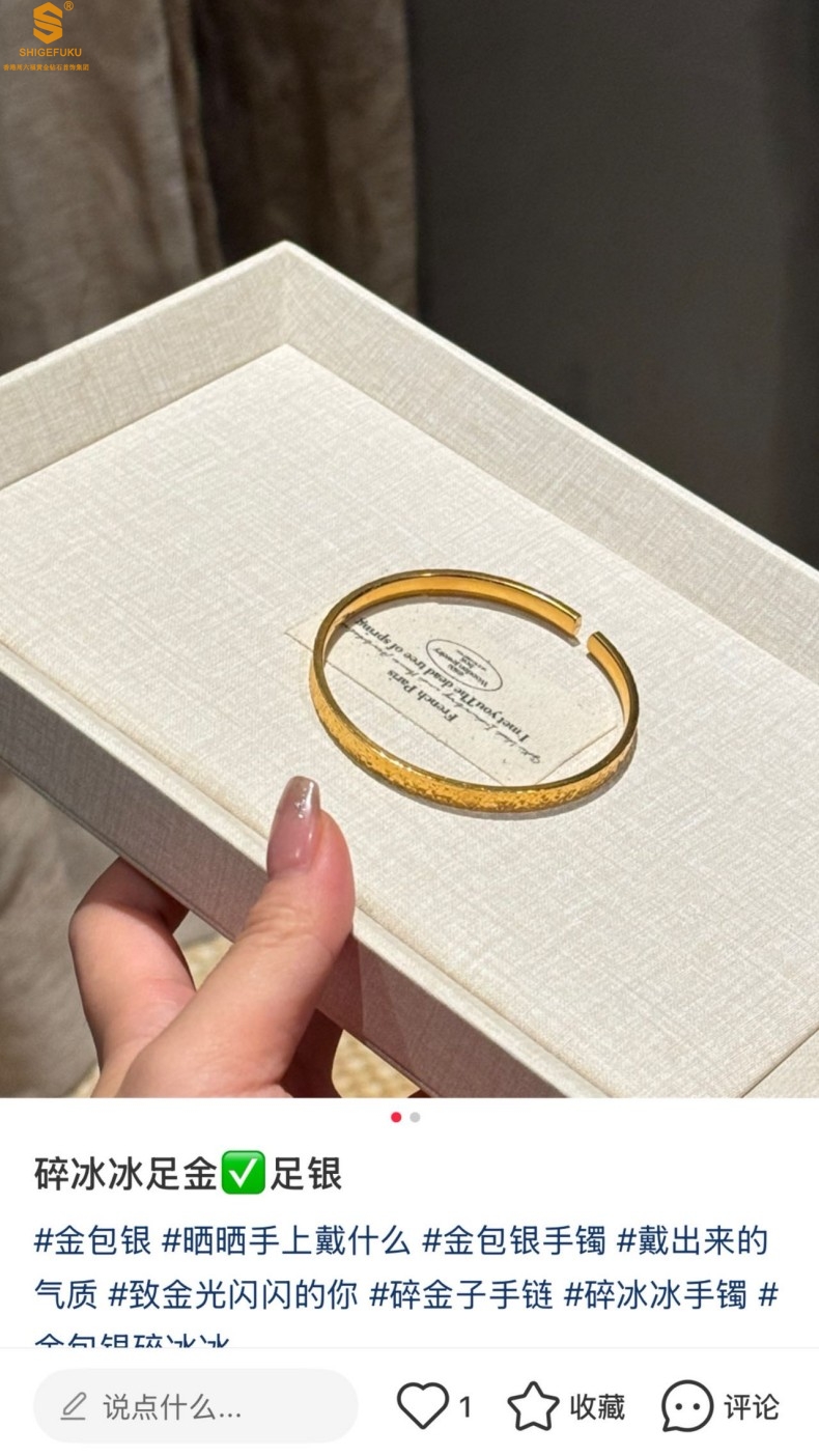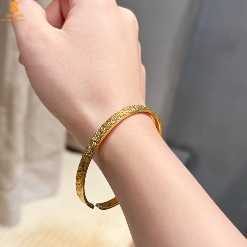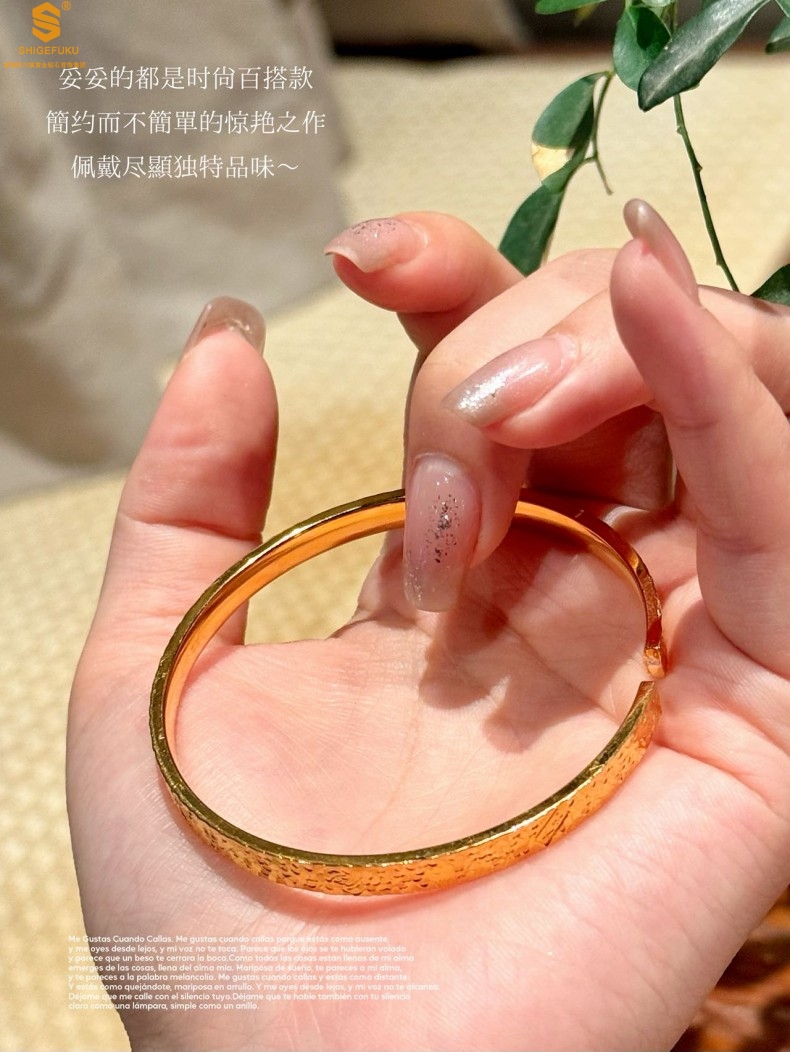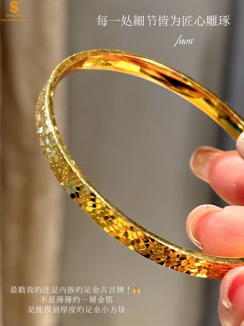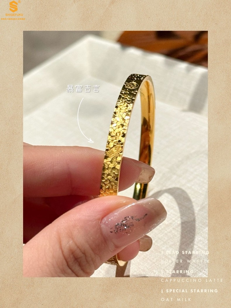 【品名】碎冰冰多宝吉言足金内嵌足银开口手镯