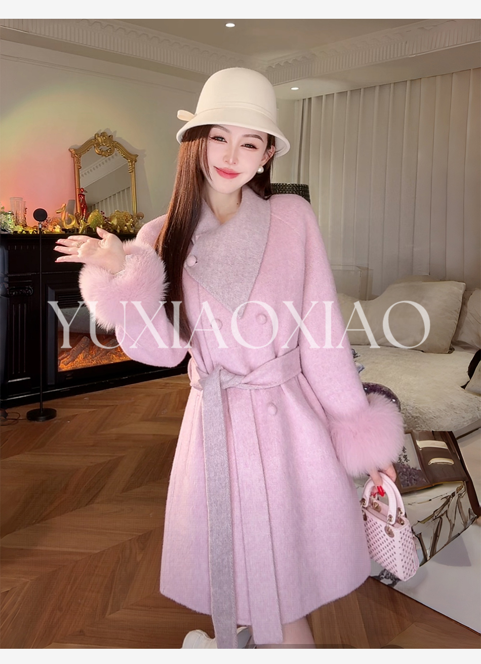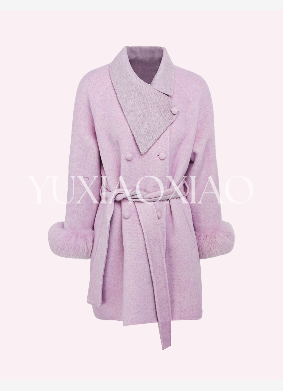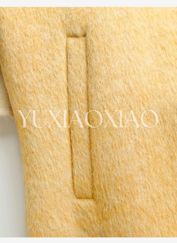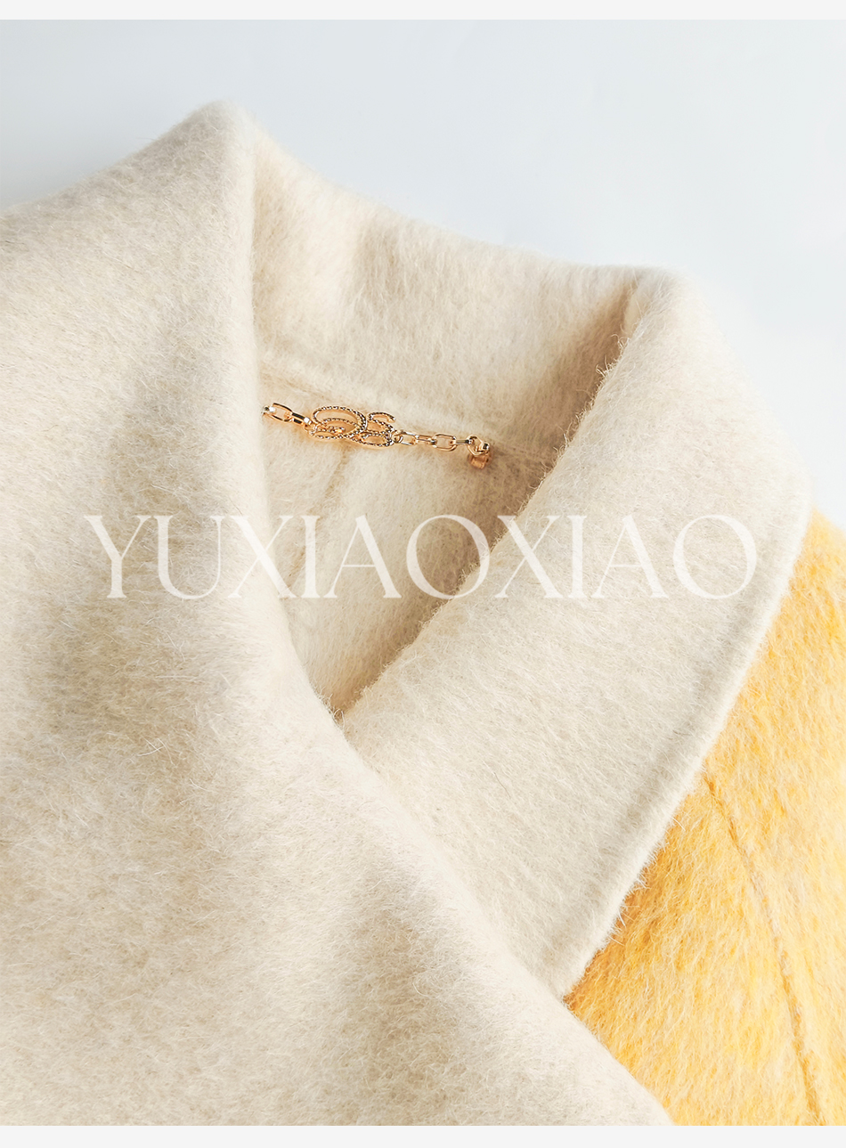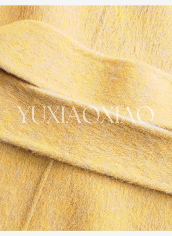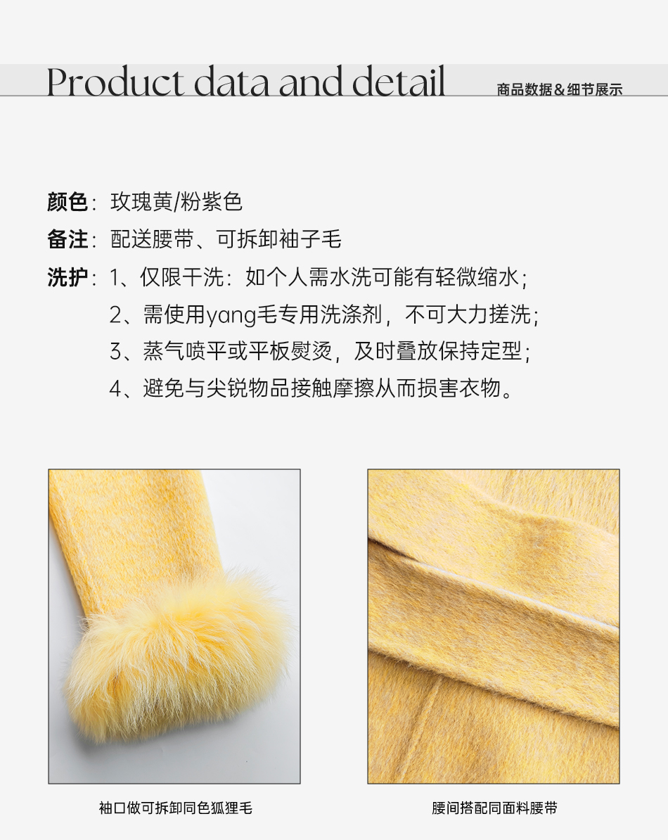 余潇潇【治愈黄玫瑰】桑蚕丝兔毛绵羊毛混纺可拆卸狐狸毛毛呢大衣
