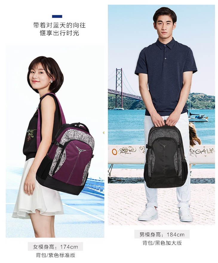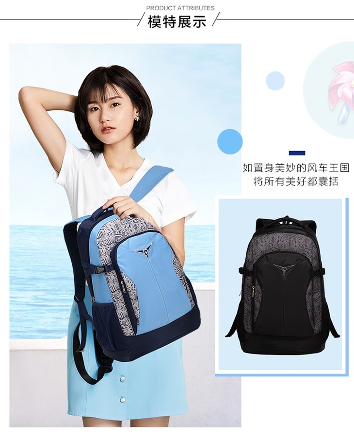 爱华仕 大容量背包 双肩包 学生书包 运动休闲男女包 OCB4000M黑色/蓝色