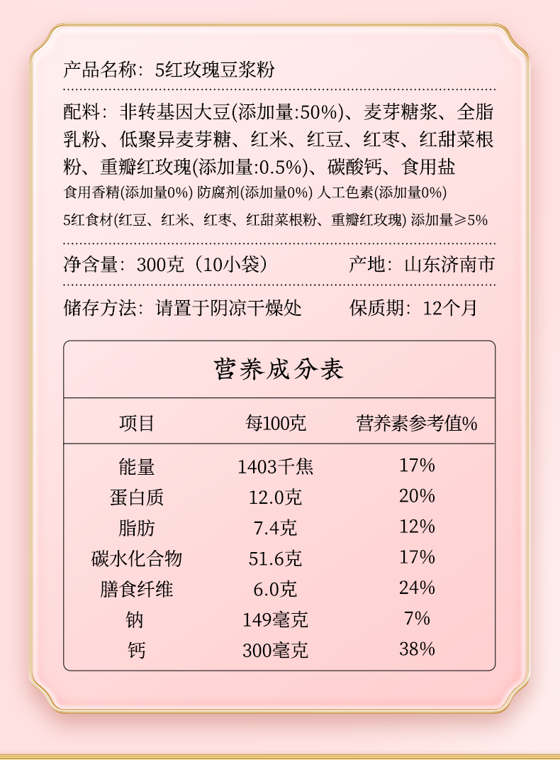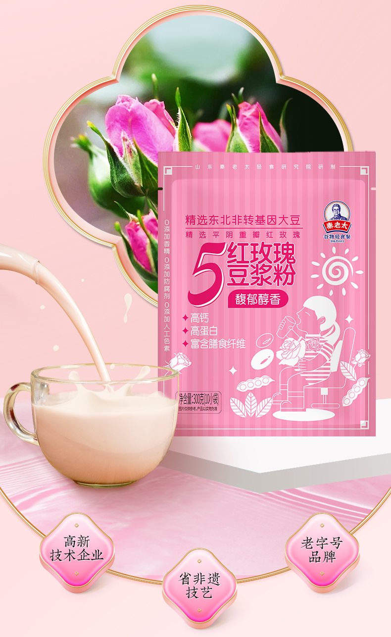 秦老太5红玫瑰豆浆粉 爱的特调·玫颜粉黛300g/袋(内含10包冷热水可冲)
