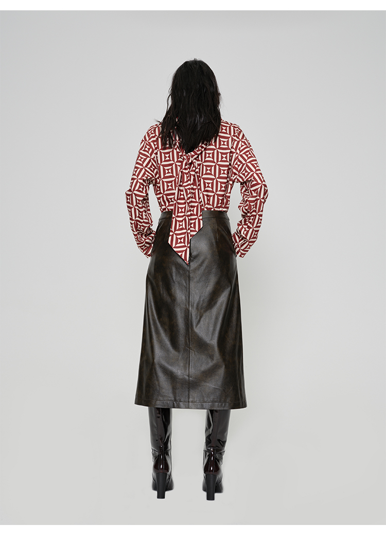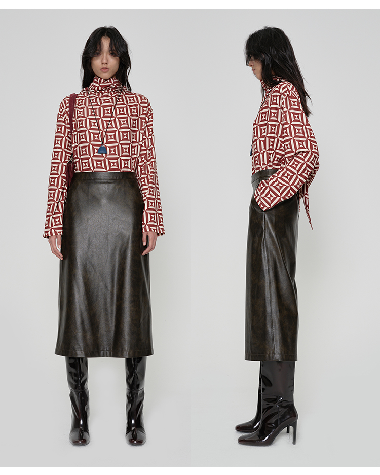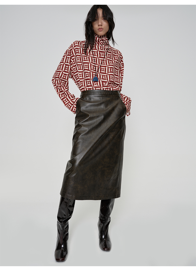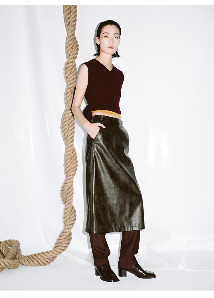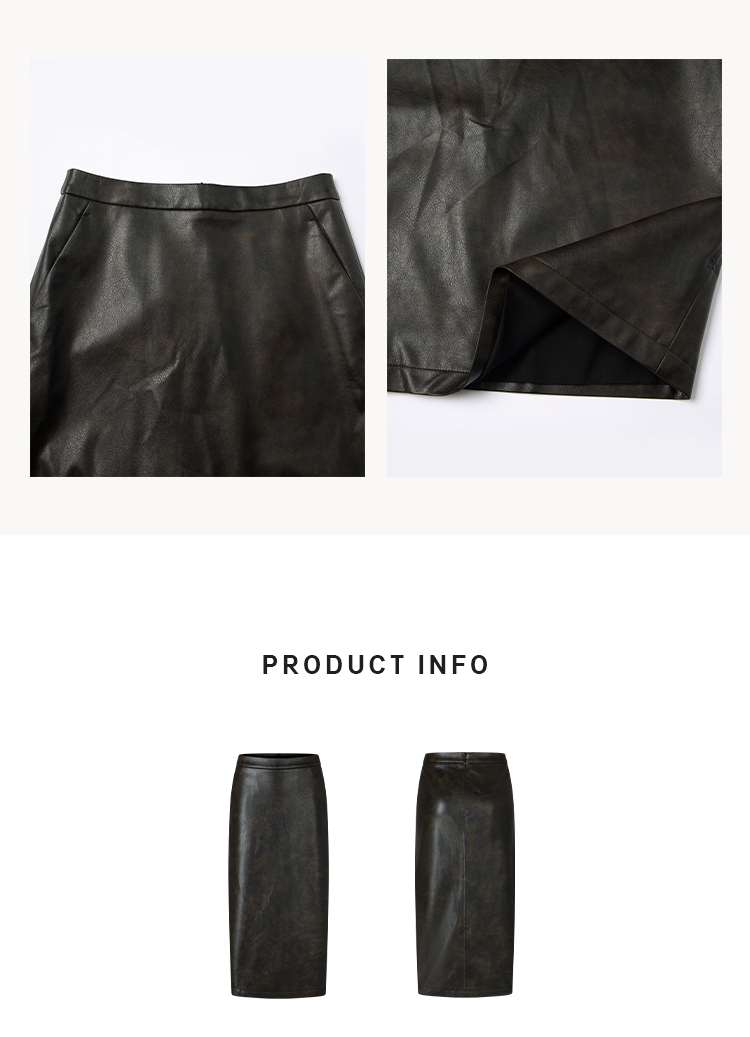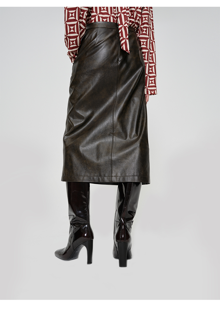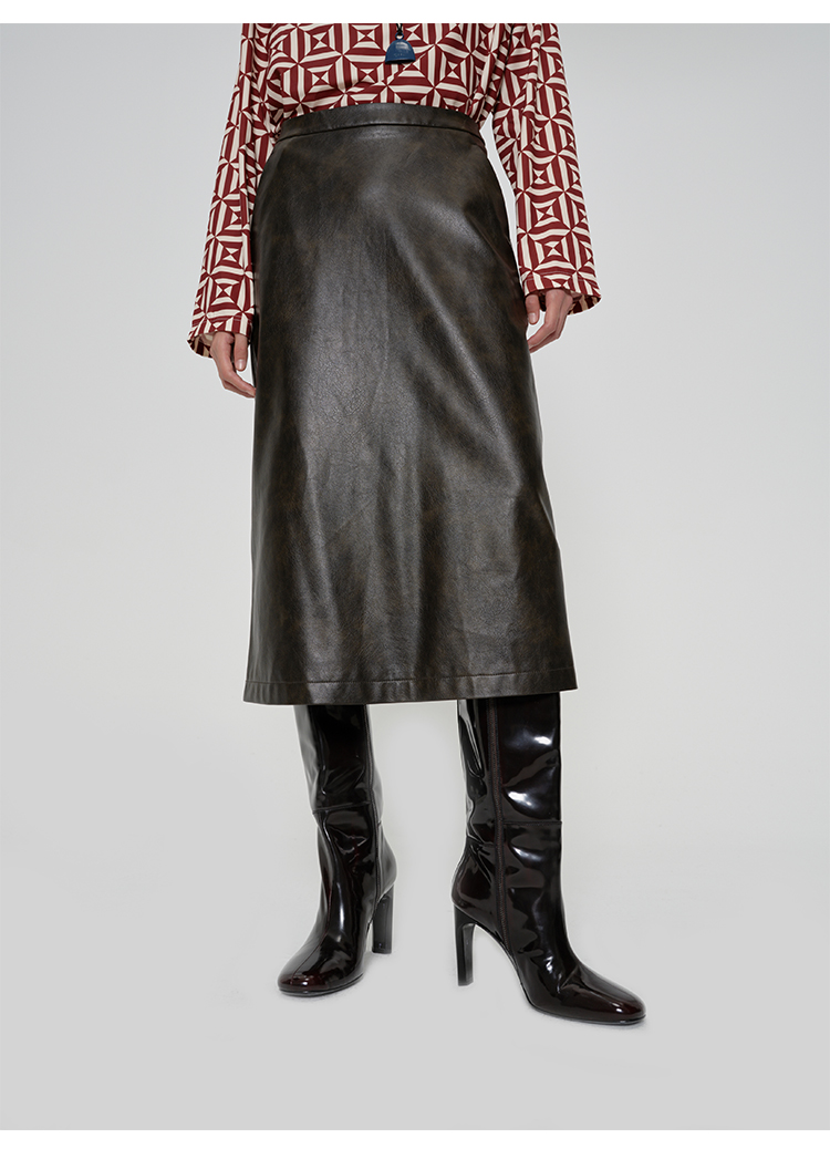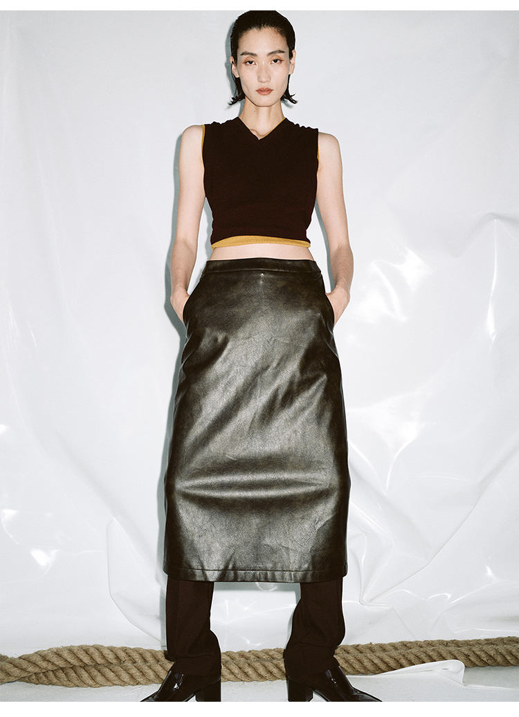 HIDEMI 甄选复古水洗擦色感环保蛋白皮H型极简半身裙皮裙