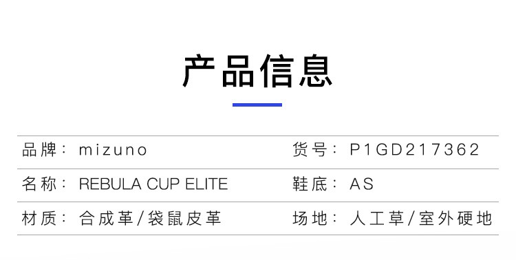小李子:正品Mizuno/美津浓Rebula CUP ELITE AS袋鼠皮成人足球鞋