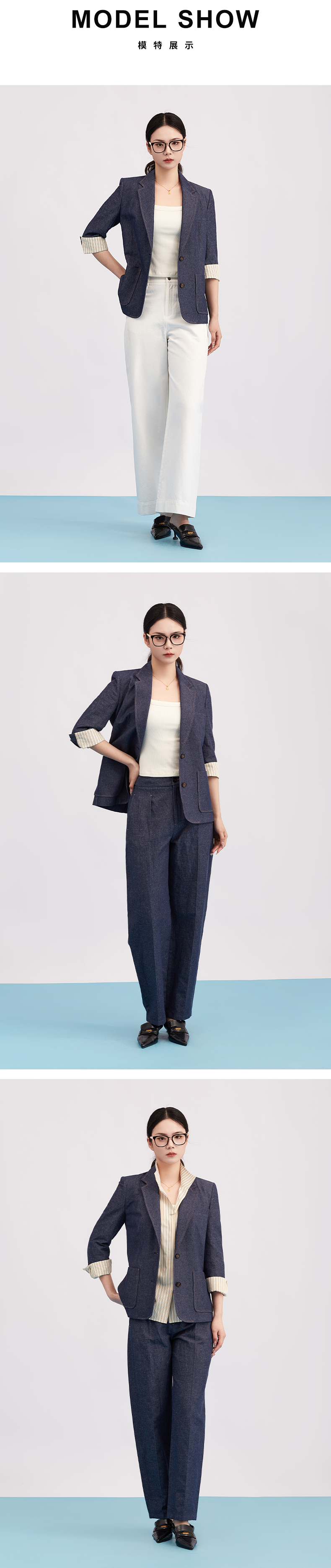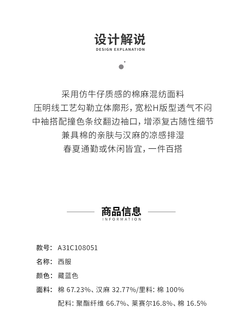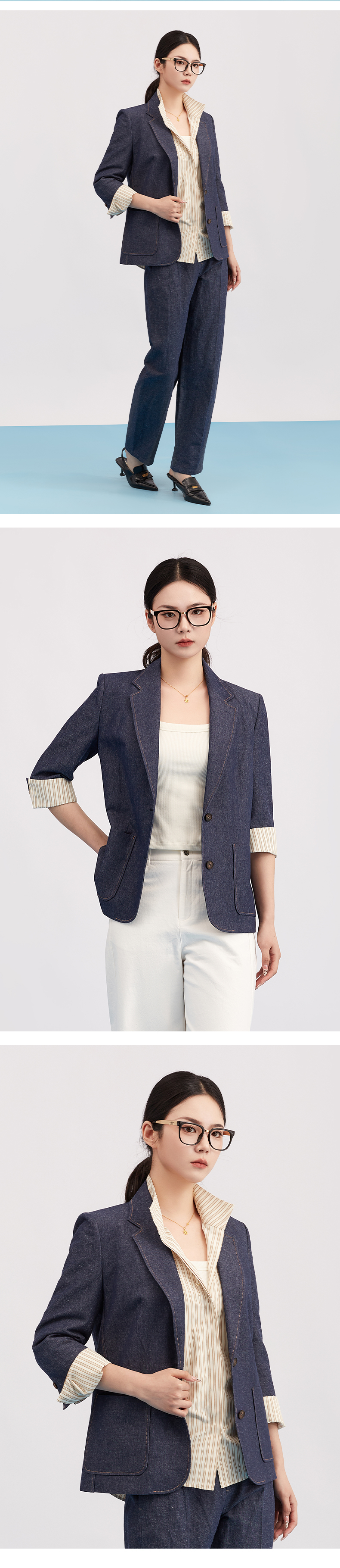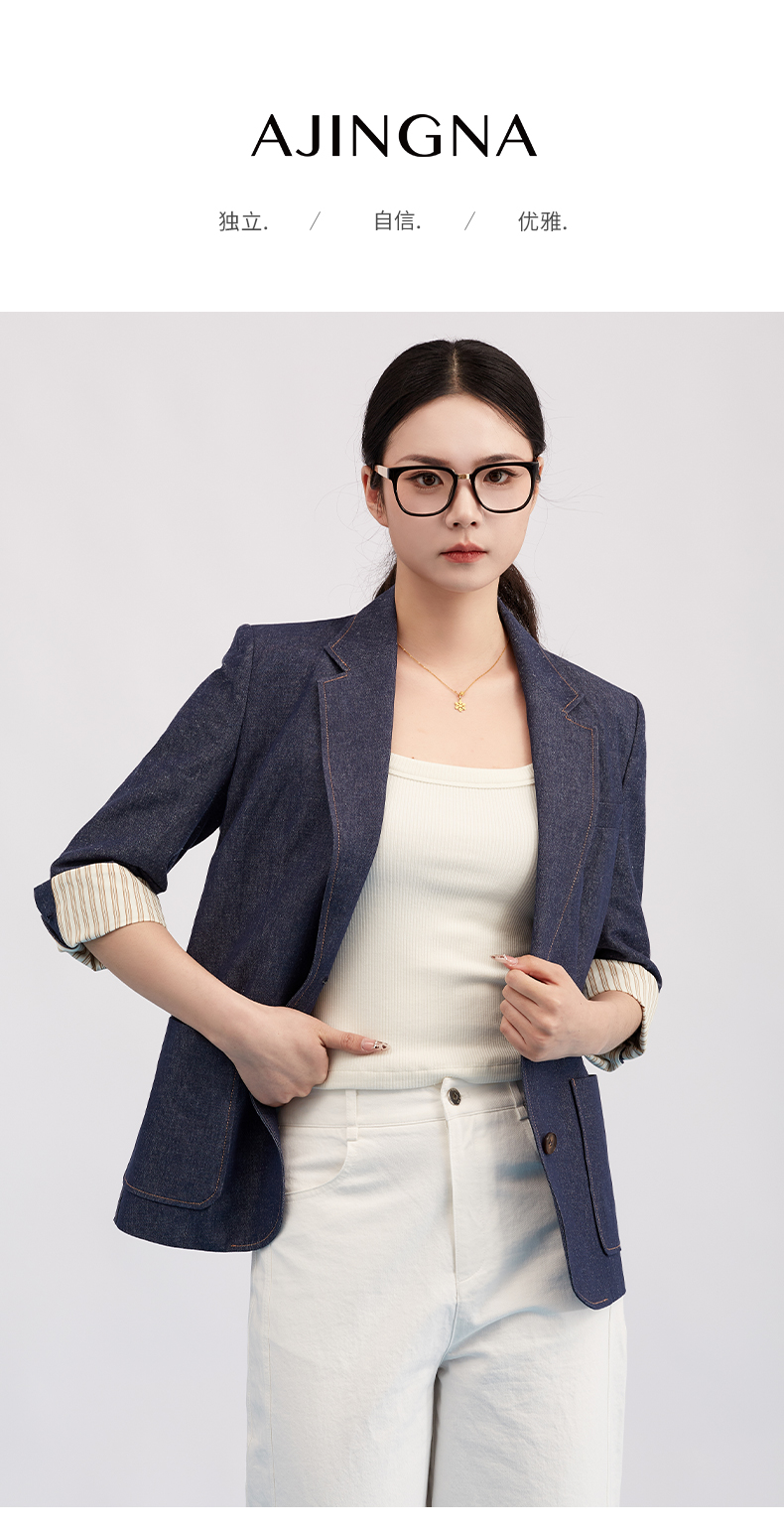 【商场同款】阿菁娜春季新款设计感西装中袖撞色翻边打破常规仿牛仔质感复古休闲A31C108051