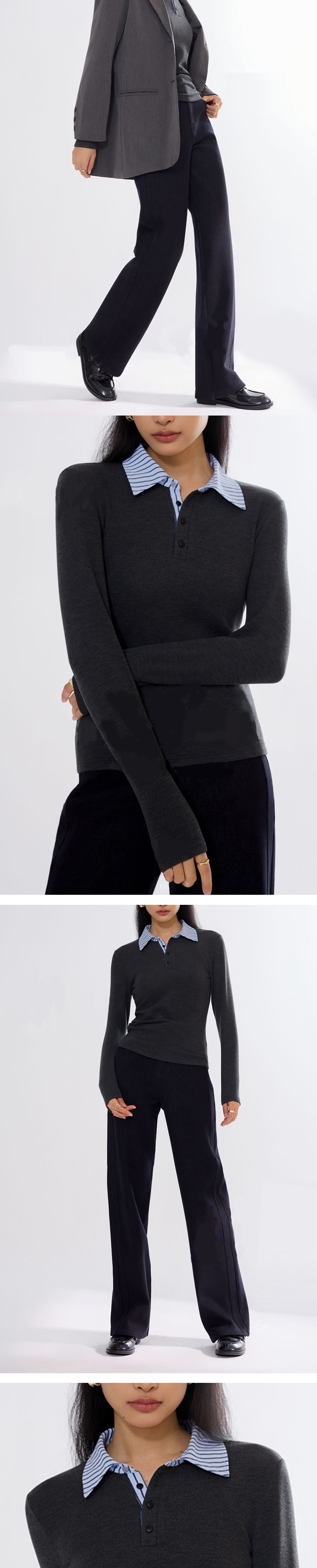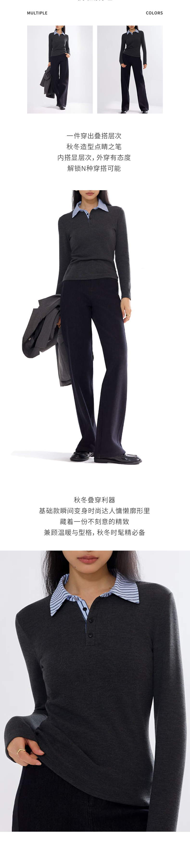 【假两件POLO】阿菁娜秋季新款慵懒风假两件POLO衫立体剪廓形一衣多穿柔糯亲肤保暖F30D302002