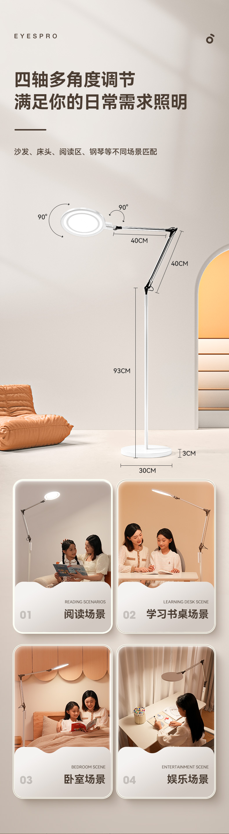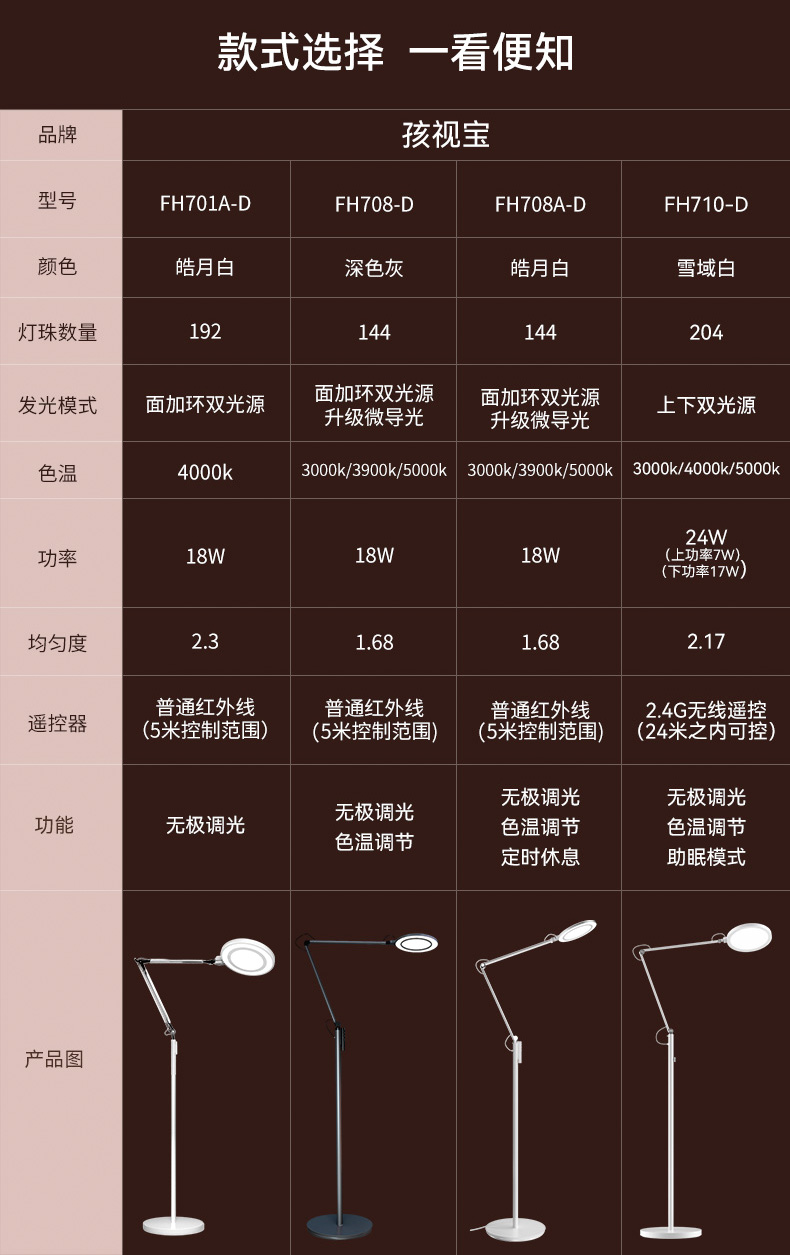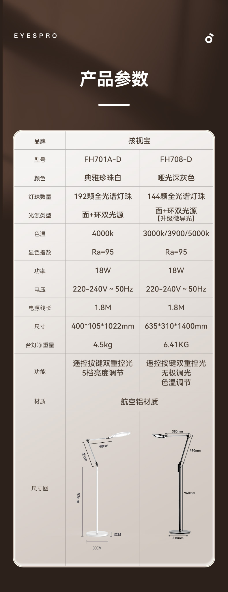 孩视宝FH701A-D全光谱落地立灯客厅书房学生学习钢琴护眼阅读