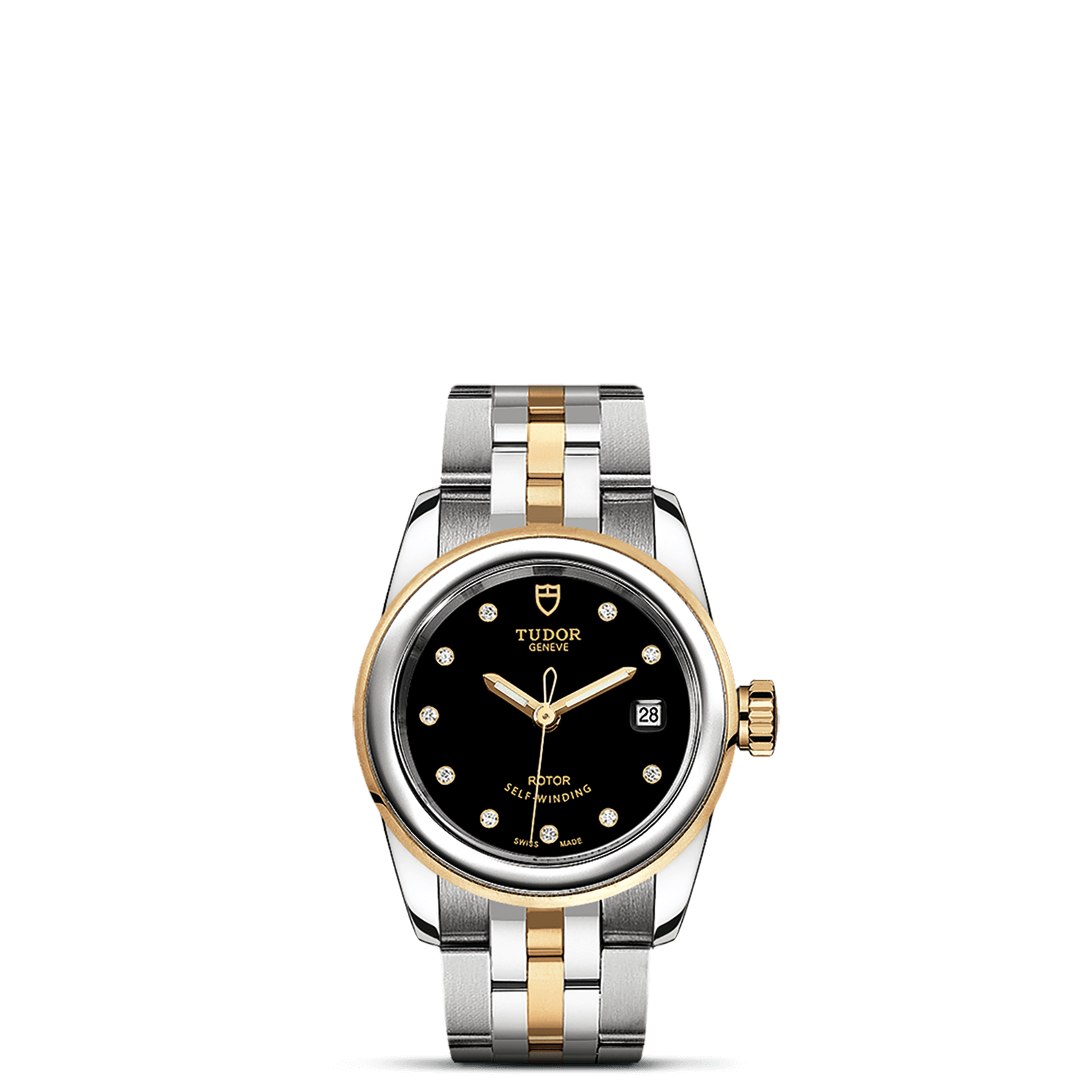旋入式上链錶冠,饰以帝舵表标志;精钢覆有0.1毫米18K黄金薄层