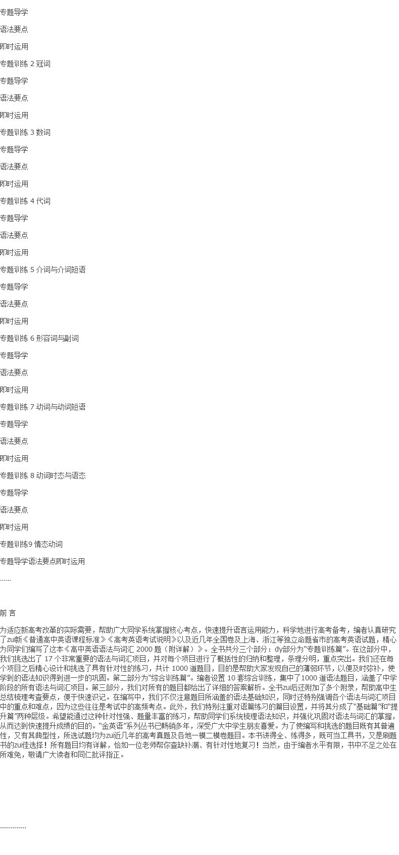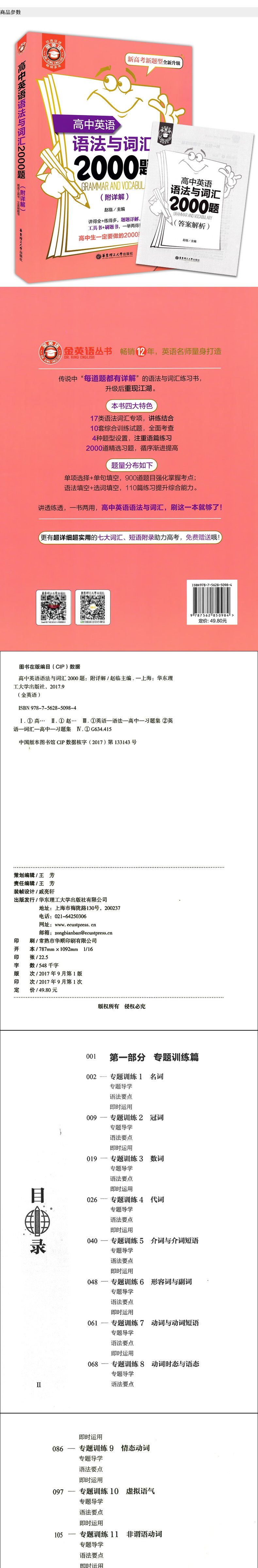 金英语 高中英语语法与词汇2000题 附详解答案 华东理工大学出版社 新高考新题型全新升级 高考英语词汇专项训练 强化掌握考点