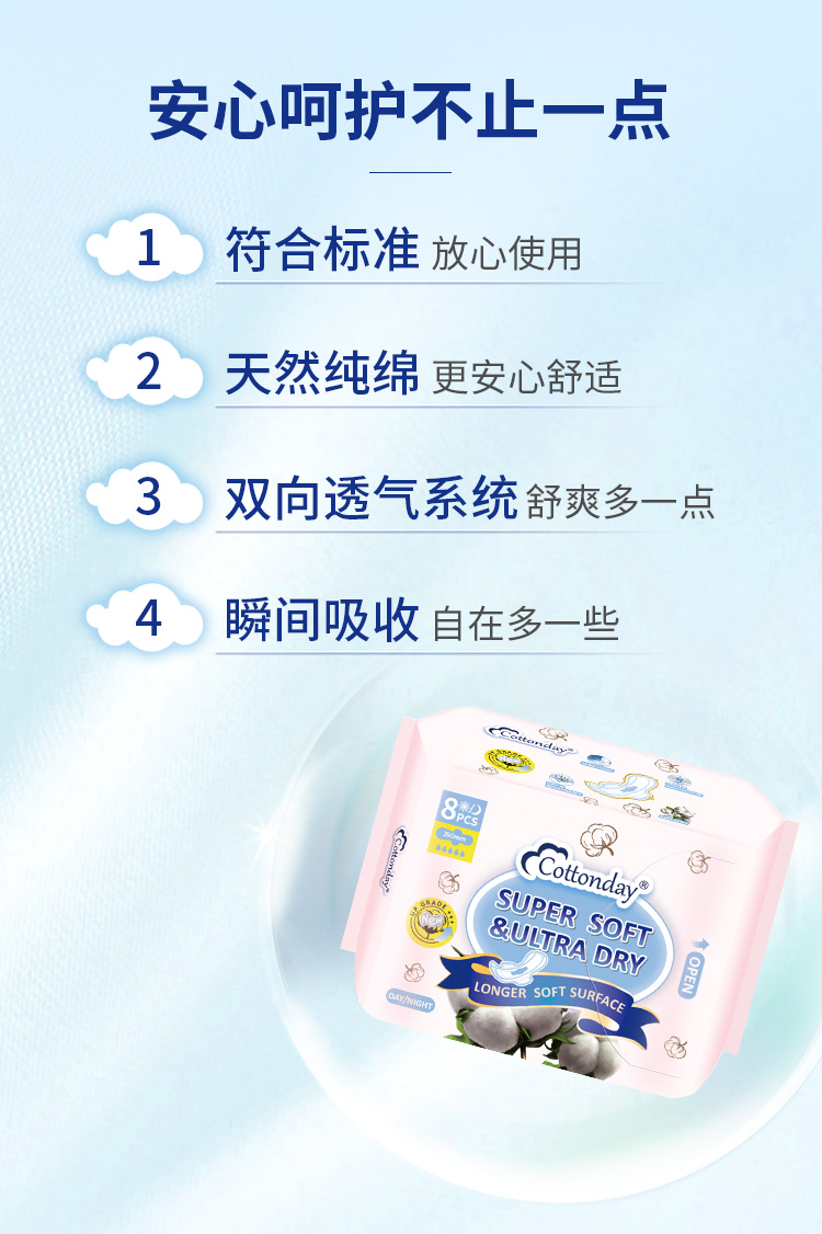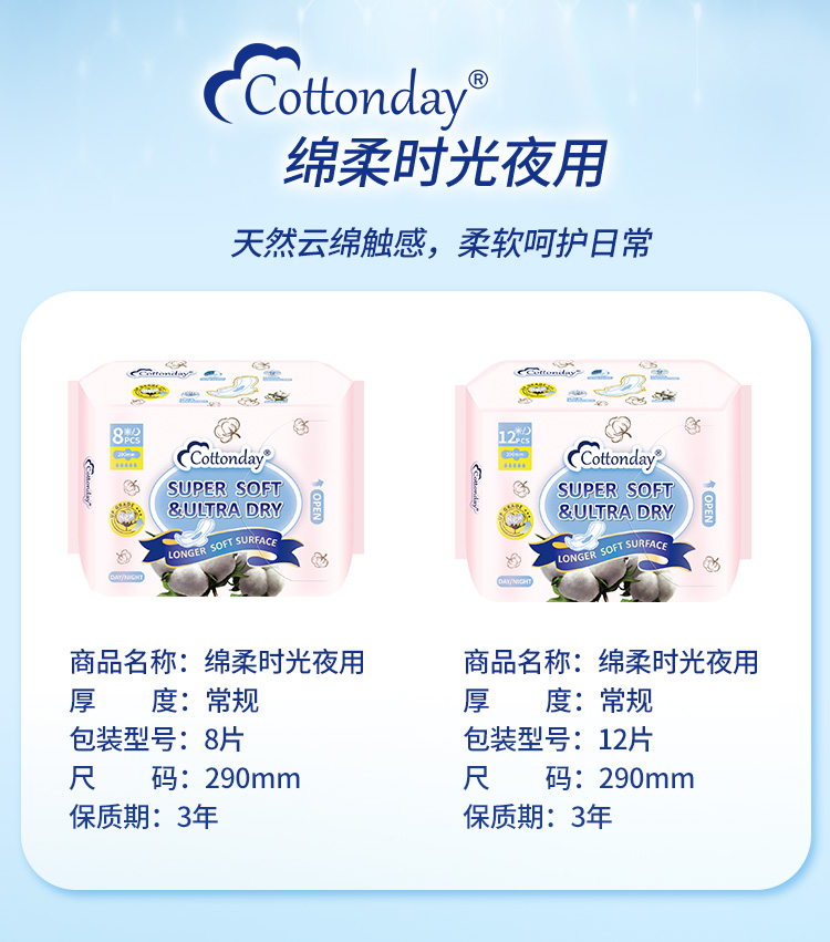 【七度空间】少女系列棉棉特薄超长夜用卫生巾338mm*8片