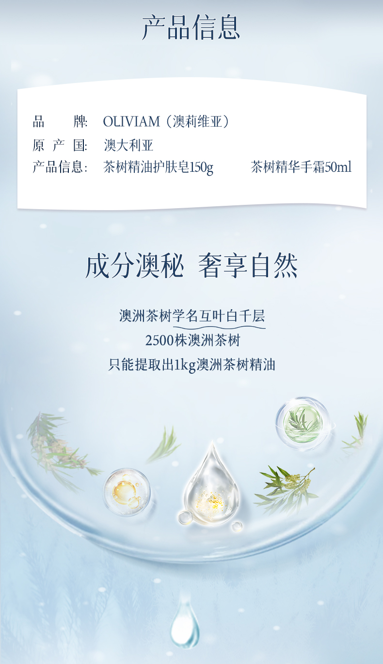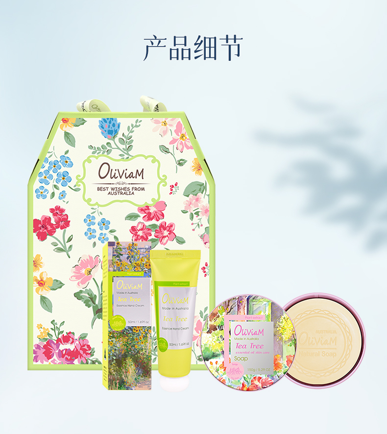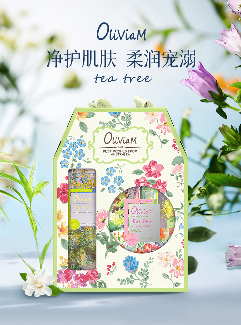 澳莉维亚绿野仙踪2件套(茶树精油护肤皂150g+茶树精油手霜50ml)