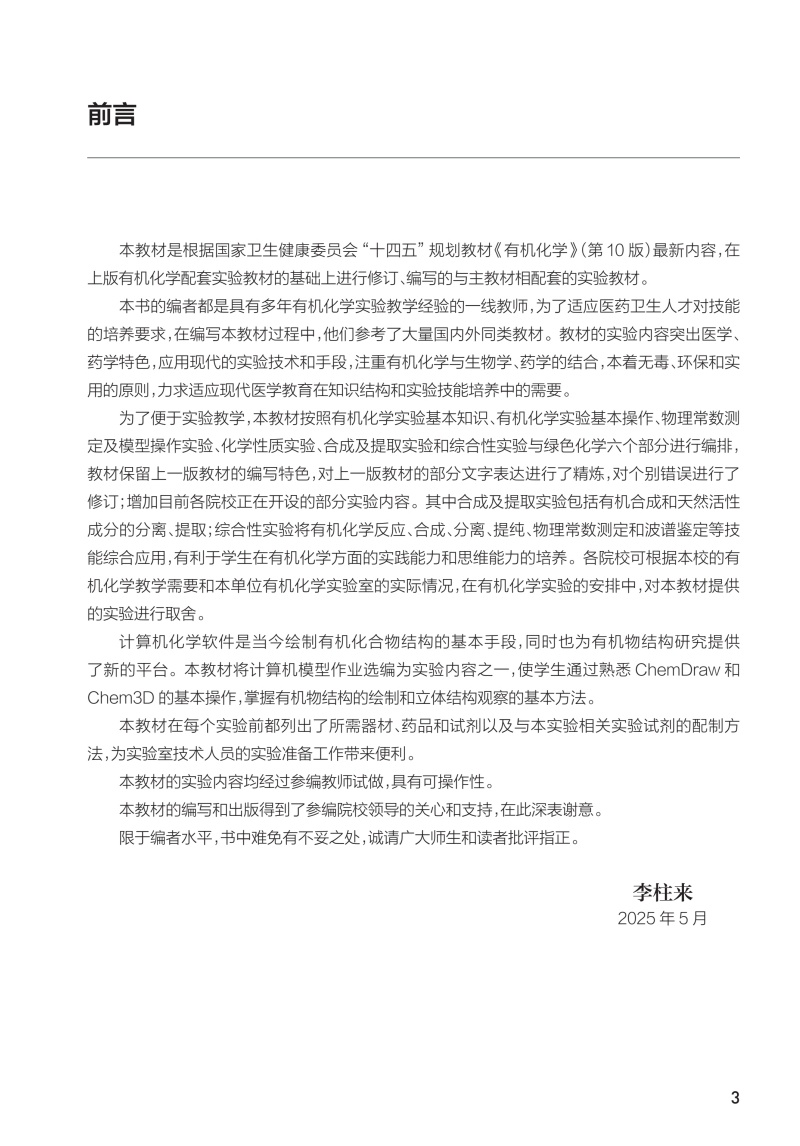 有机化学实验 第3三版 十四五规划教材配套教材 全国高等学校配套教材 李柱来 供基础临床预防口腔医学类专业用 人民卫生出版社